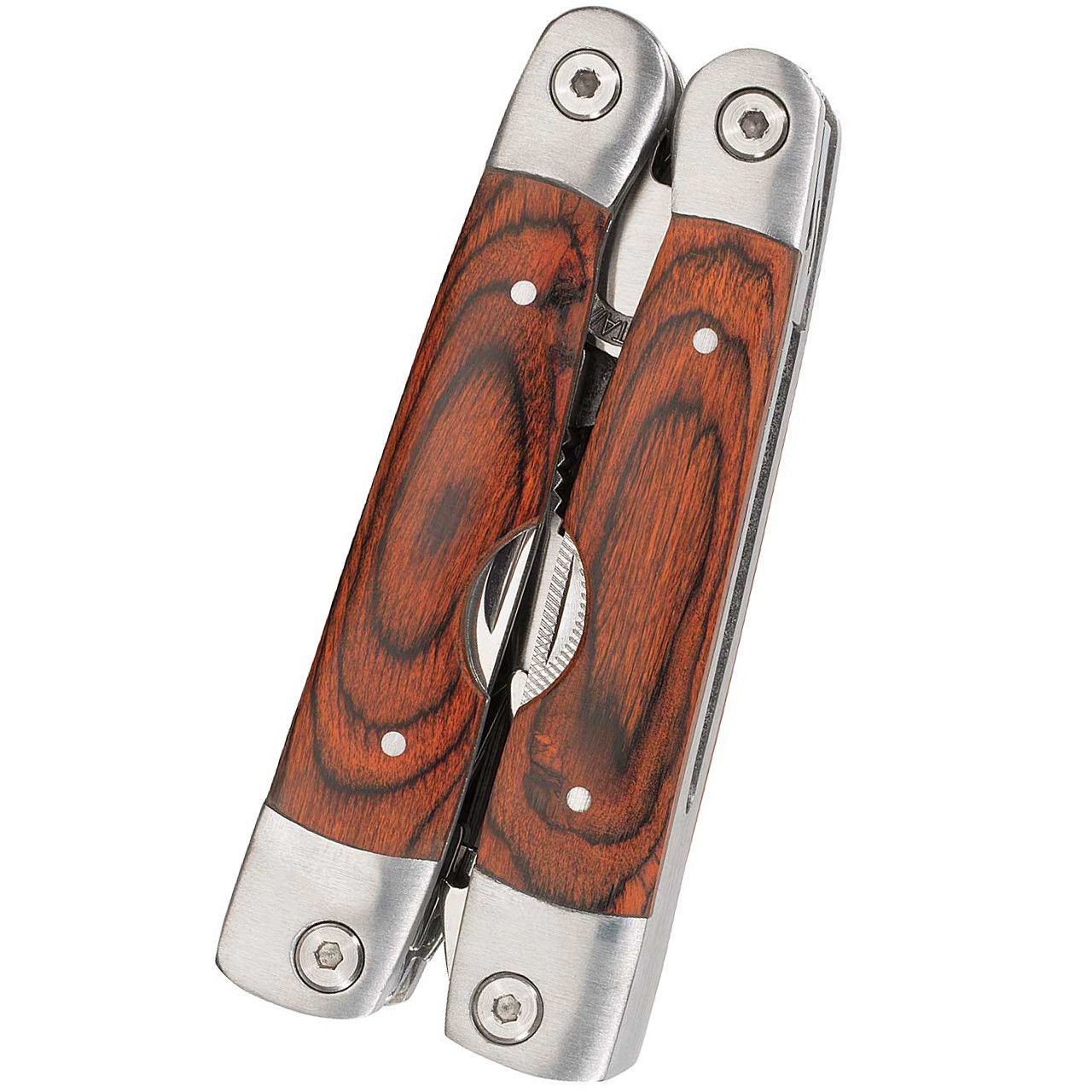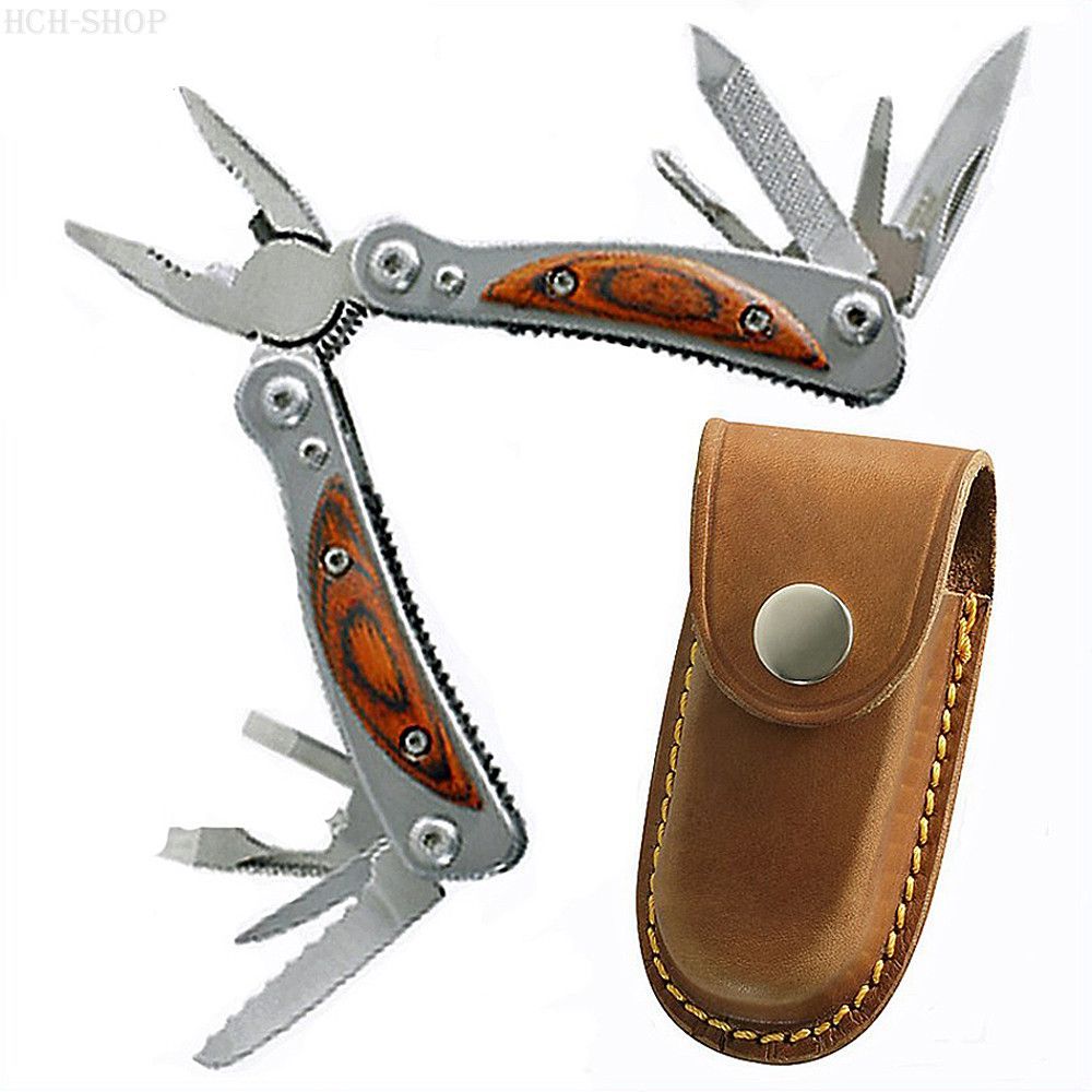 Herbertz Herbertz Minitool Multitool mit Zange 8 Werkzeuge Pakkaholz Schalen inkl. Lederetui