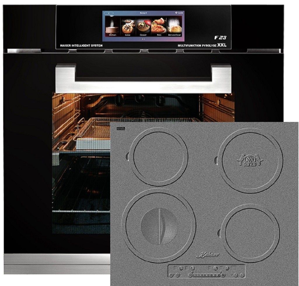 Kaiser Herd-Set EH 6344 Einbau Backofen Schwarzes Glas 79L + KCT 6705 I Herd Induktionskochfeld 60 cm