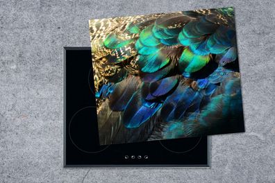 • Herdabdeckplatte - 60x52 cm - Federn - Pfau