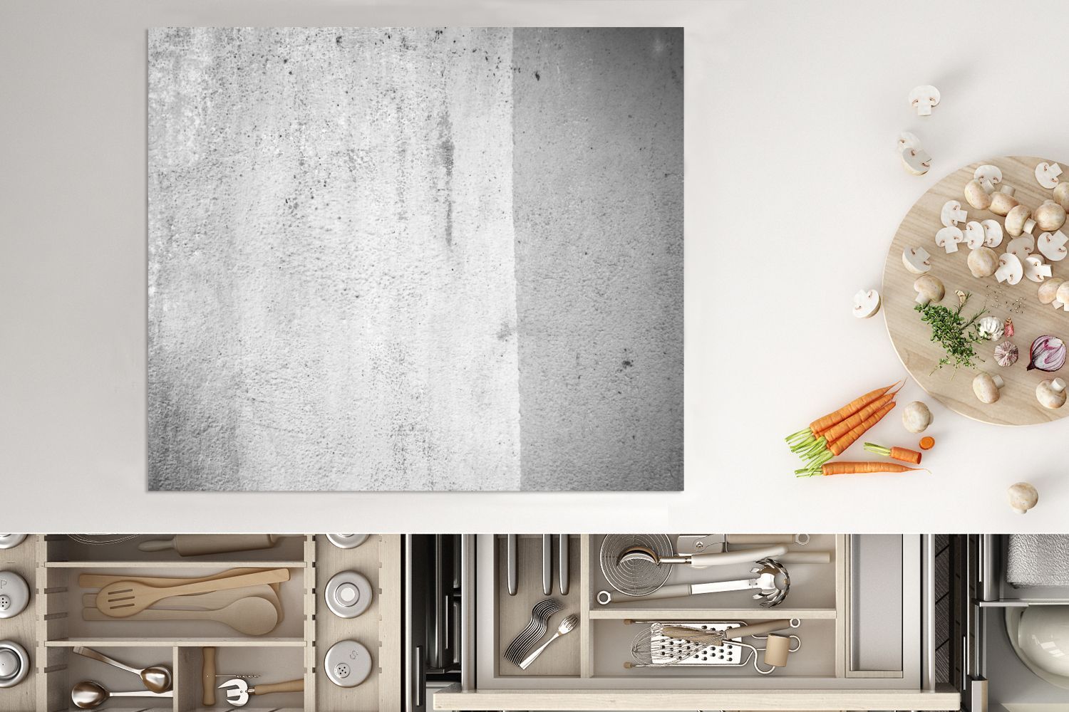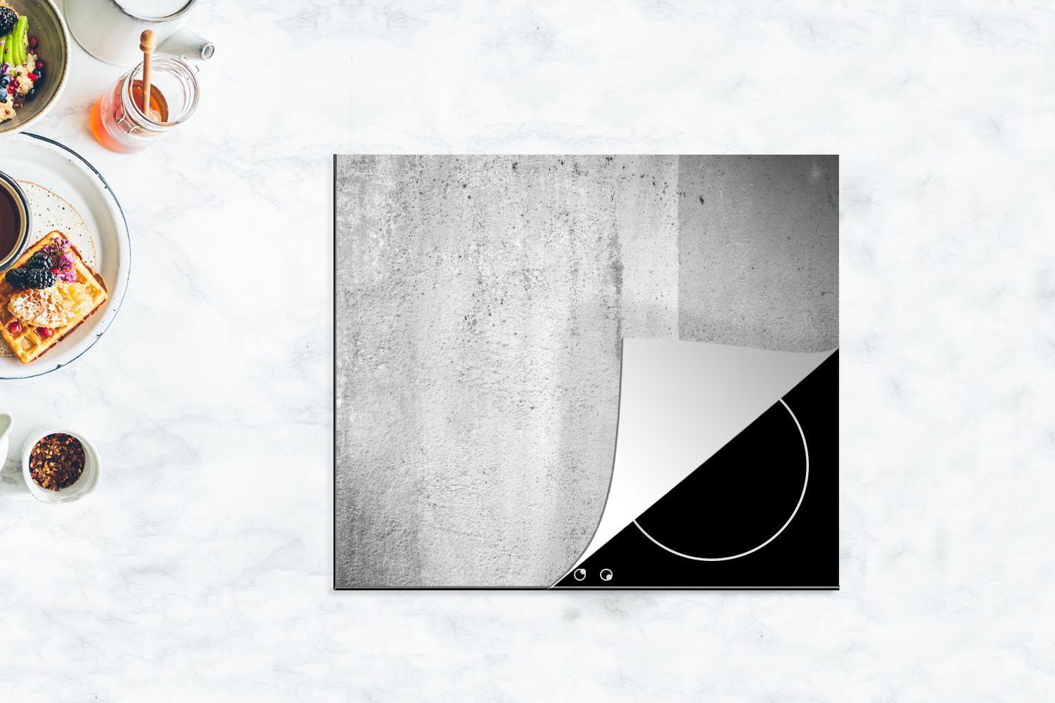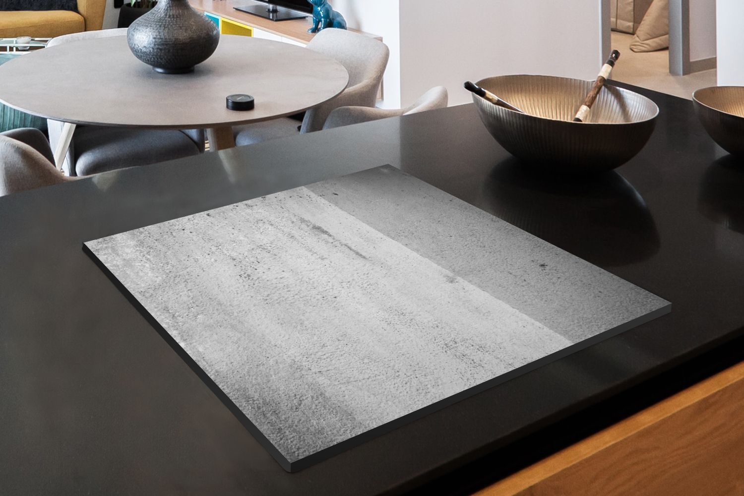 Herdabdeckplatte - 60x52 cm - Betonstruktur mit Farbunterschied - schwarz und weiß