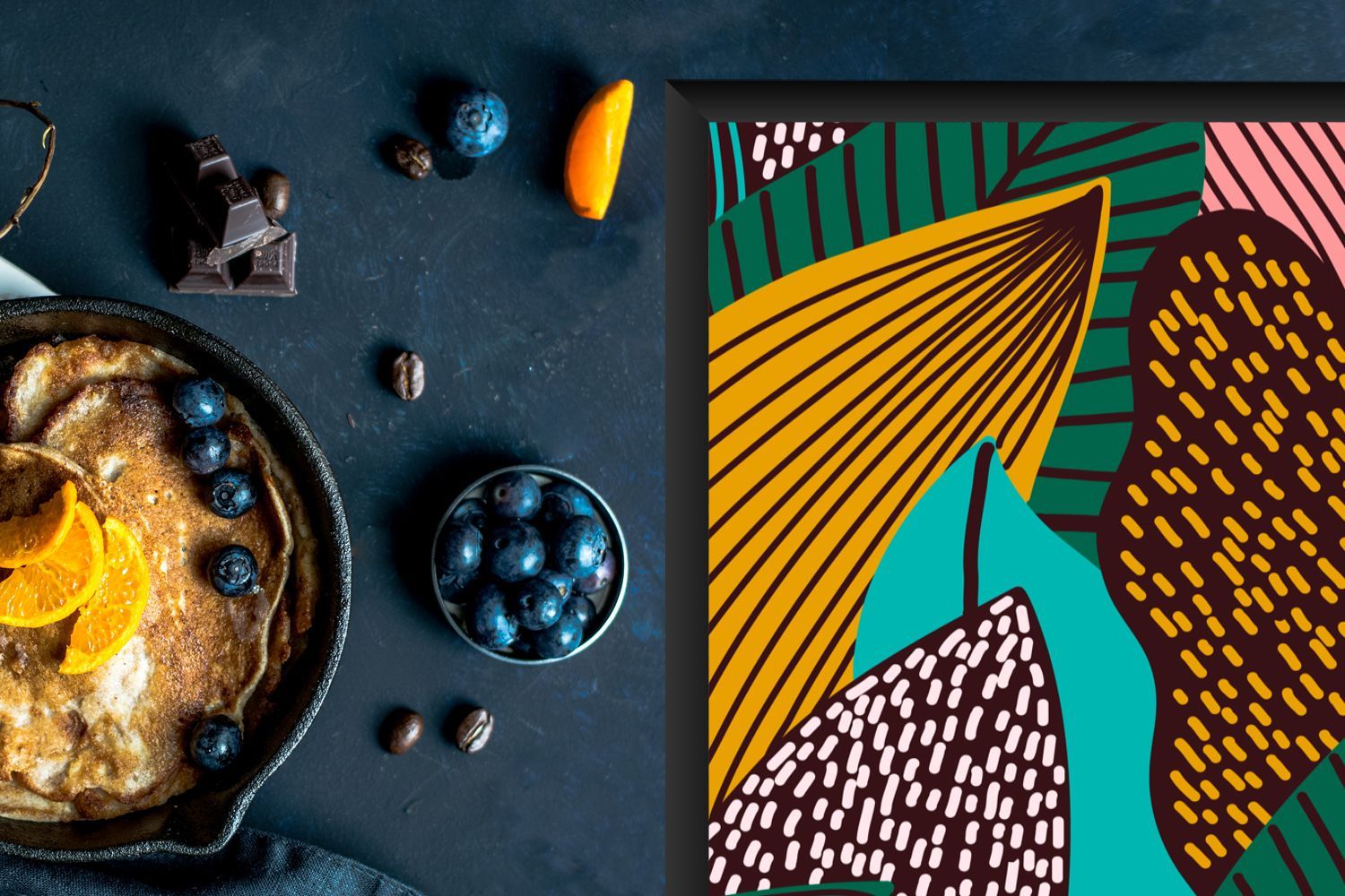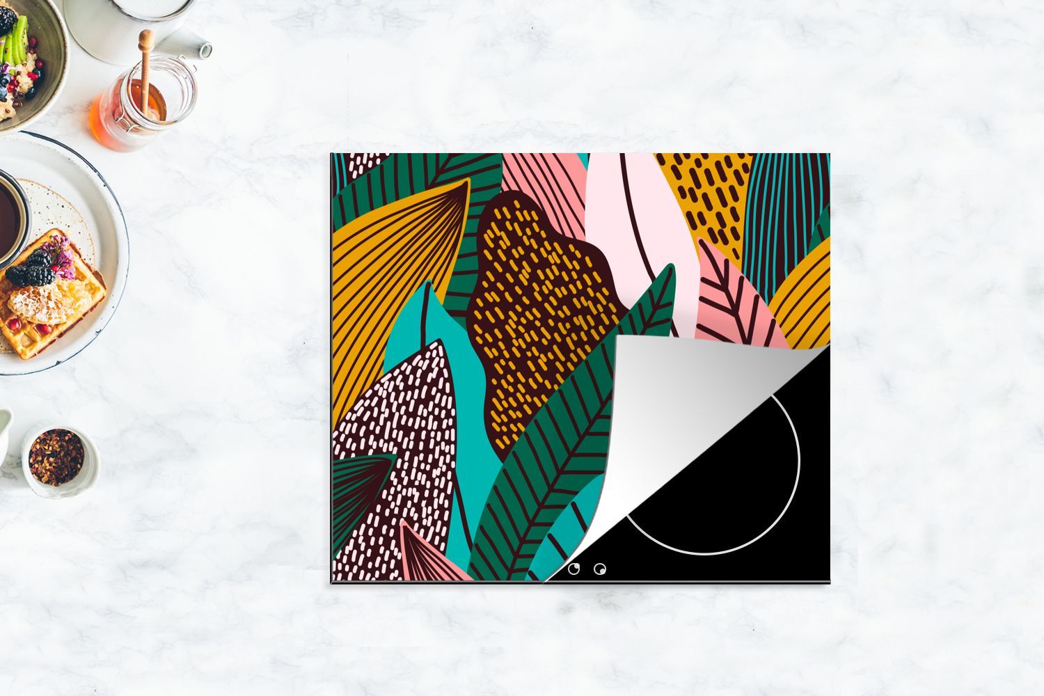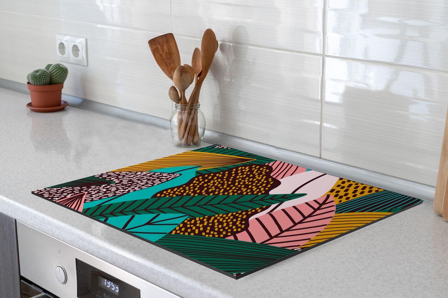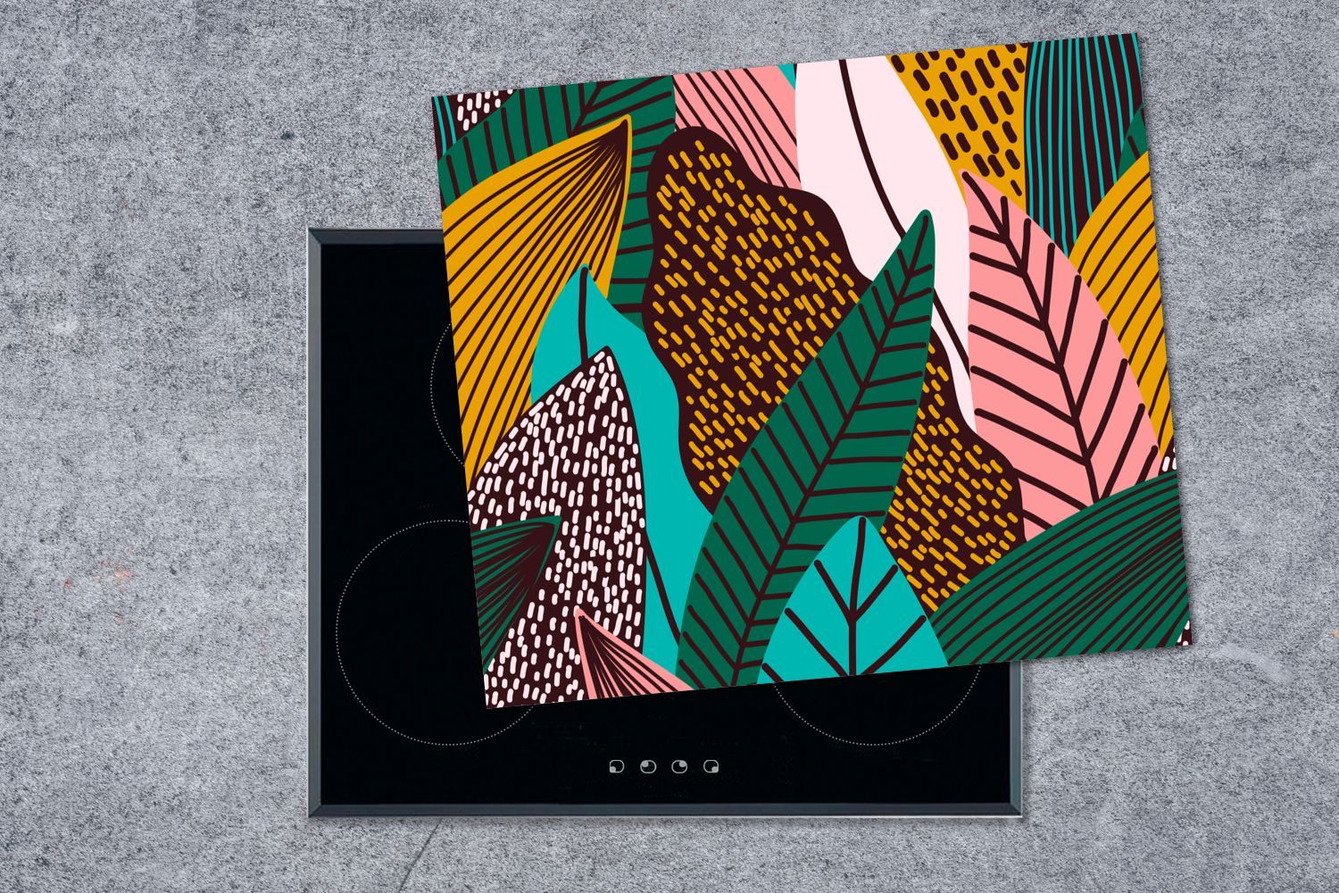 Herdabdeckplatte - 60x52 cm - Blätter - Farbe - Muster