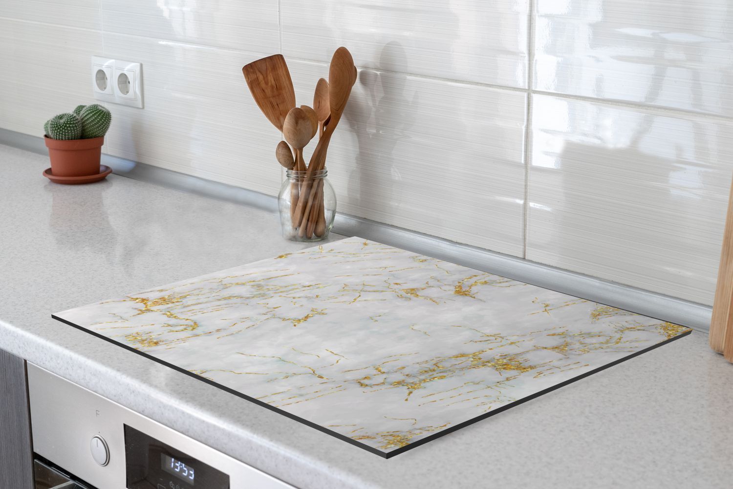Herdabdeckplatte - 60x52 cm - Marmor - Gold - Weiß