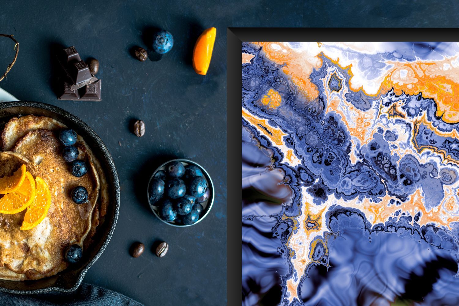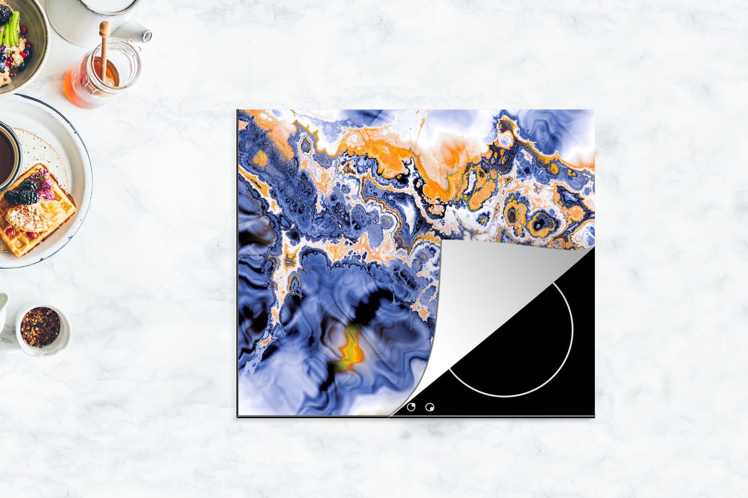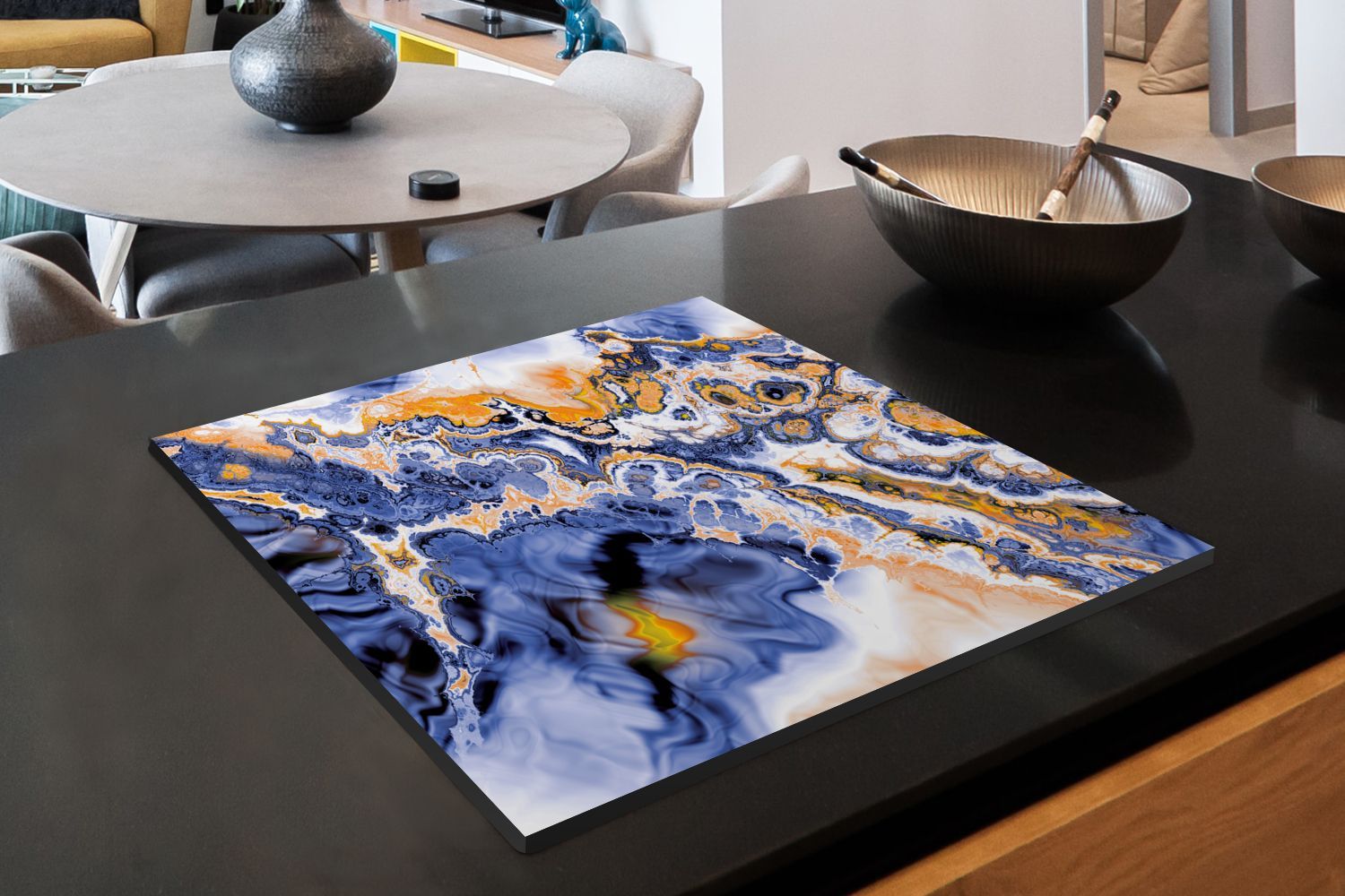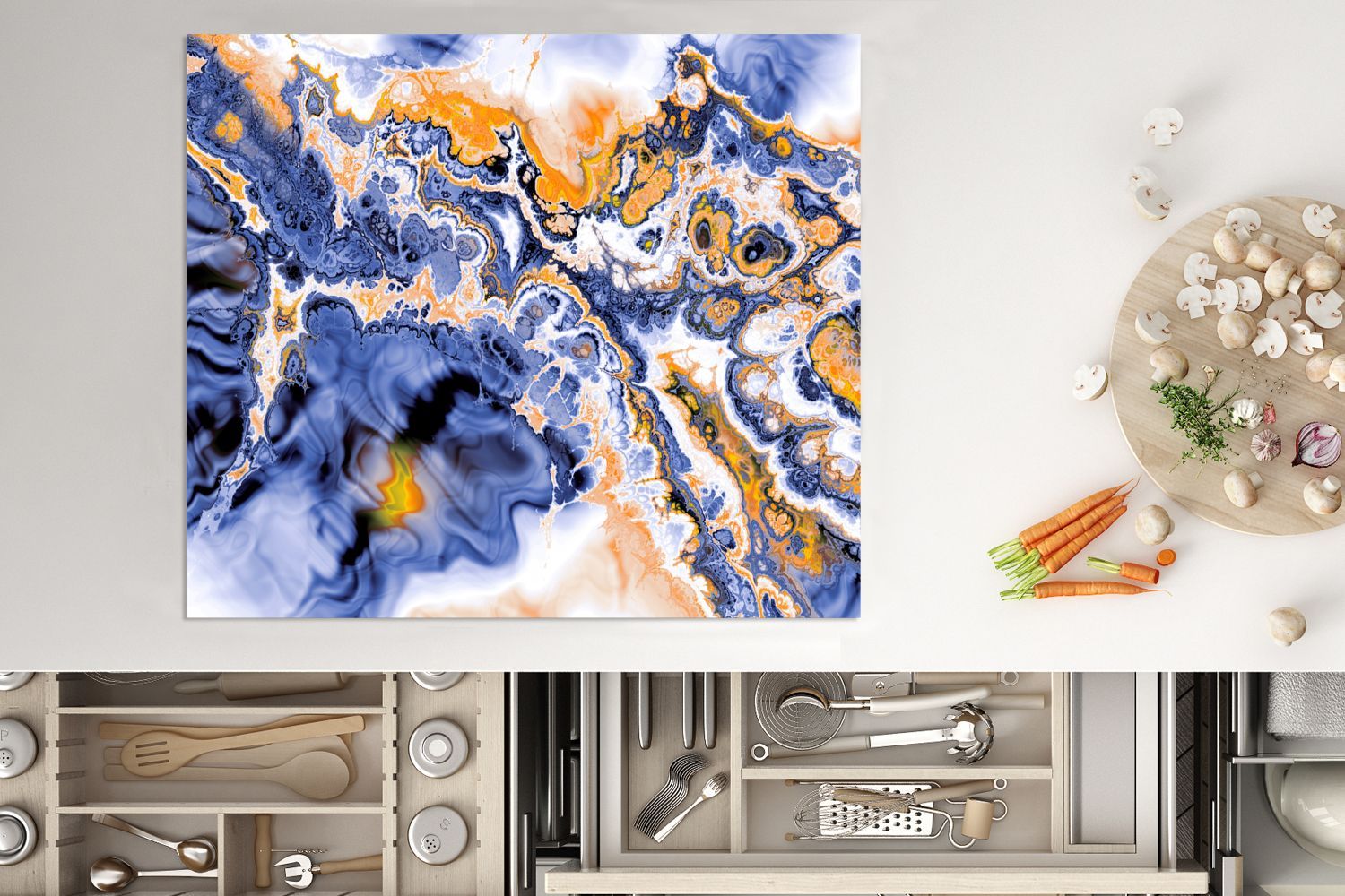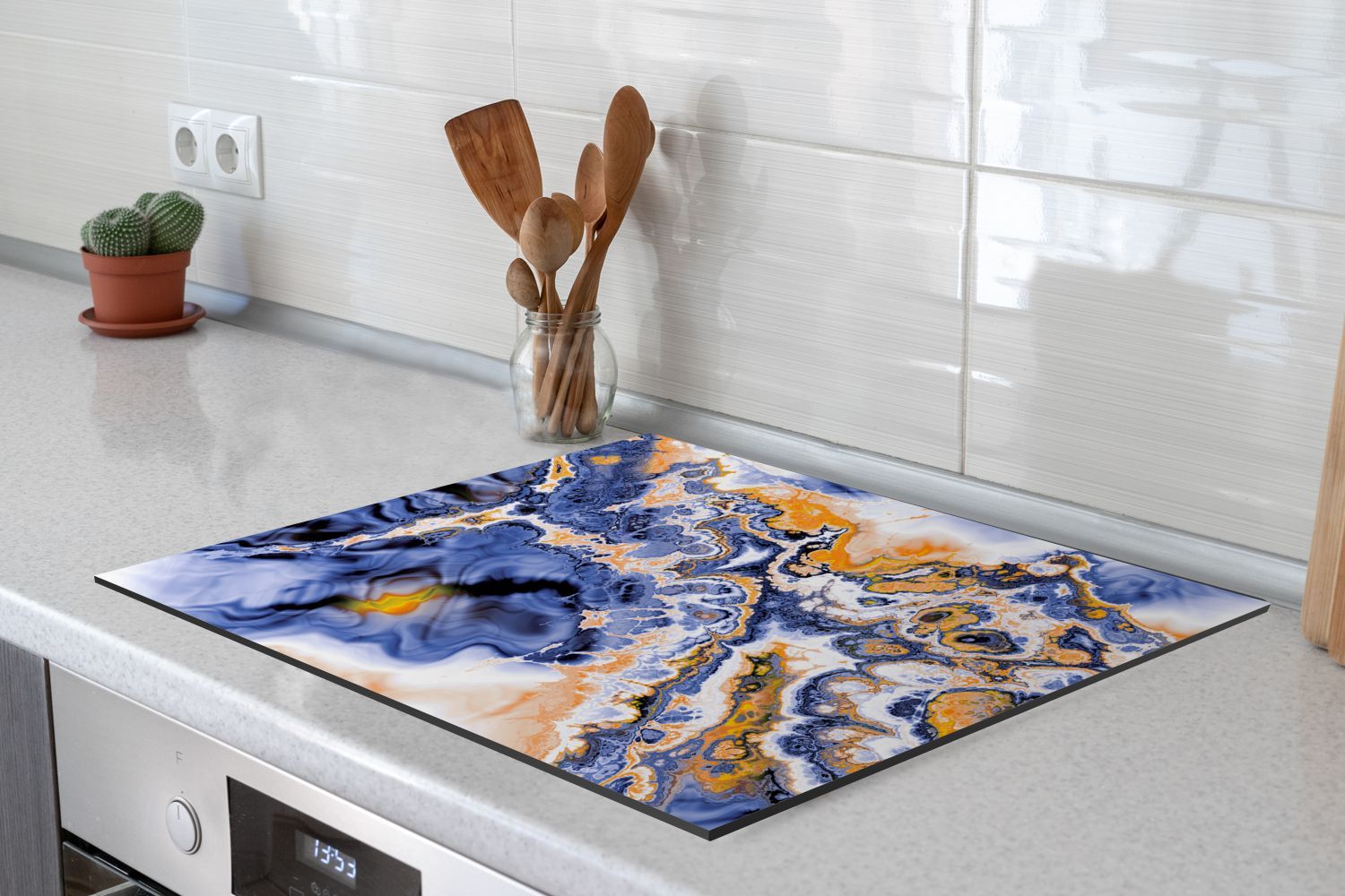 Herdabdeckplatte - 60x52 cm - Marmor - Orange - Blau