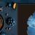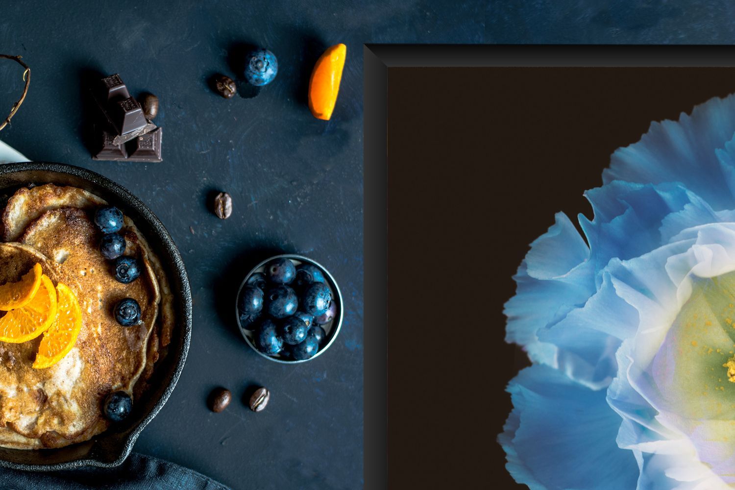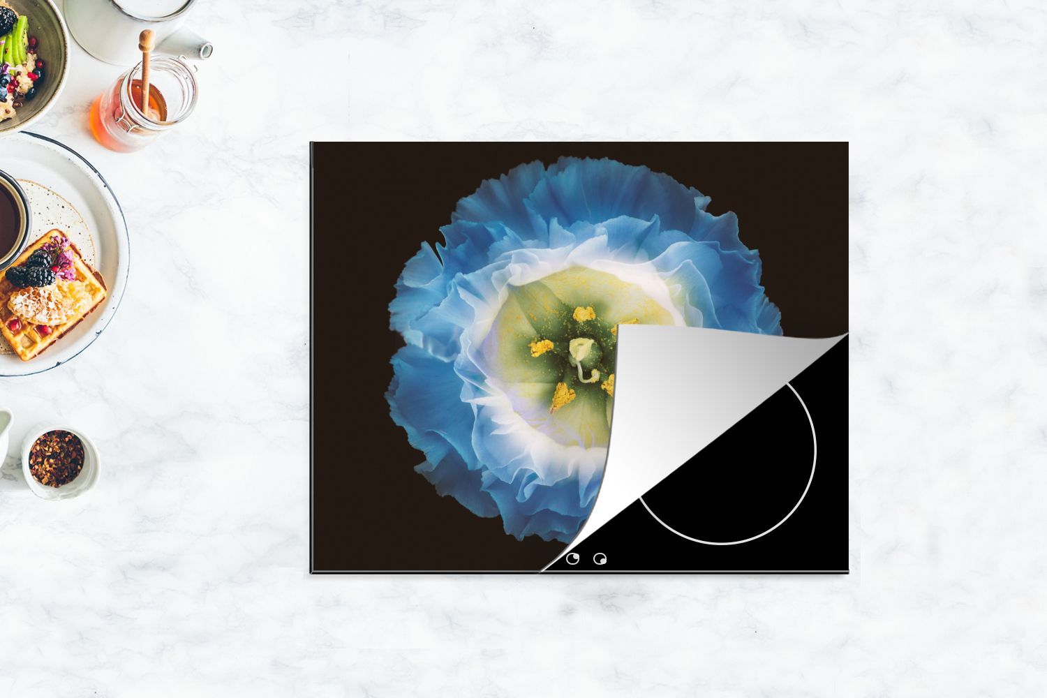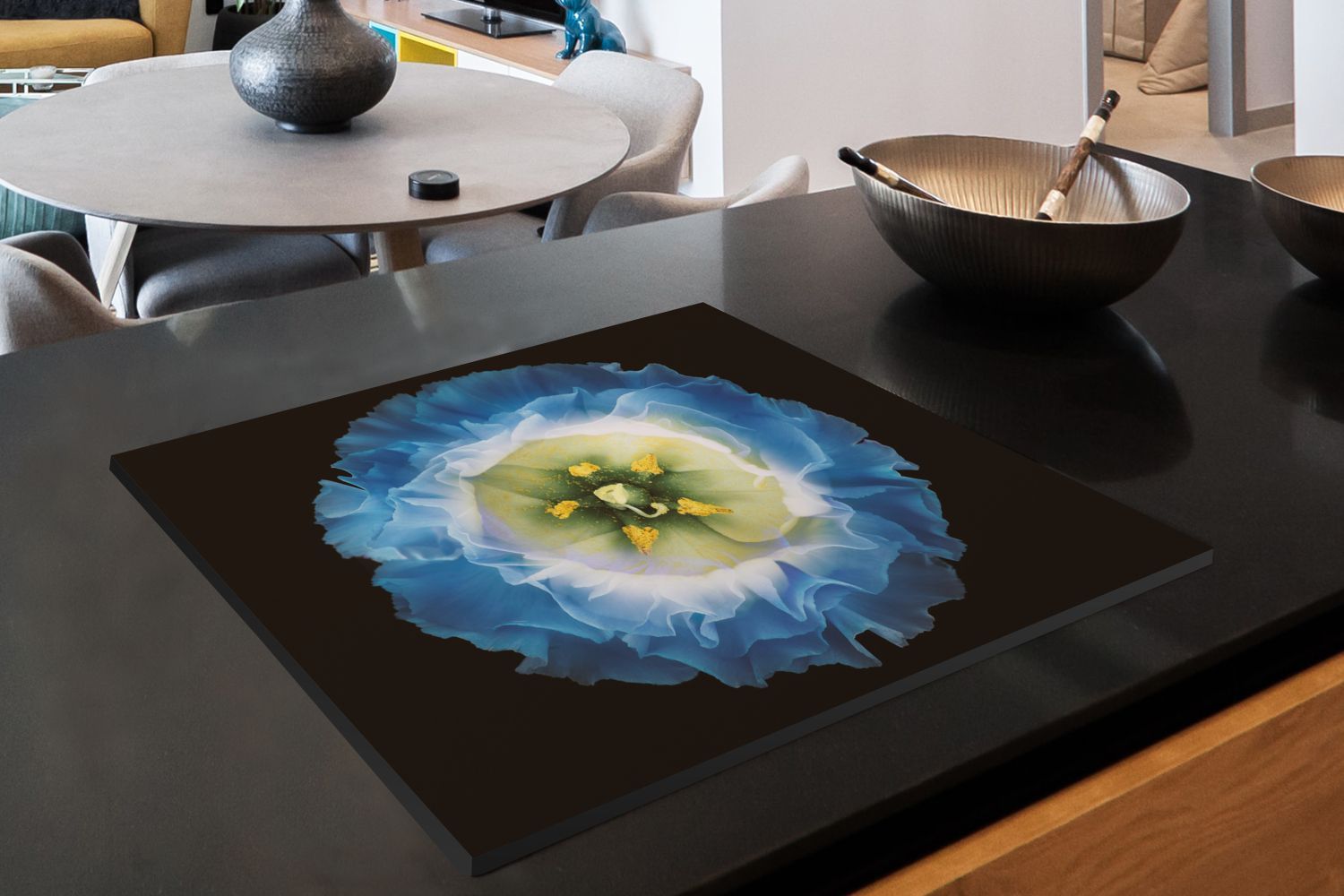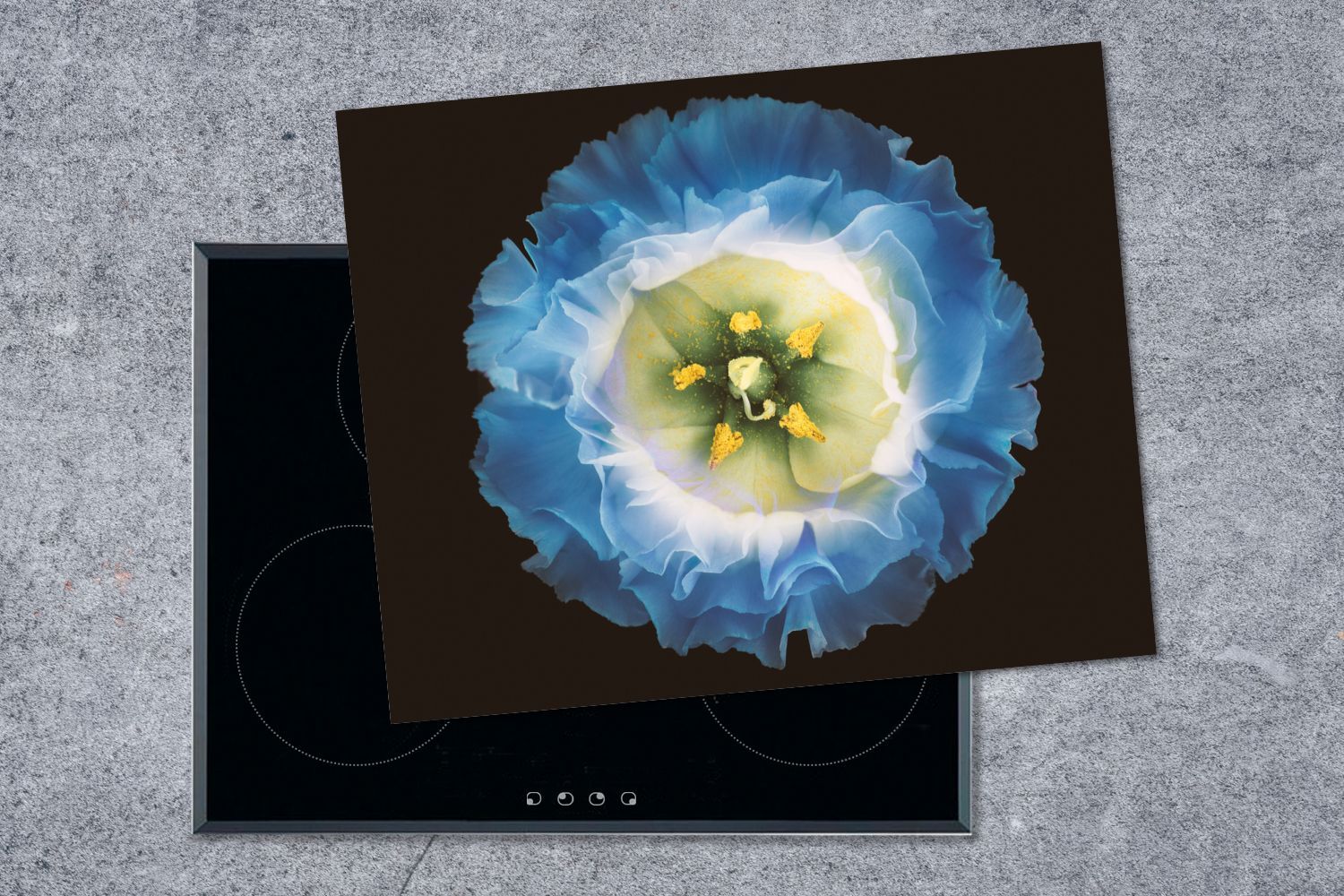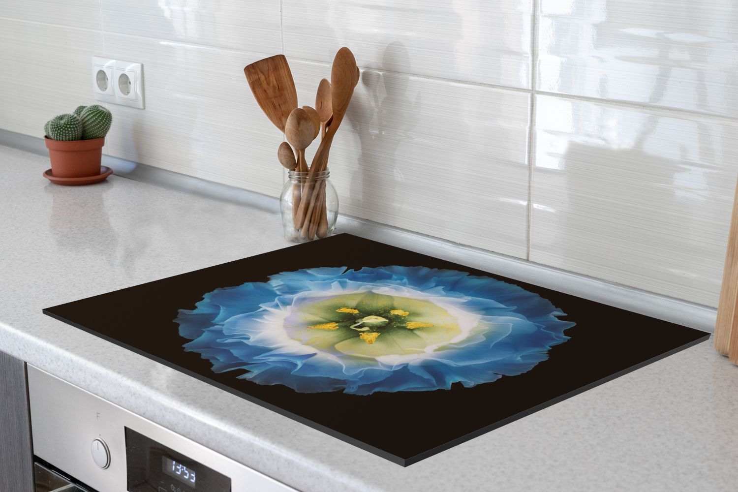 Herdabdeckplatte - 65x52 cm - Blume - Blau - Schwarz