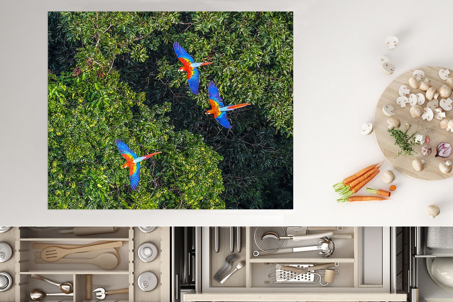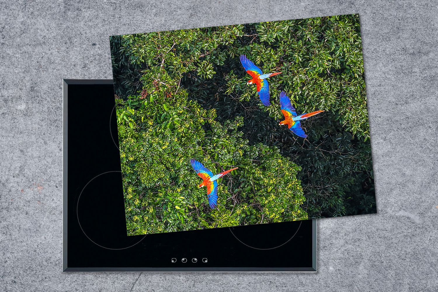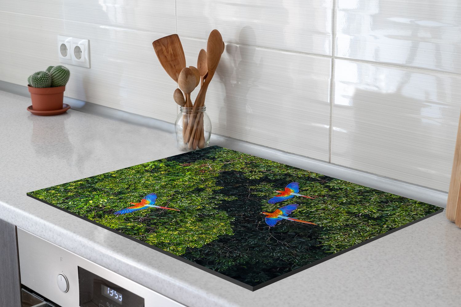 Herdabdeckplatte - 65x52 cm - Dschungel - Baum - Papagei