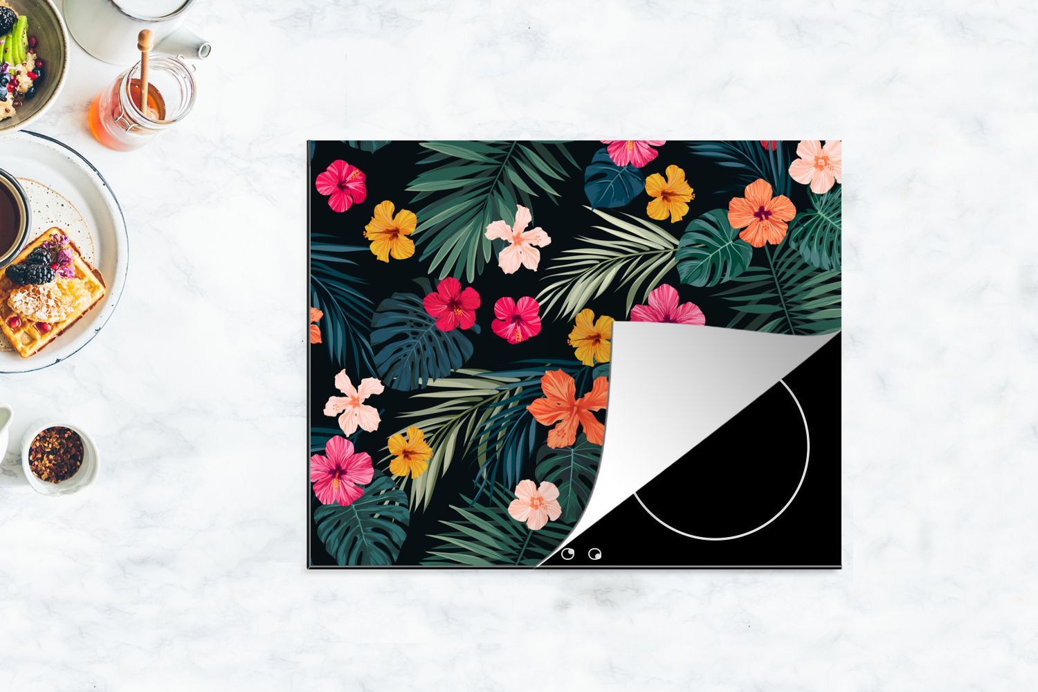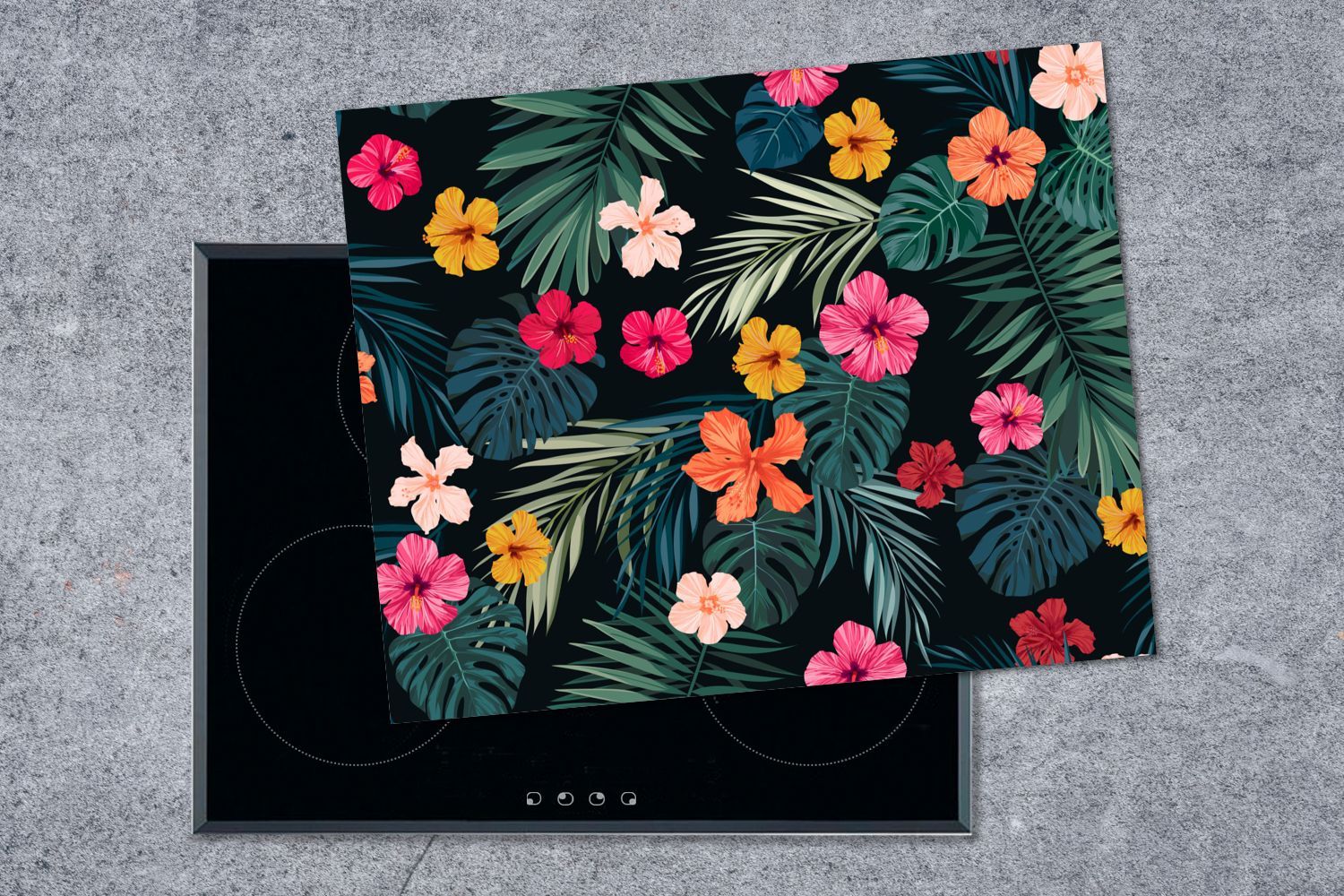 Herdabdeckplatte - 65x52 cm - Dschungel - Blätter - Blumen