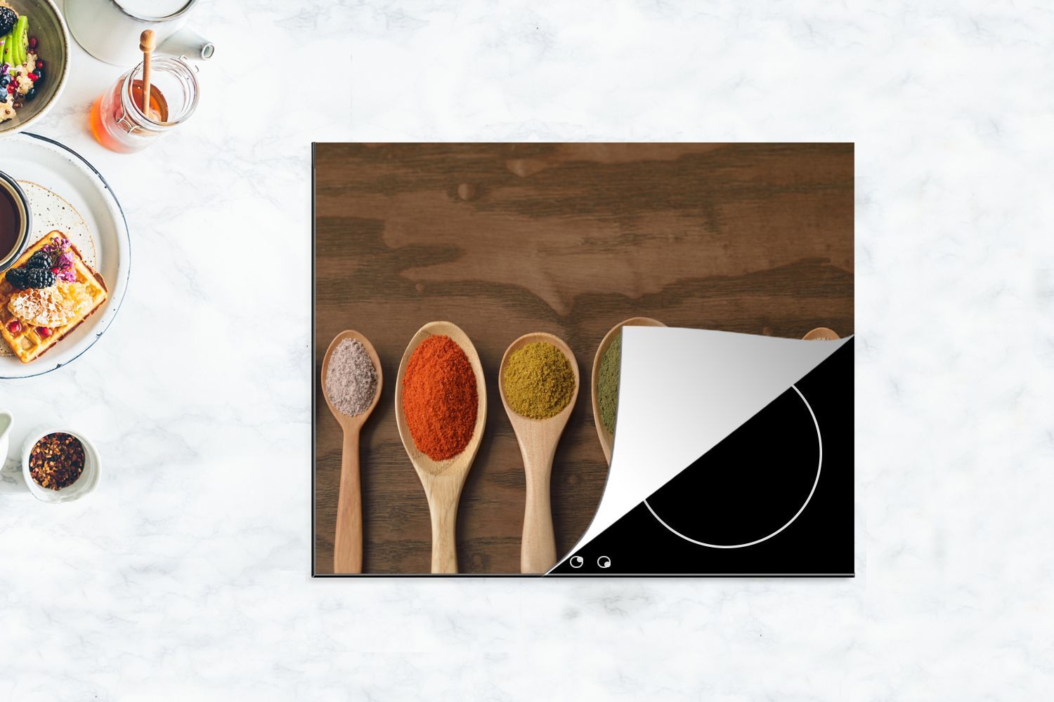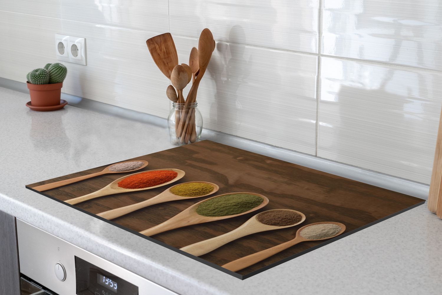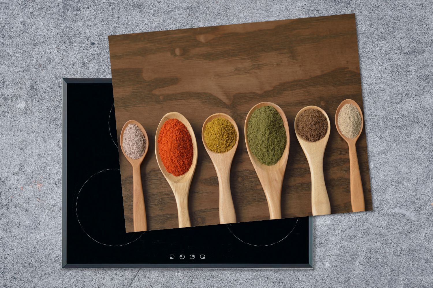 Herdabdeckplatte - 65x52 cm - Farbige Gewürze auf Löffeln