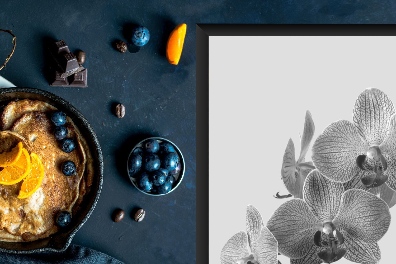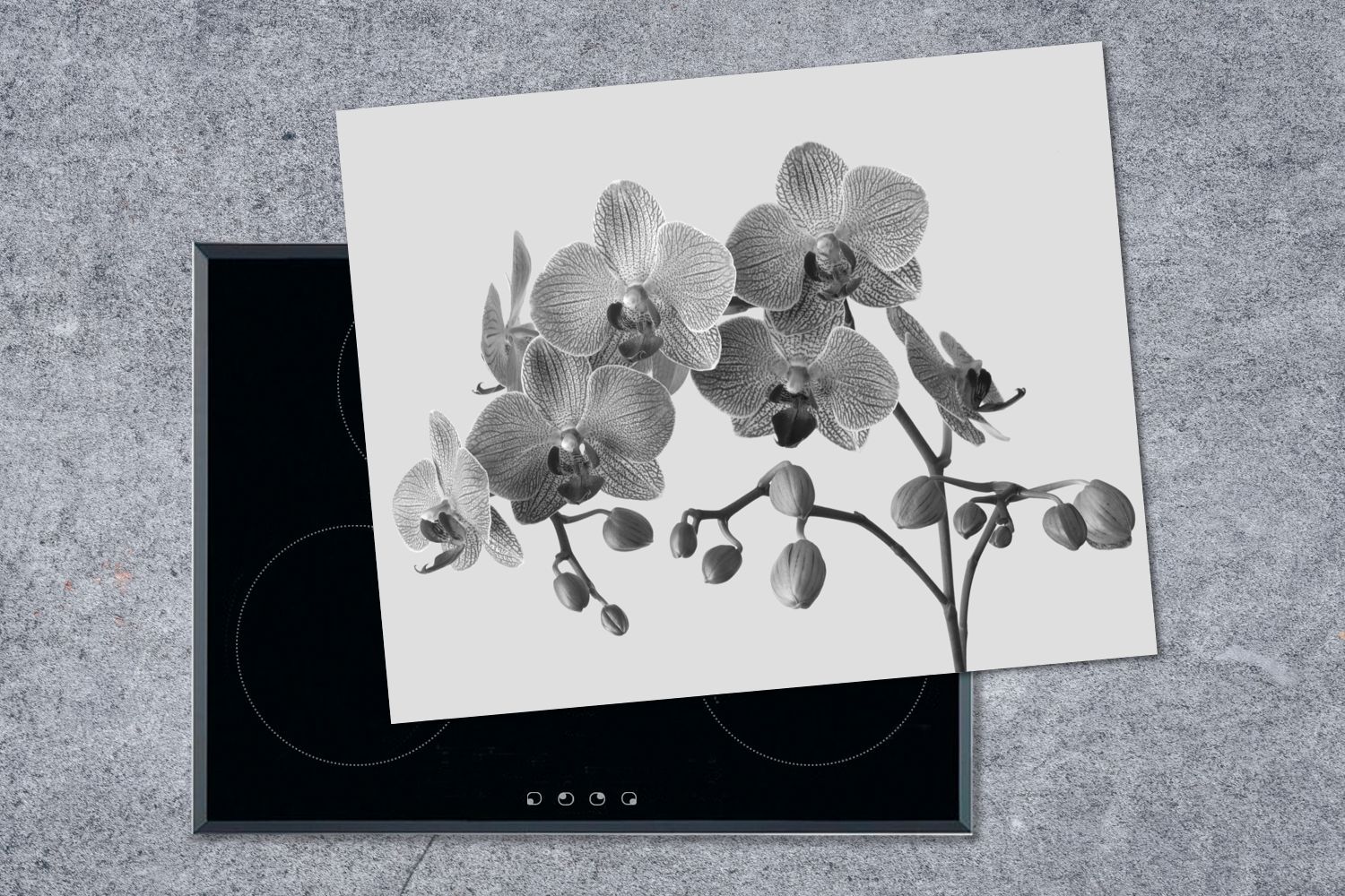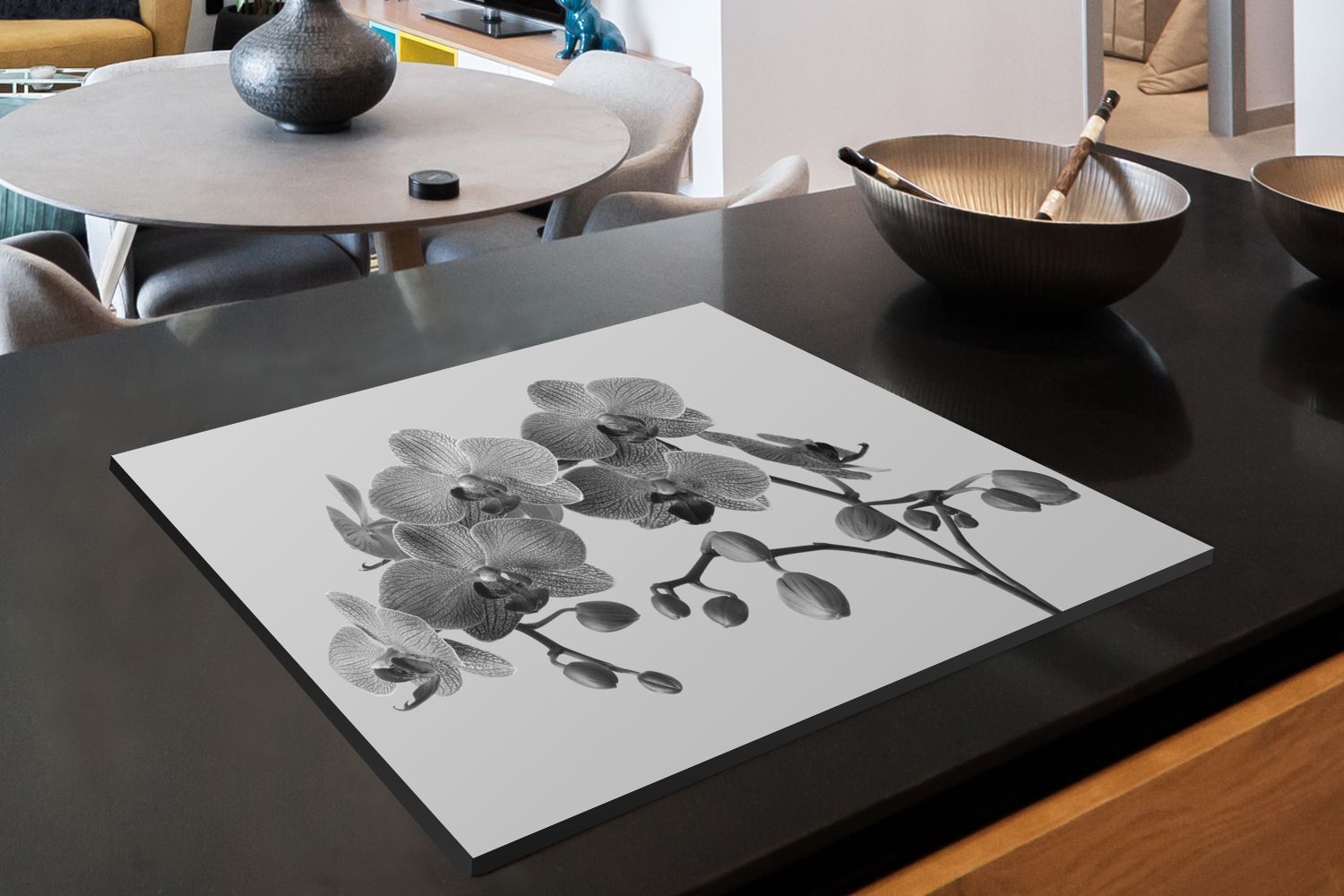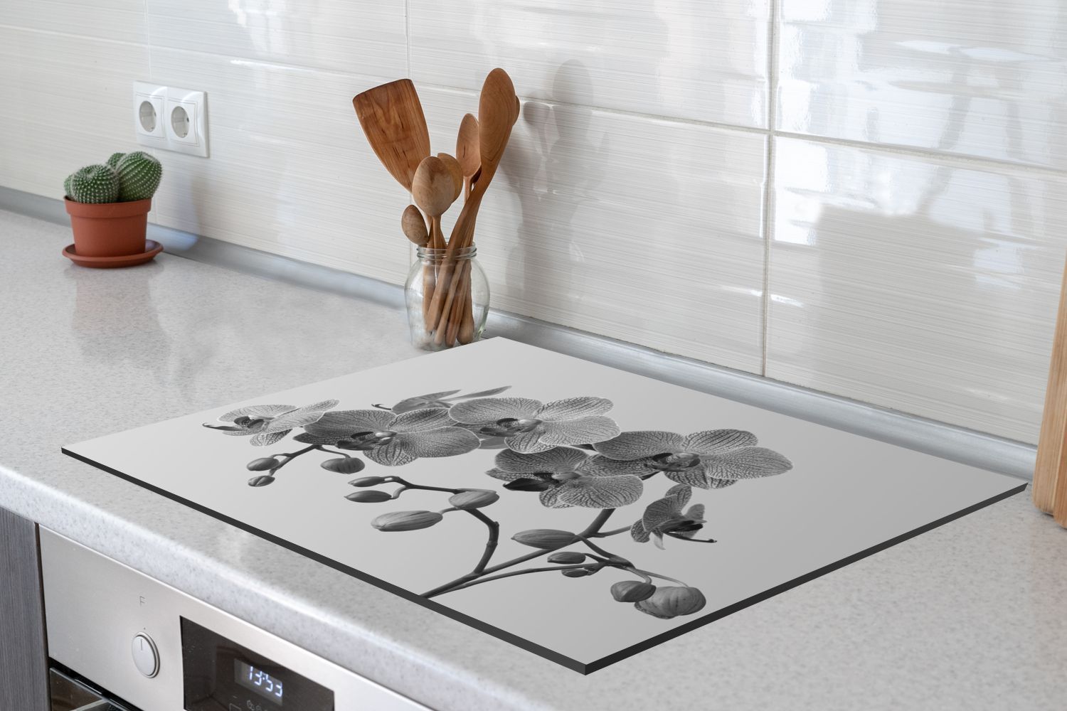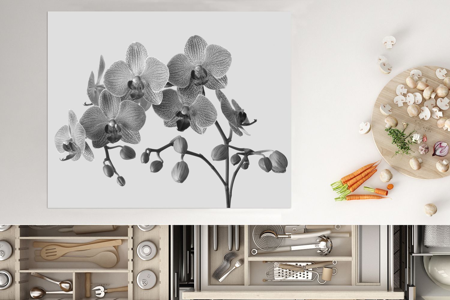 Herdabdeckplatte - 65x52 cm - Orchideen auf grauem Hintergrund - schwarz und weiß