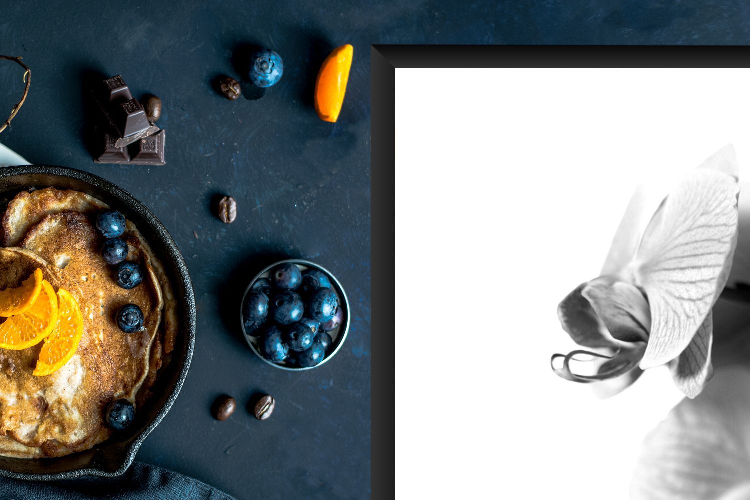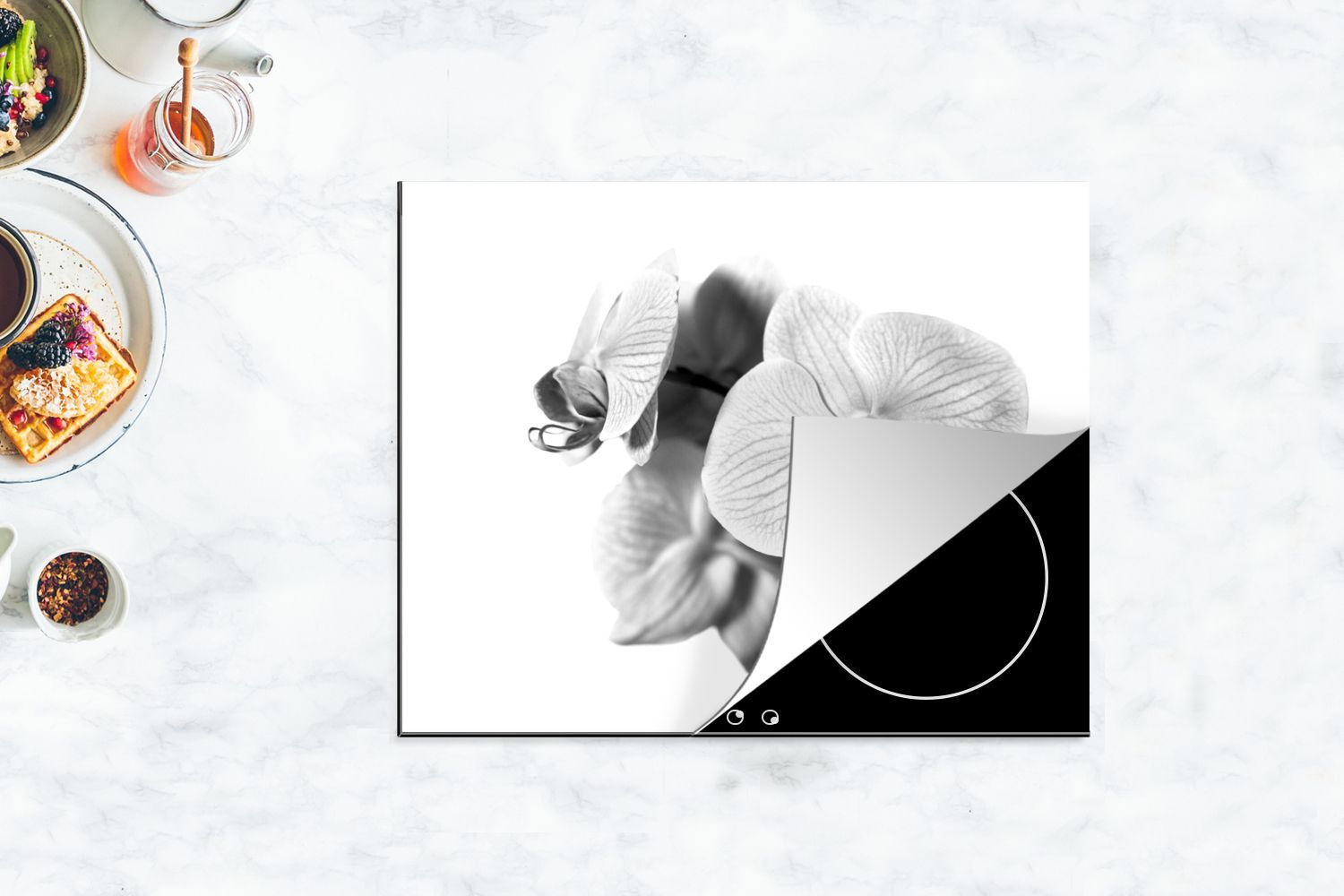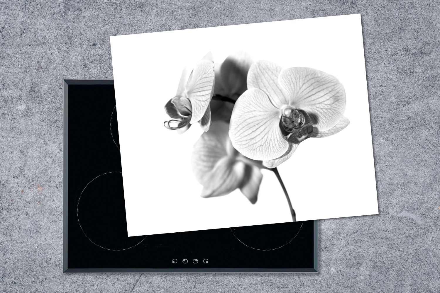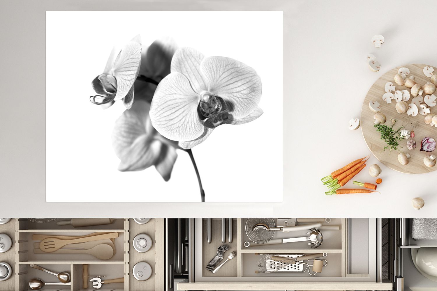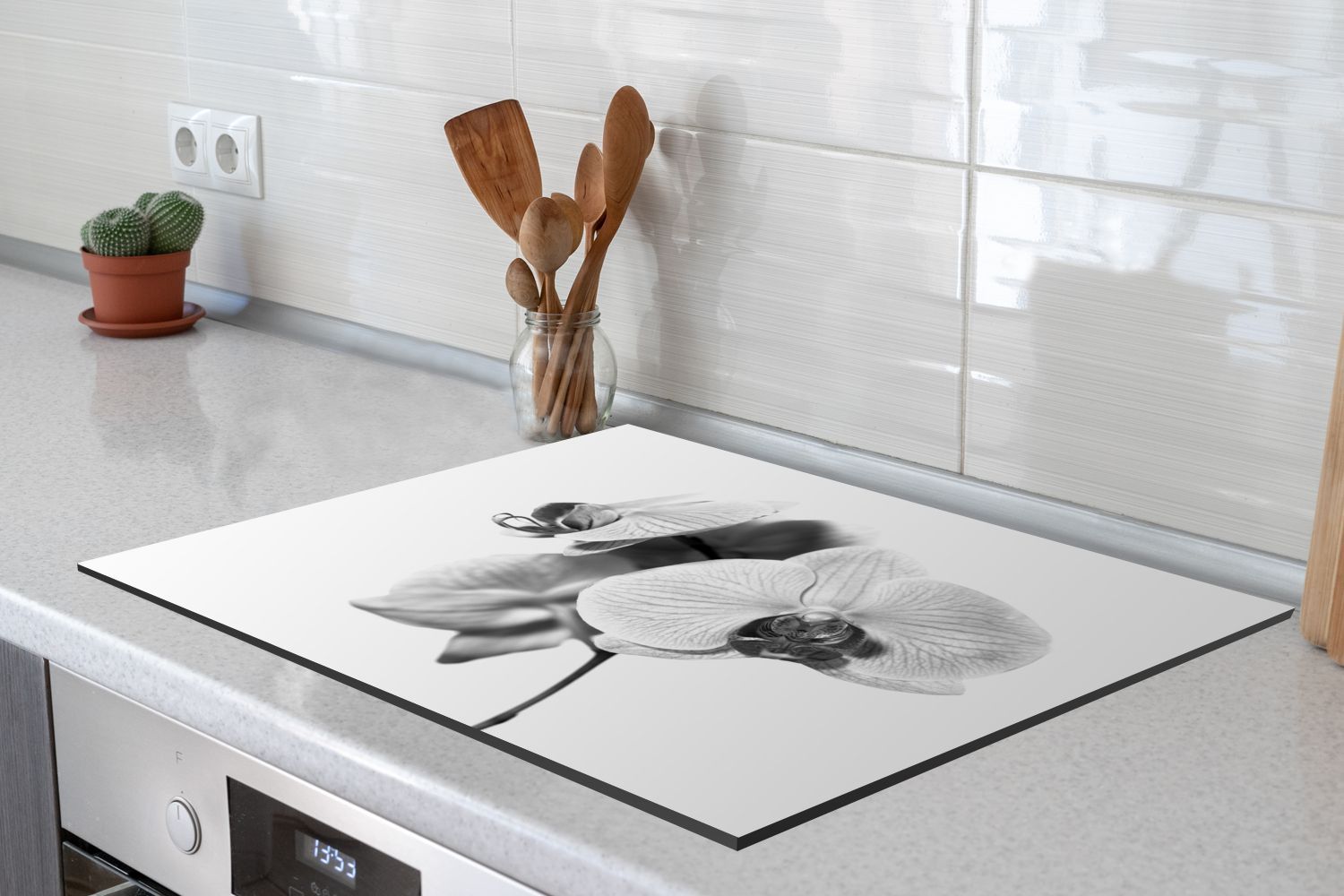 Herdabdeckplatte - 65x52 cm - Orchideenblüte vor weißem Hintergrund - schwarz und wei