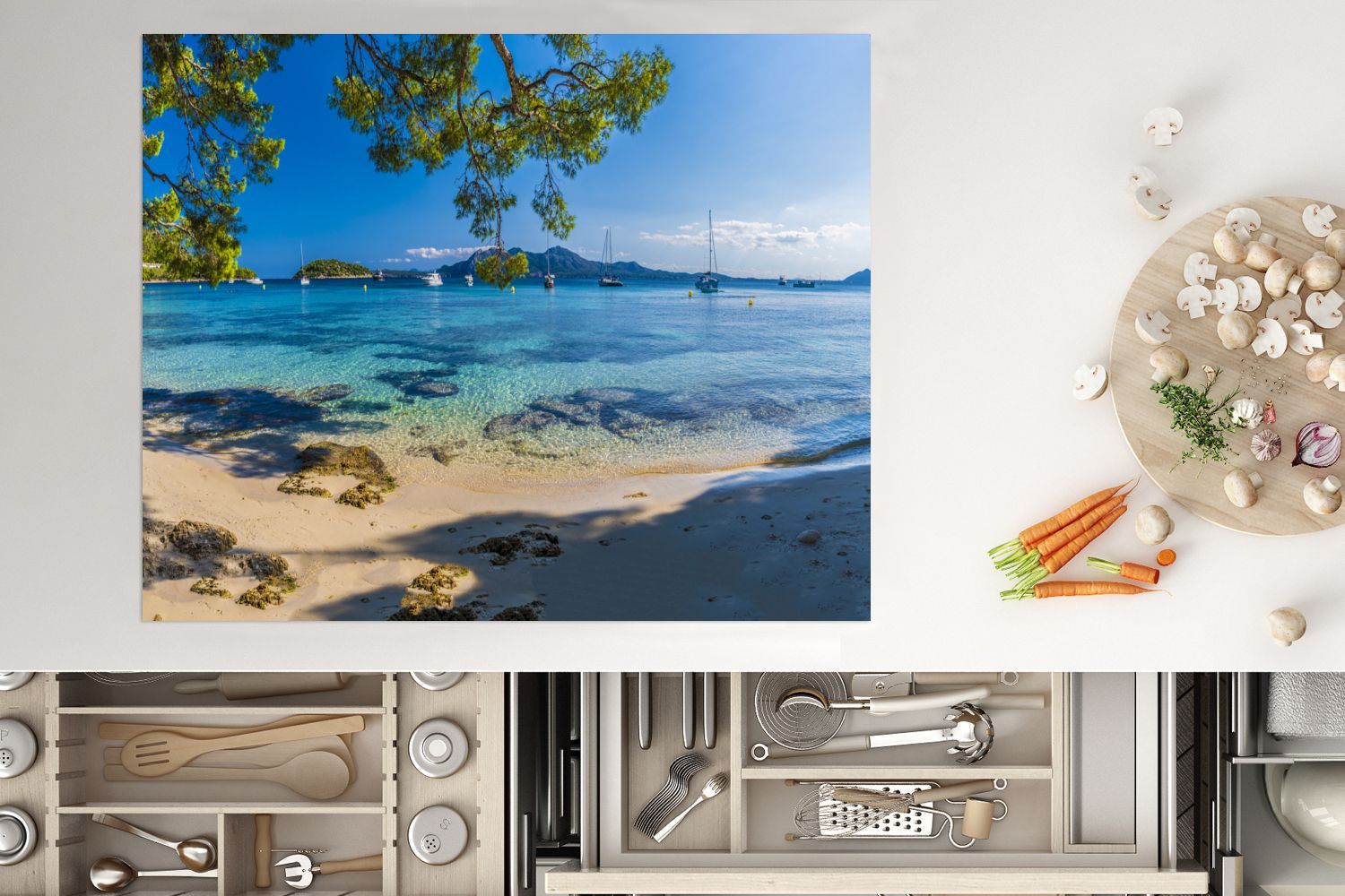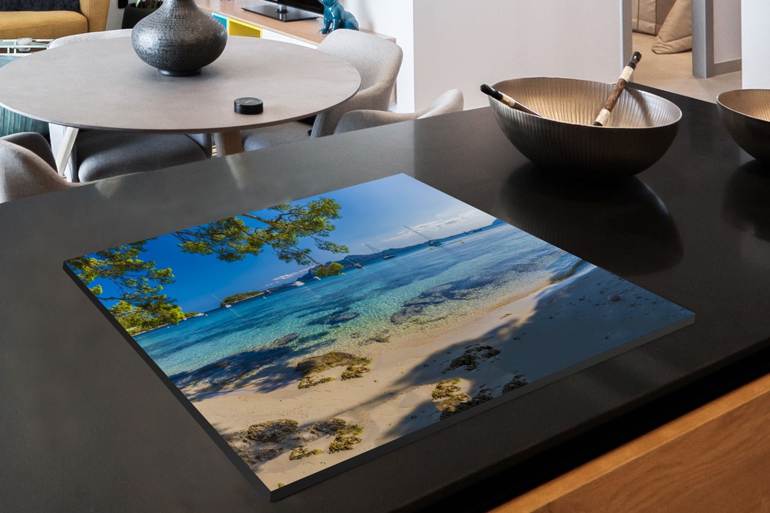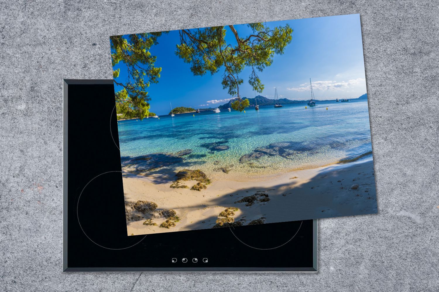 Herdabdeckplatte - 65x52 cm - Strand - Meer - Boot - Mallorca