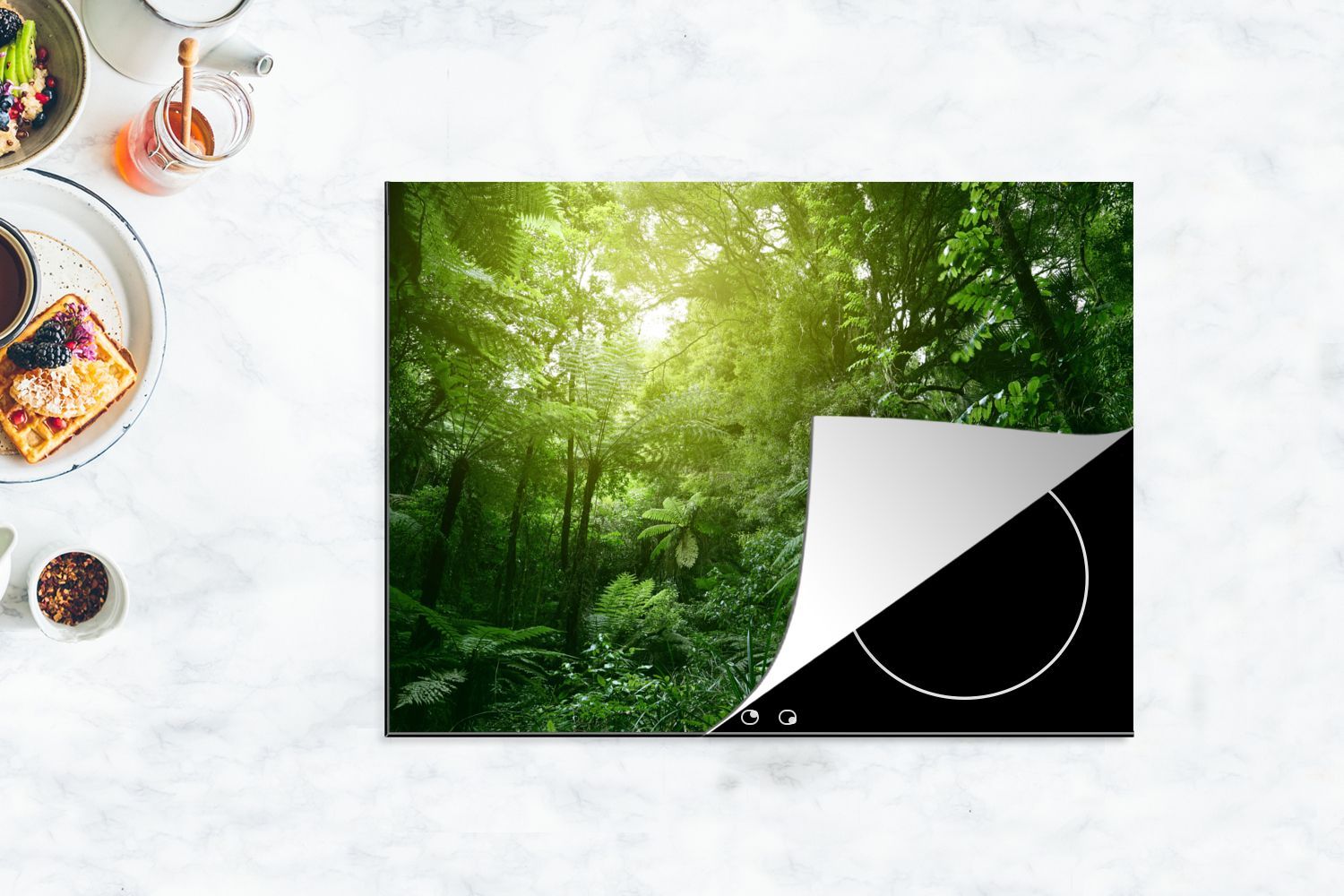 Herdabdeckplatte - 70x52 cm - Dschungel - Pflanzen - Blätter