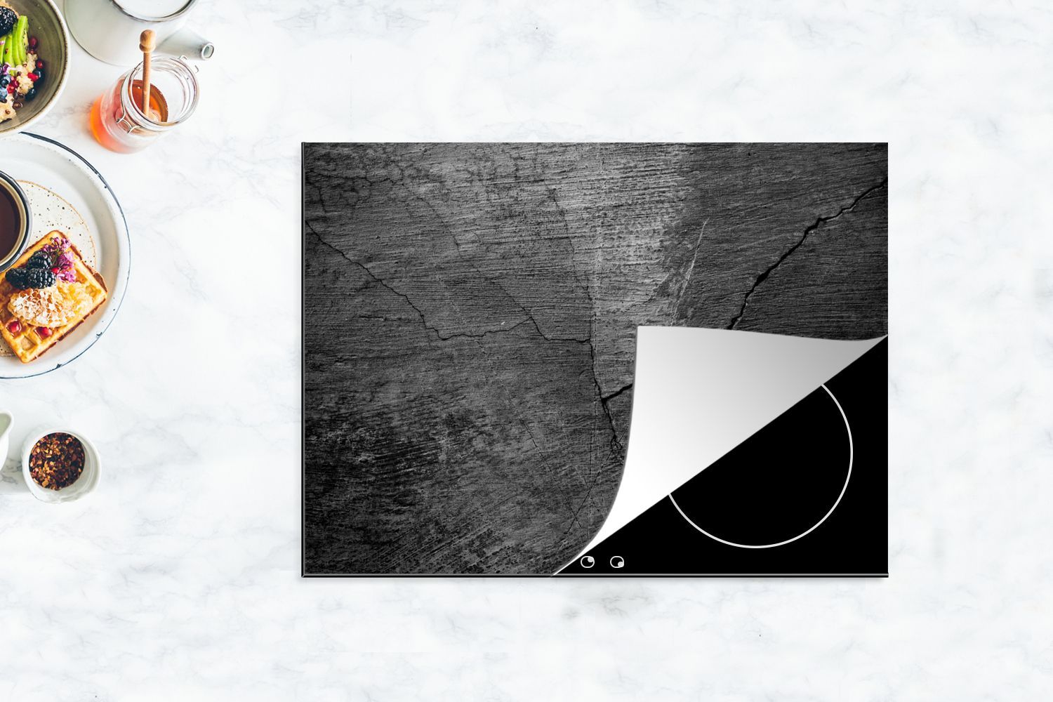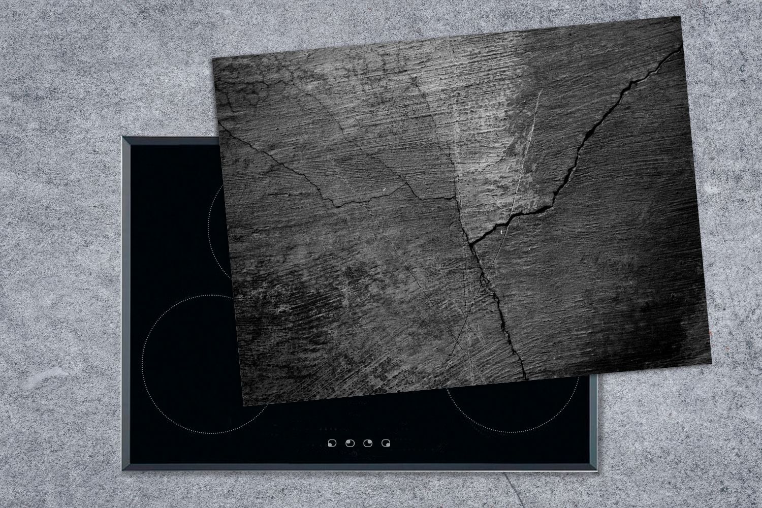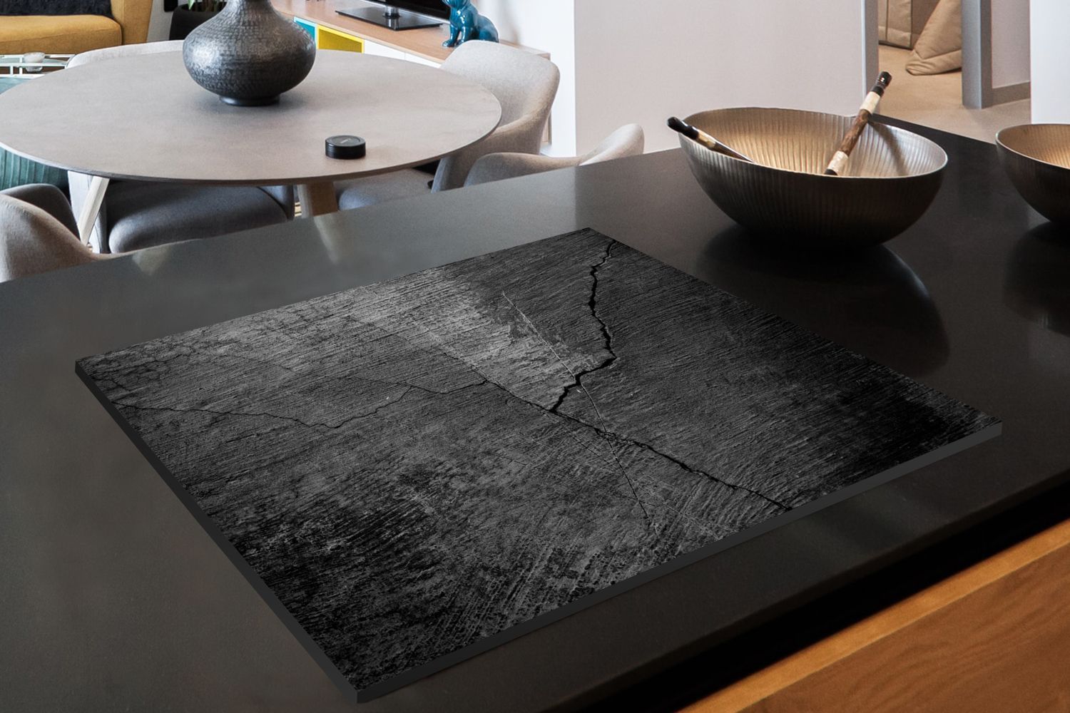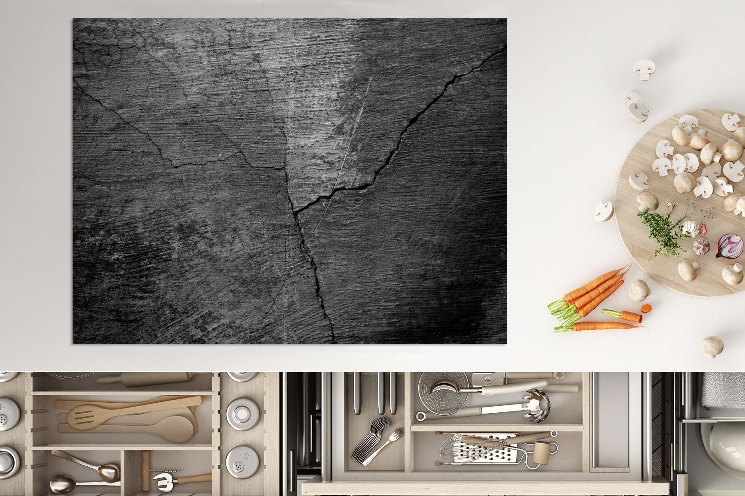 Herdabdeckplatte - 70x52 cm - Dunkle Betonstruktur mit einem Riss - schwarz und weiß