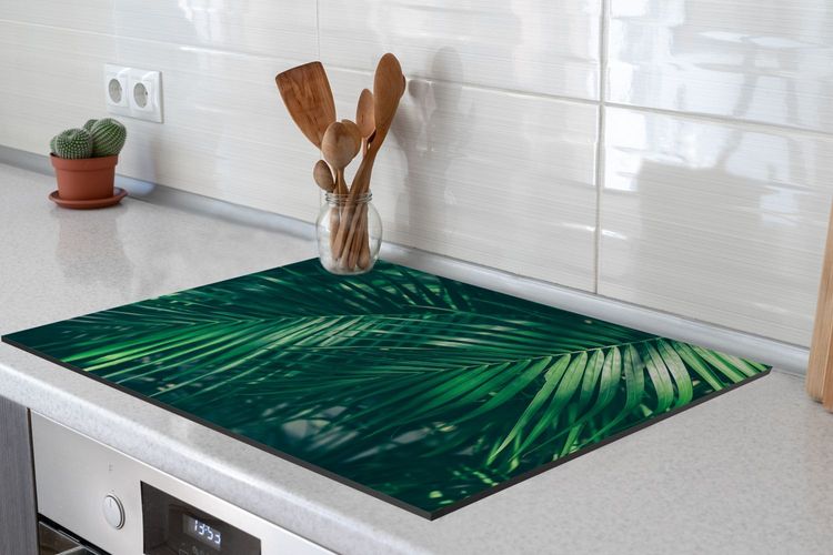 Herdabdeckplatte - 70x52 cm - Palmwedel - Makro - Grün