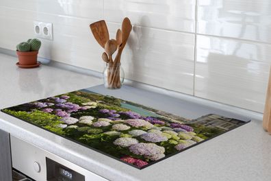 • Herdabdeckplatte - 70x52 cm - Hortensien am Meer