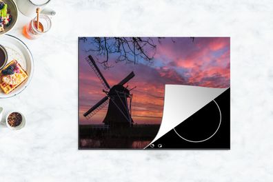 • Herdabdeckplatte - 70x52 cm - Windmühle während eines Sonnenaufgangs