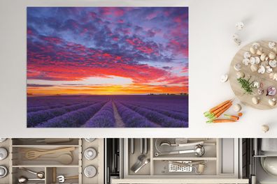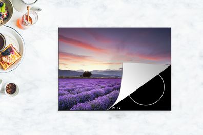 • Herdabdeckplatte - 70x52 cm - Lavendelfeld bei Sonnenuntergang