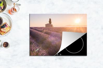 • Herdabdeckplatte - 70x52 cm - Sonnenaufgang über einem Lavendelfeld