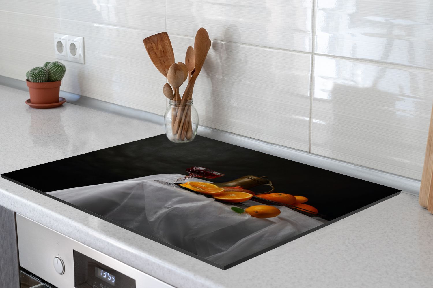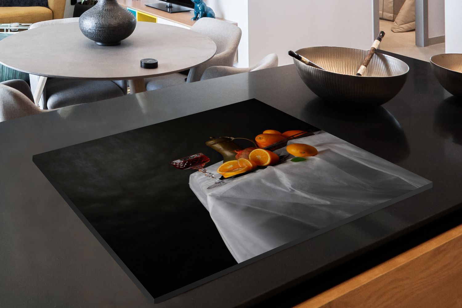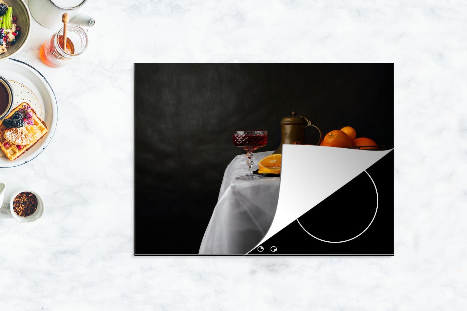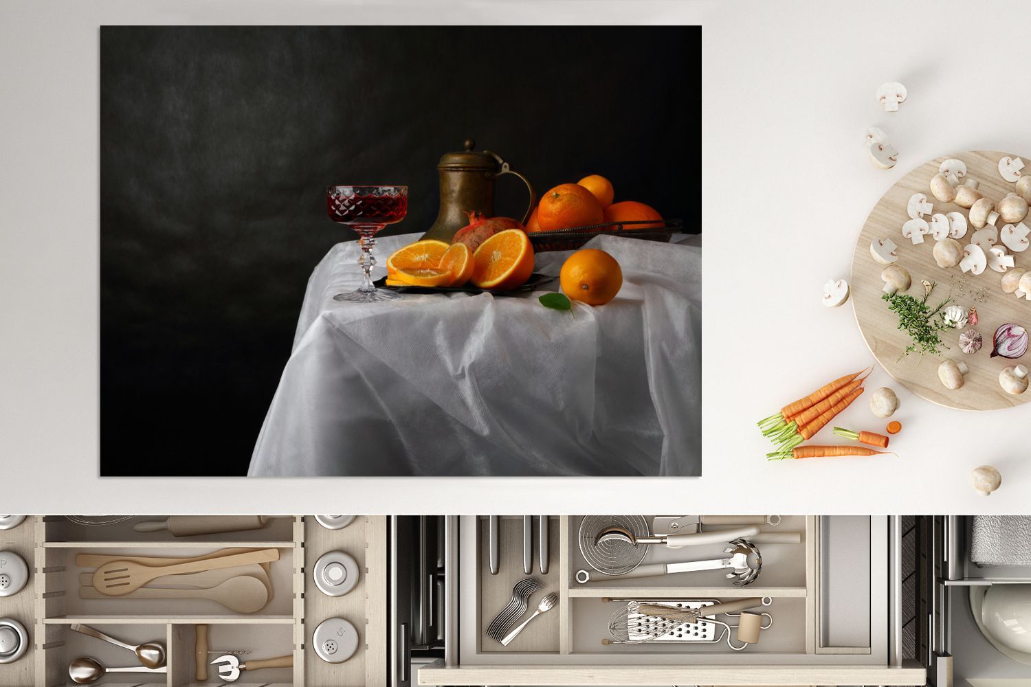 Herdabdeckplatte - 70x52 cm - Stilleben - Mandarinen - Wein