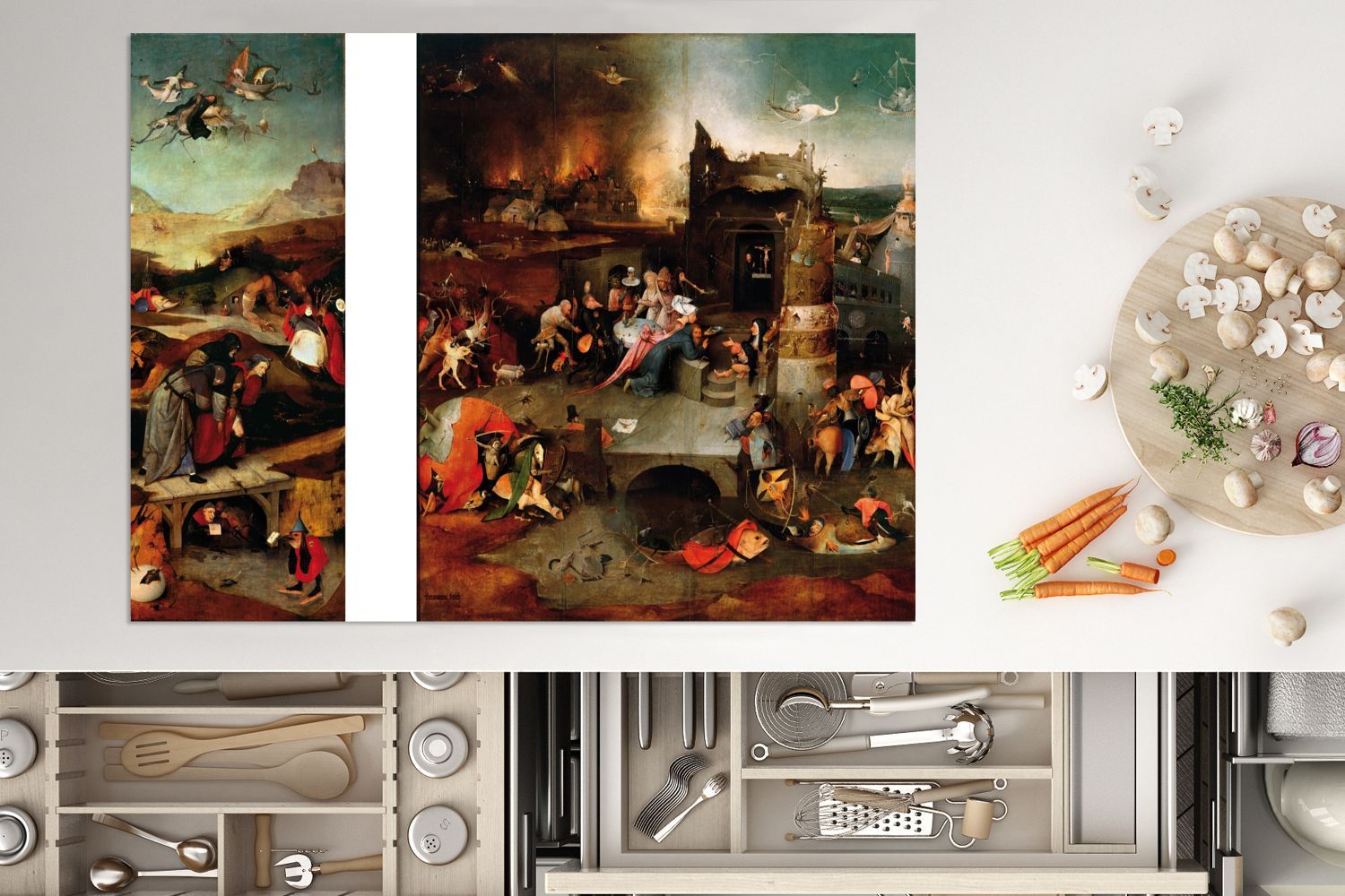 Herdabdeckplatte - 70x52 cm - Versuchung des Heiligen Antonius - Gemälde von Hieronym