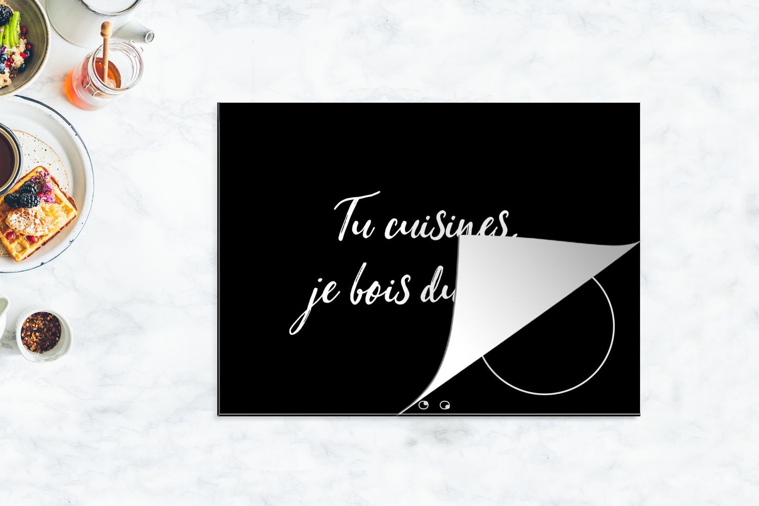Herdabdeckplatte 70x52 cm Zitate - Tu cuisines je bois du vin - Sprichwörter - Wein