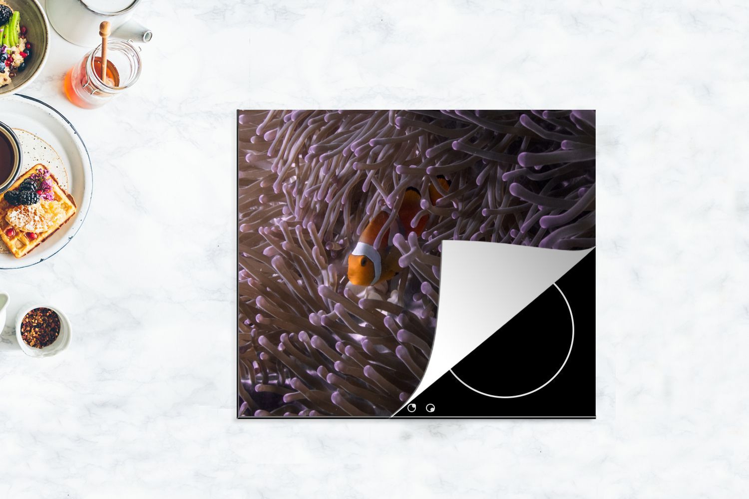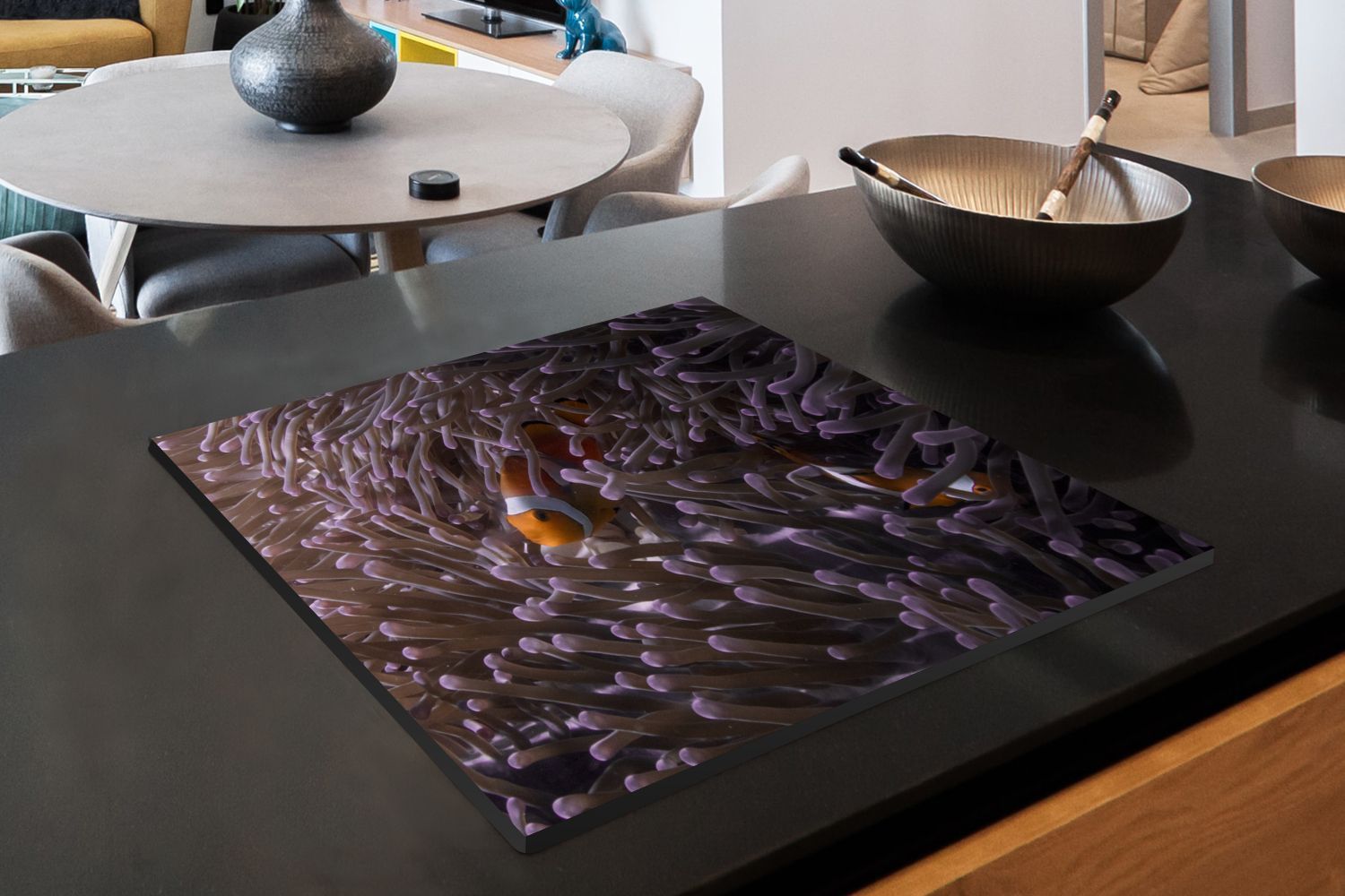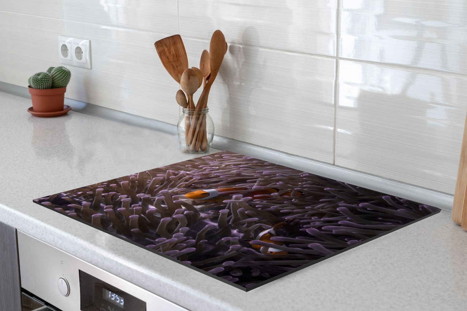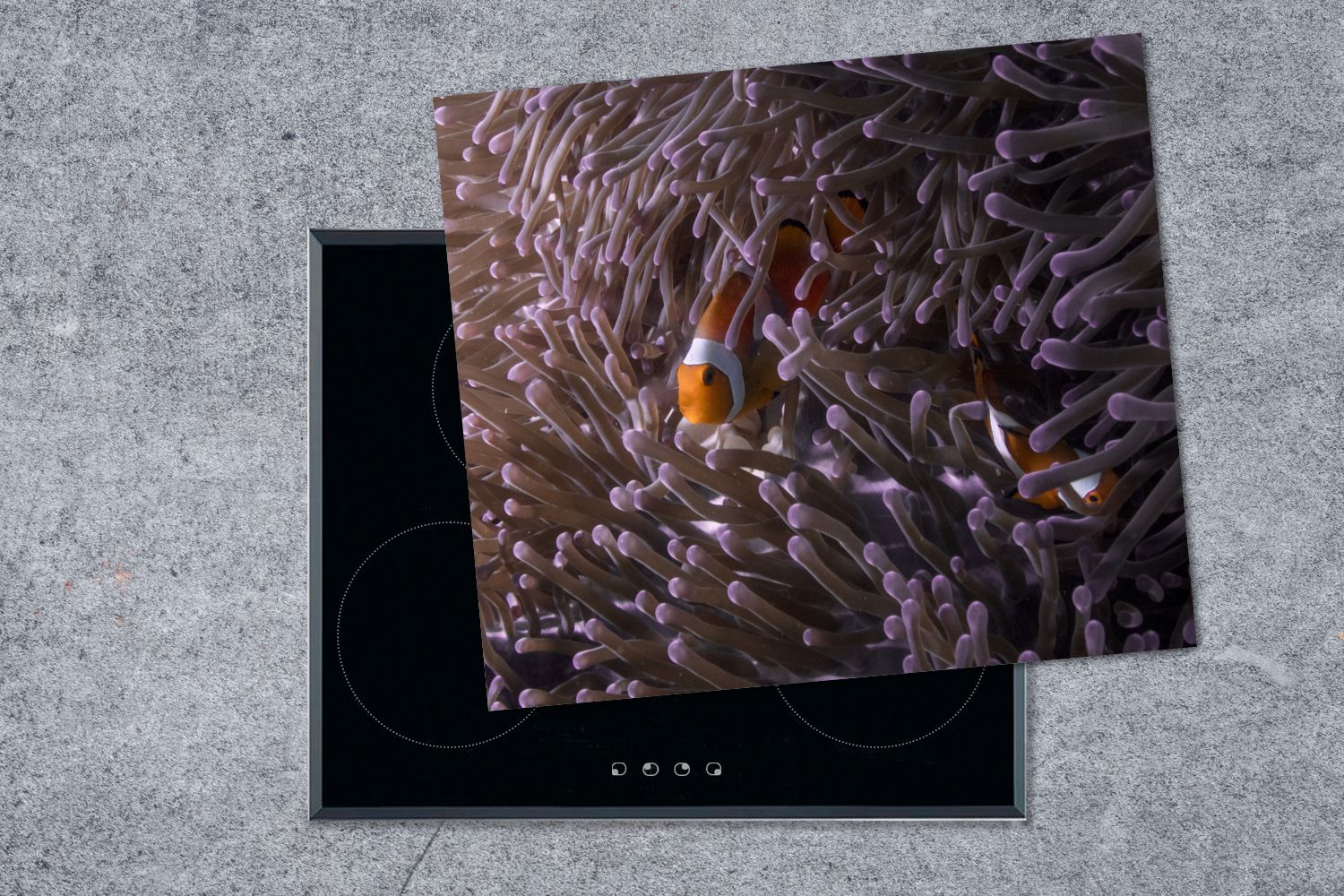 Herdabdeckplatte - 75x52 cm - Clownfisch versteckt zwischen den Seeanemonen