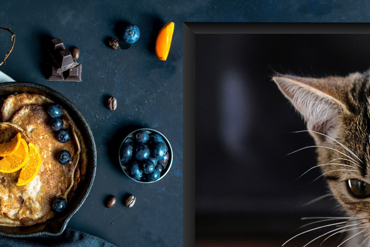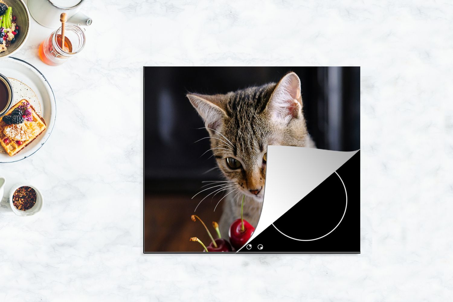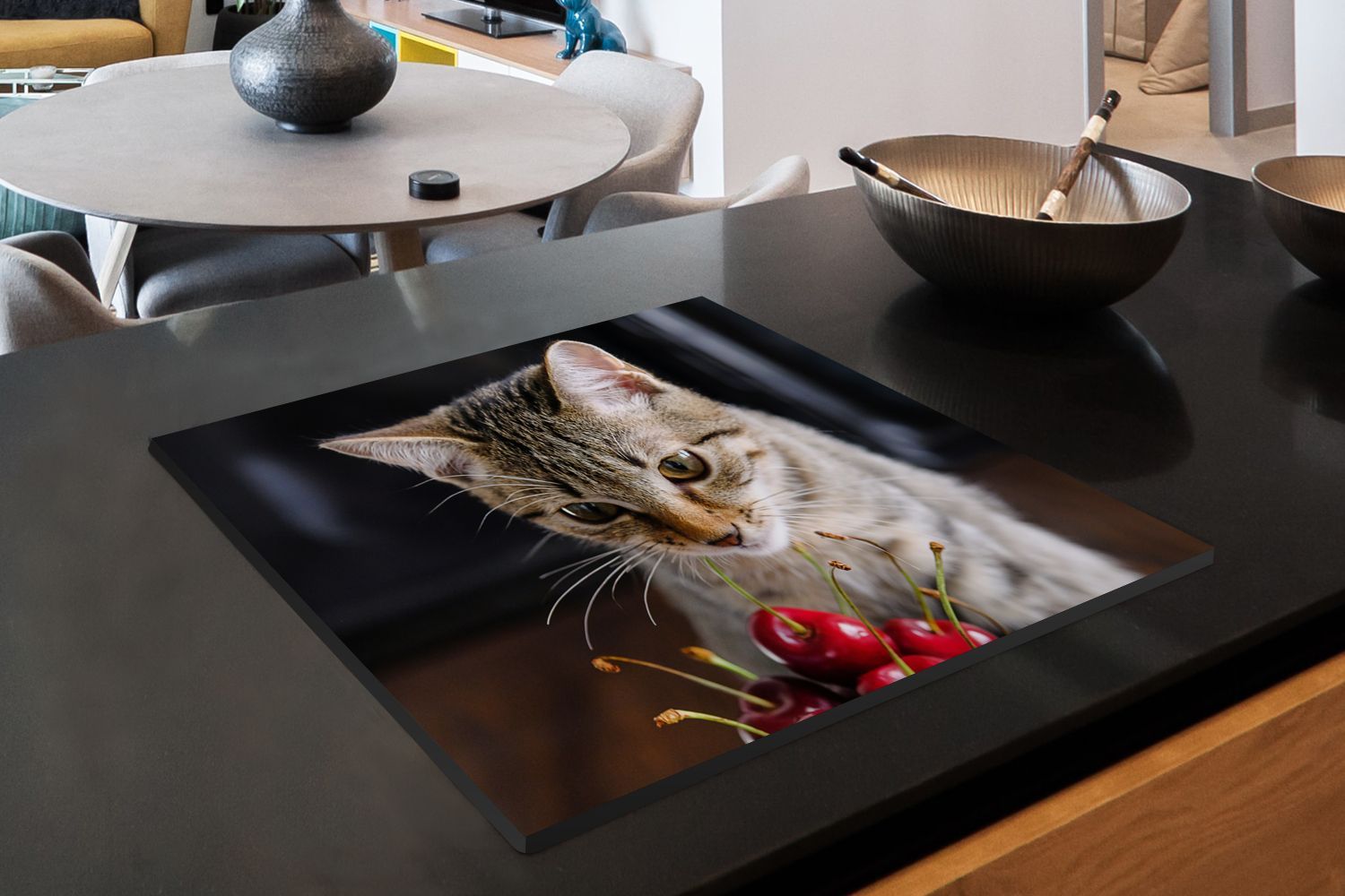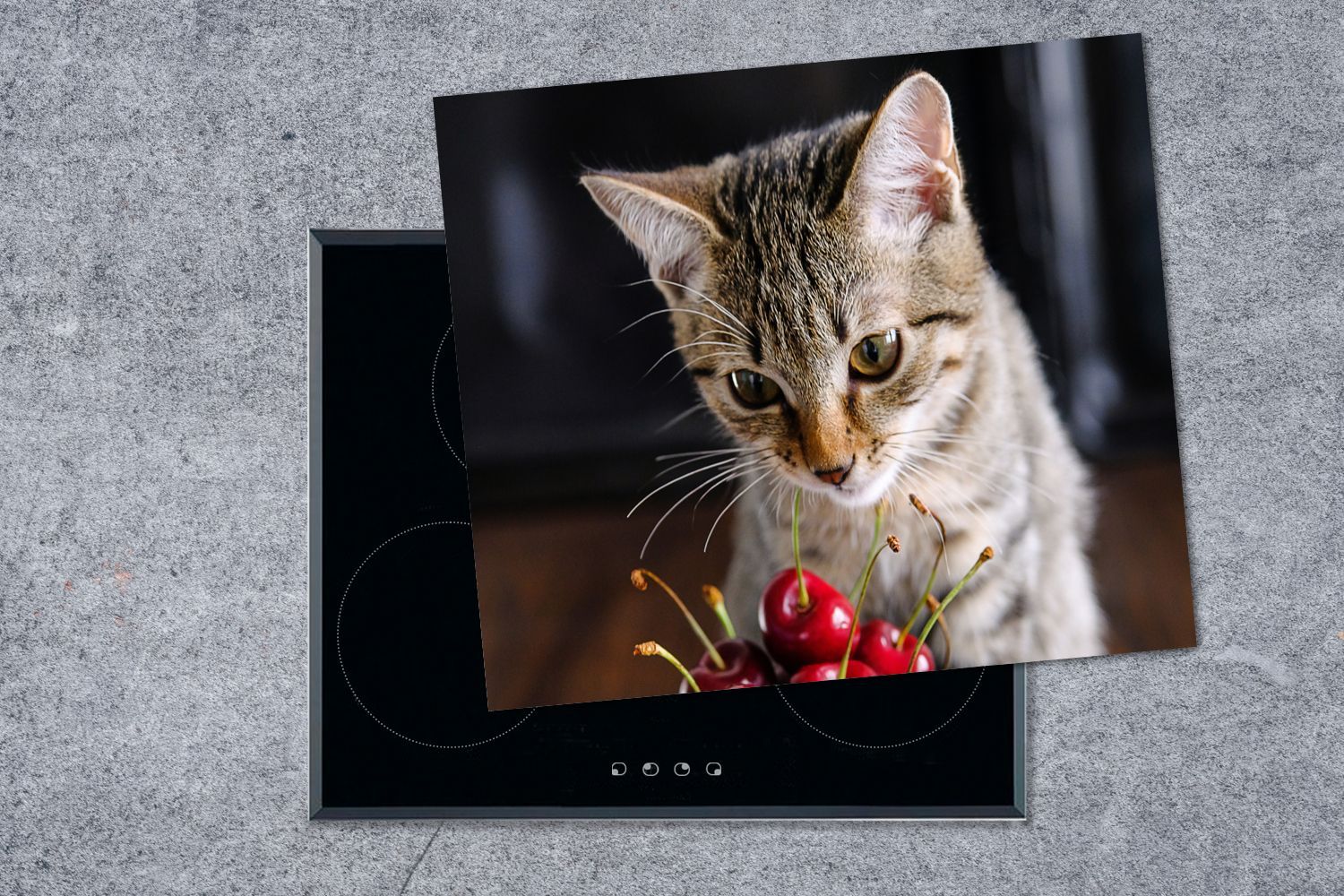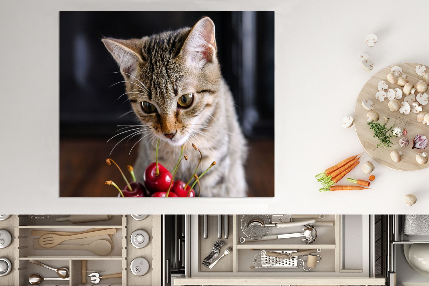 Herdabdeckplatte - 75x52 cm - Katze - Becher - Kirsche