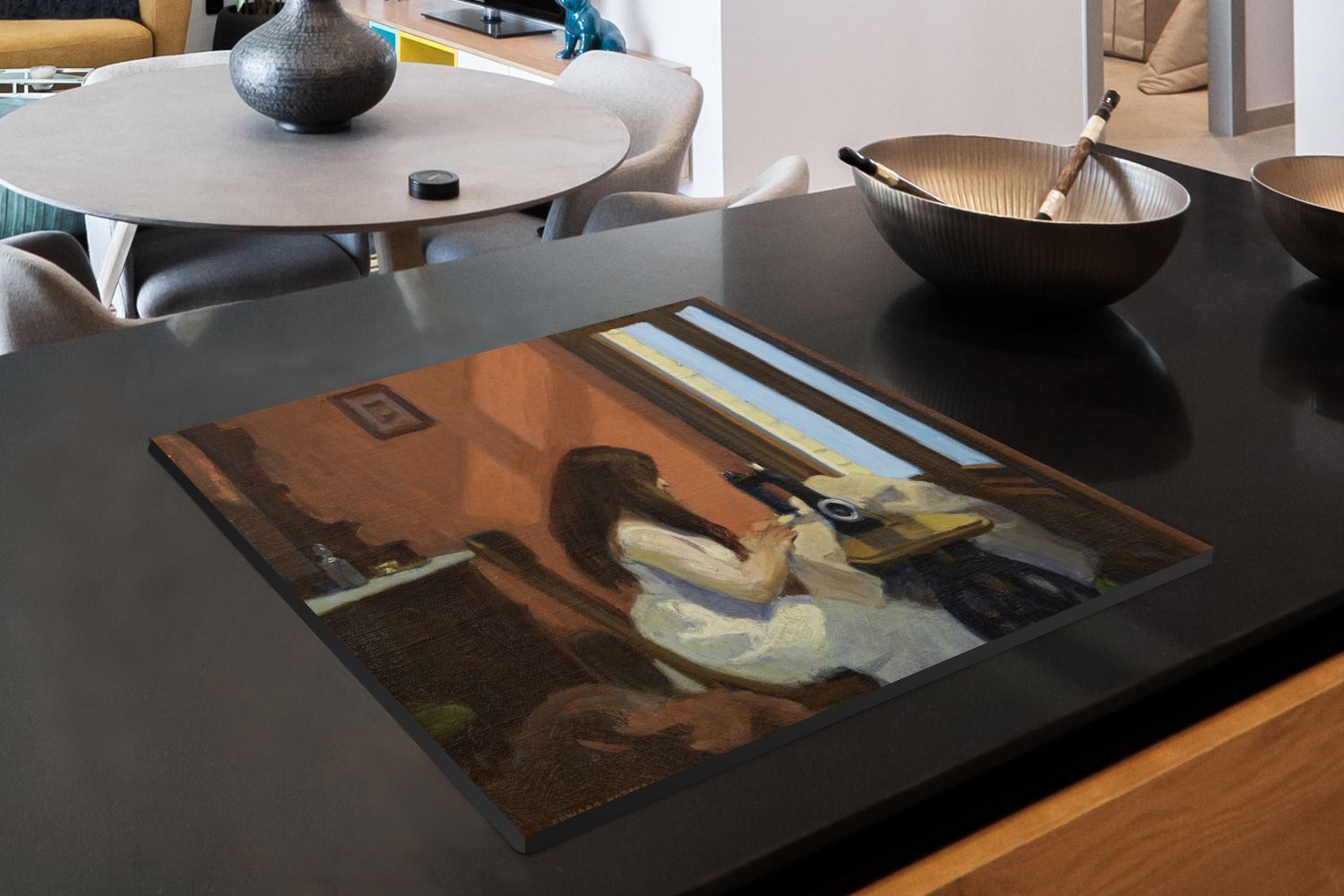 Herdabdeckplatte - 75x52 cm - Mädchen an der Nähmaschine - Edward Hopper