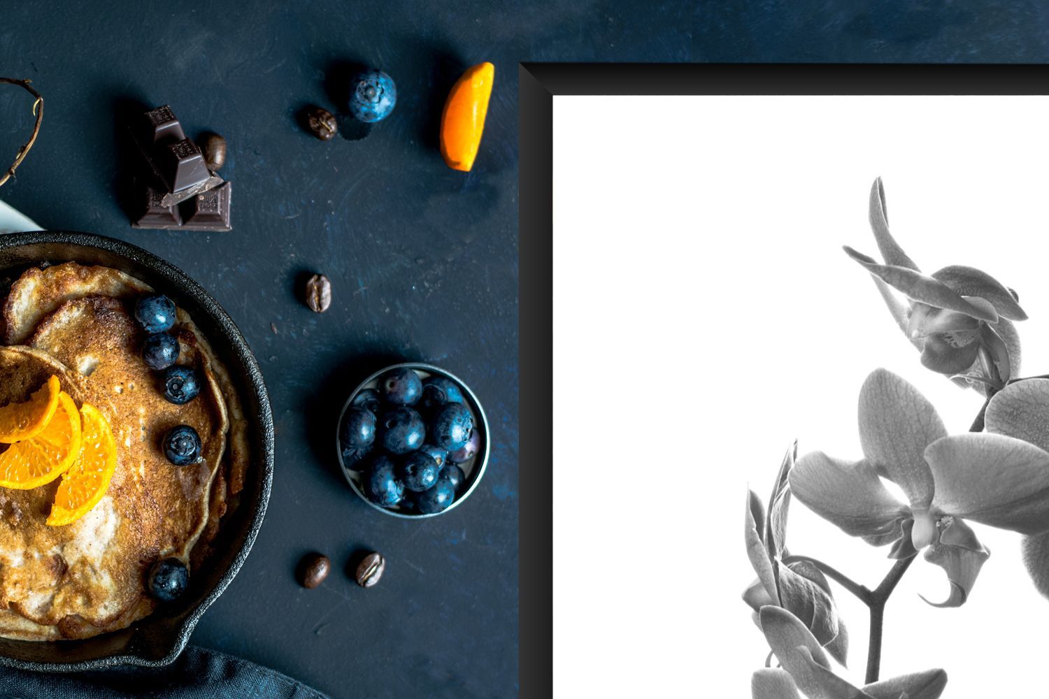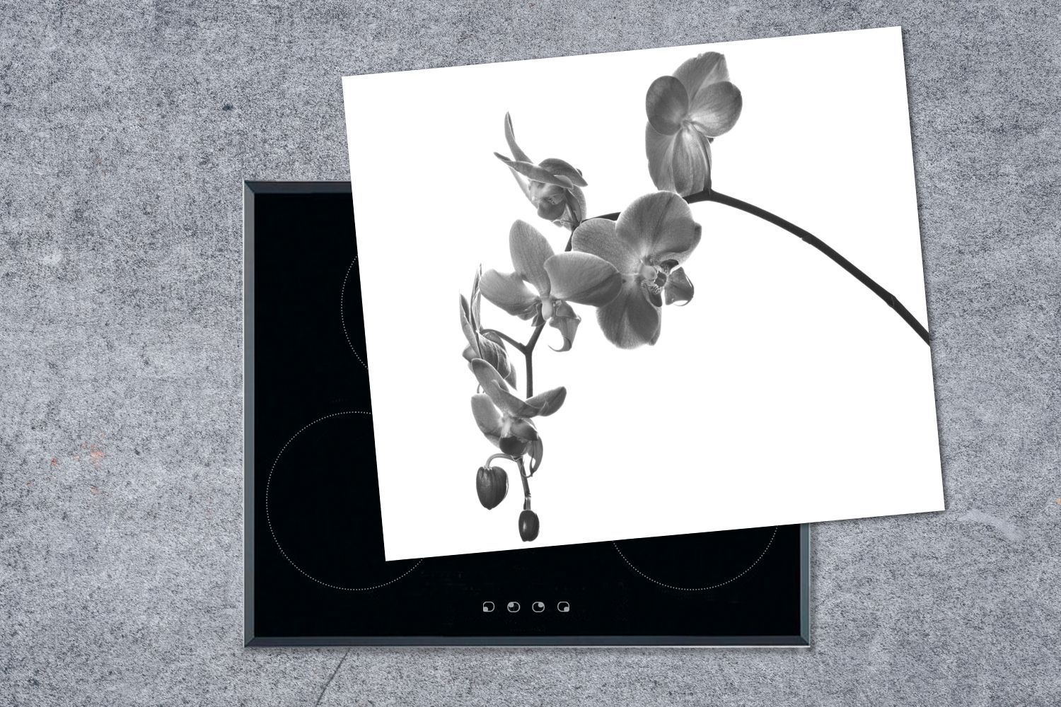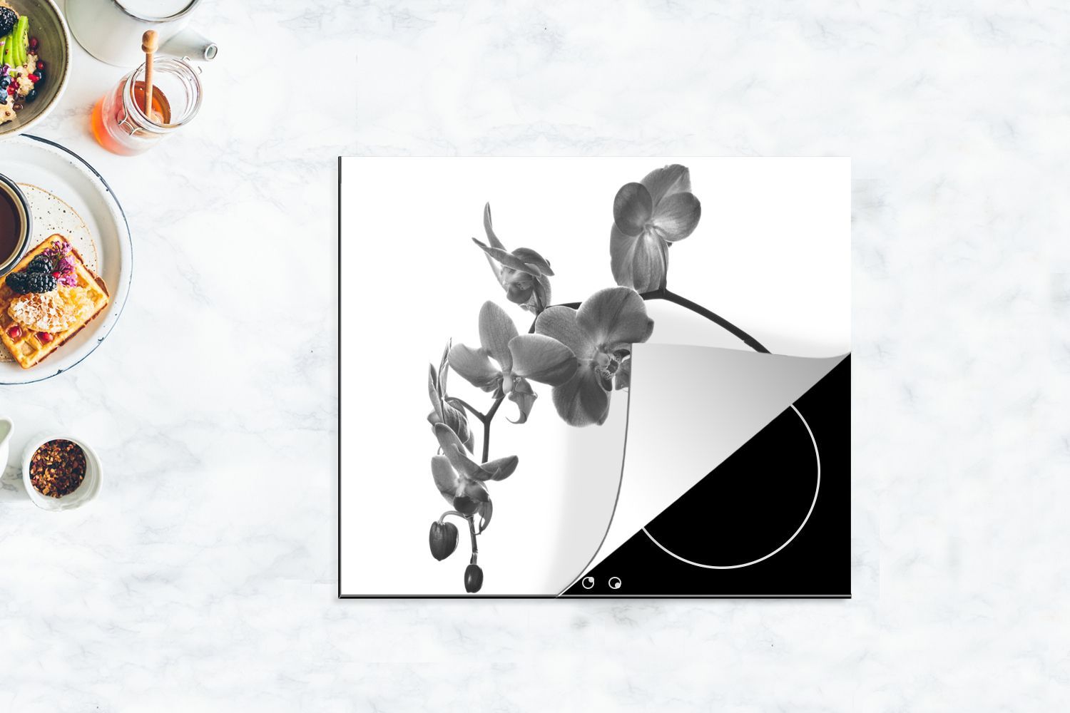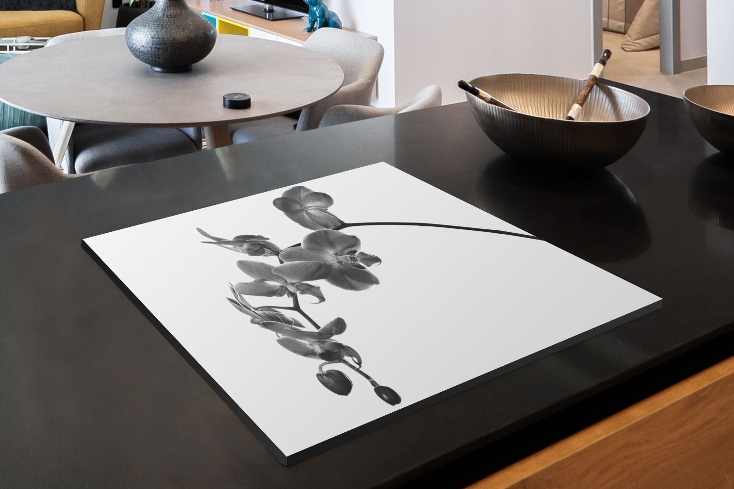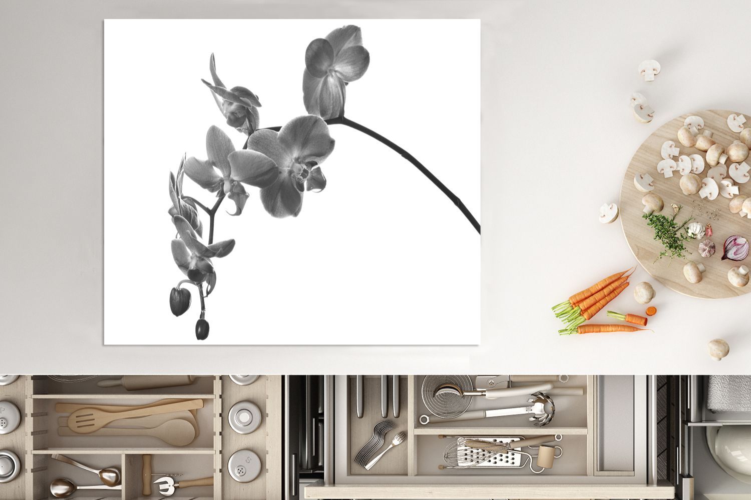 Herdabdeckplatte - 75x52 cm - Orchidee vor weißem Hintergrund - schwarz und weiß