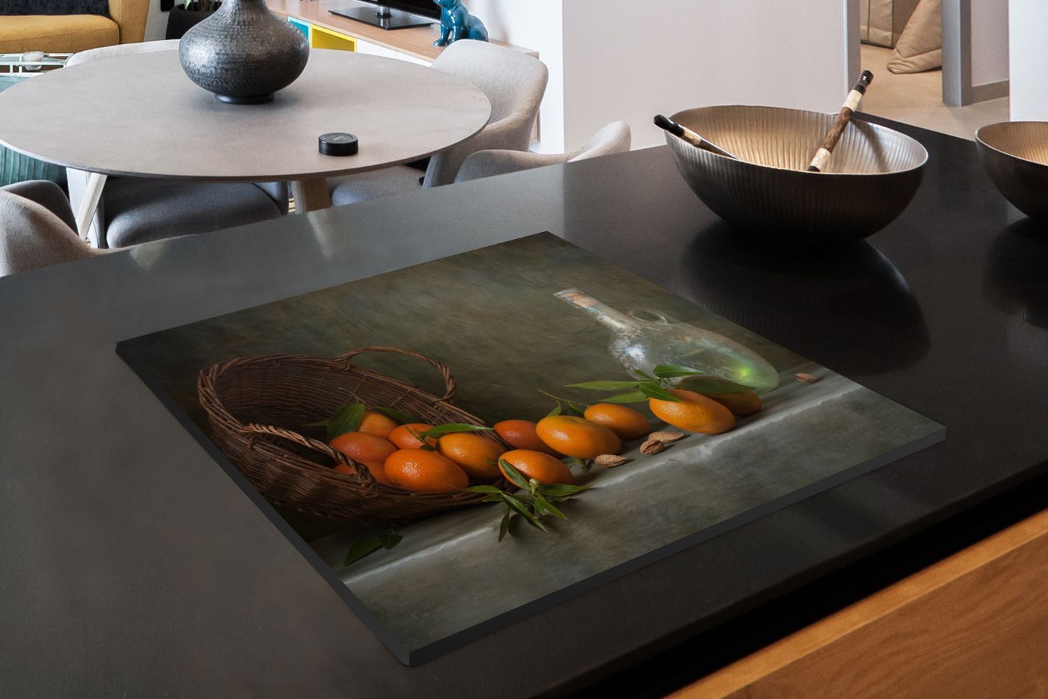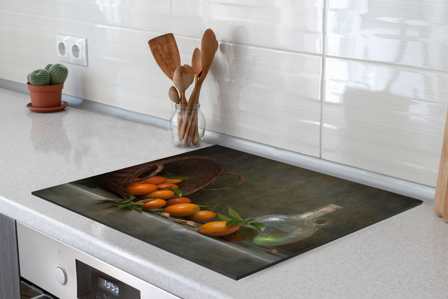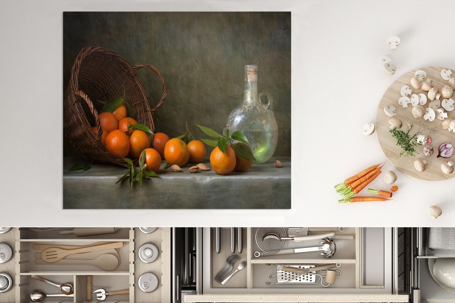 Herdabdeckplatte - 75x52 cm - Stilleben - Mandarine - Flasche