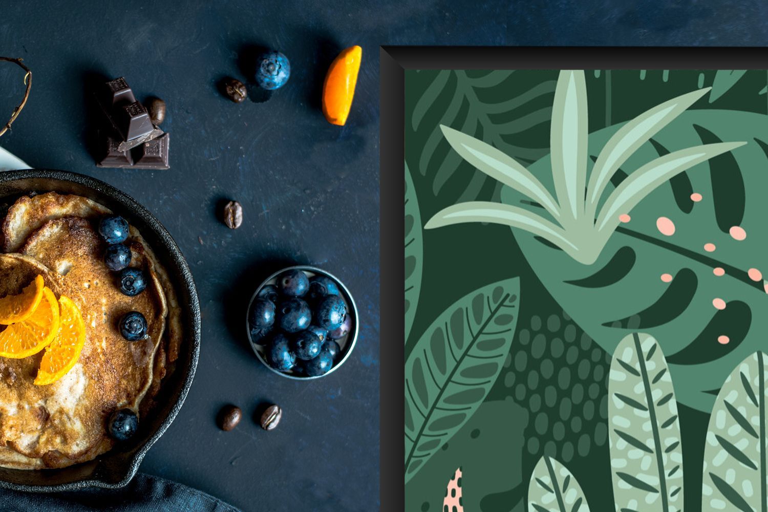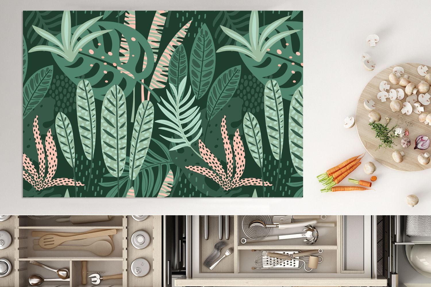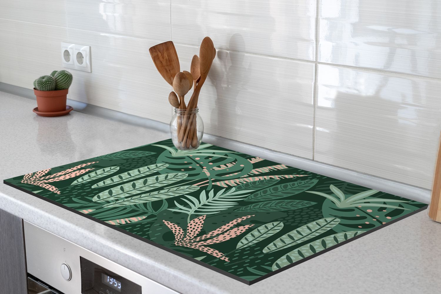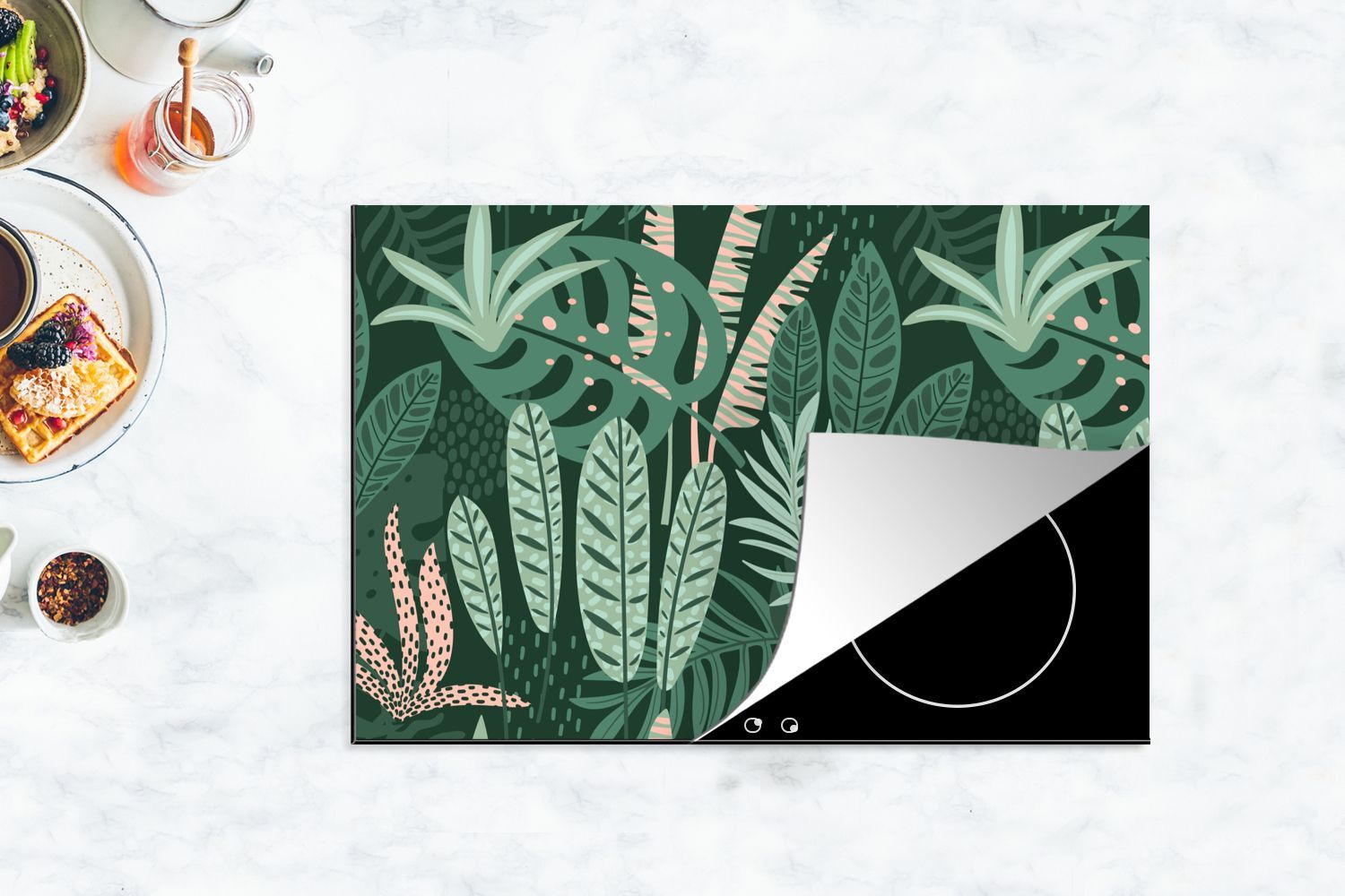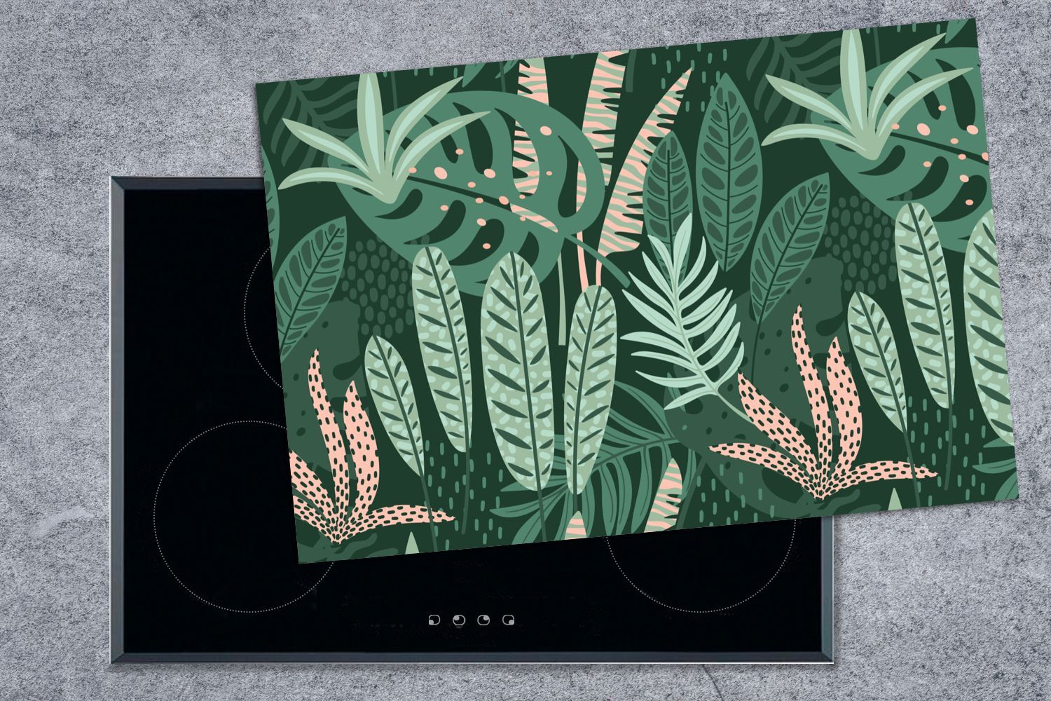Herdabdeckplatte - 78x52 cm - Blätter - Exotische Pflanzen - Muster