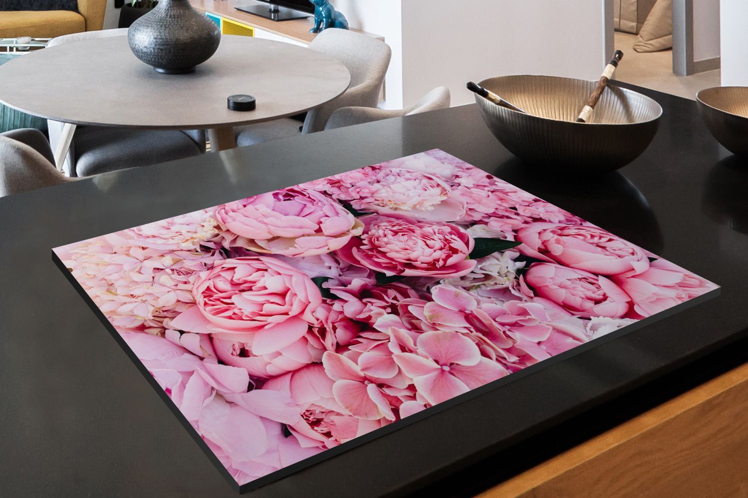 • Herdabdeckplatte - 78x52 cm - Hortensienpflanze