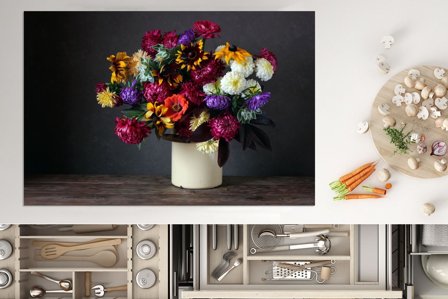Herdabdeckplatte - 78x52 cm - Blumenstrauß - Farben - Stilleben