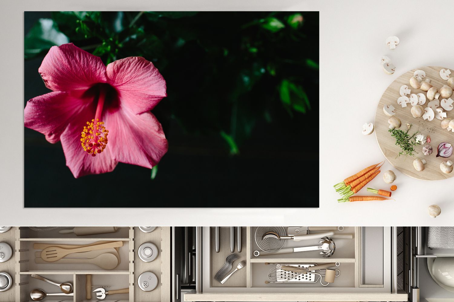 Herdabdeckplatte - 78x52 cm - Hibiskus - Blumen - Rosa