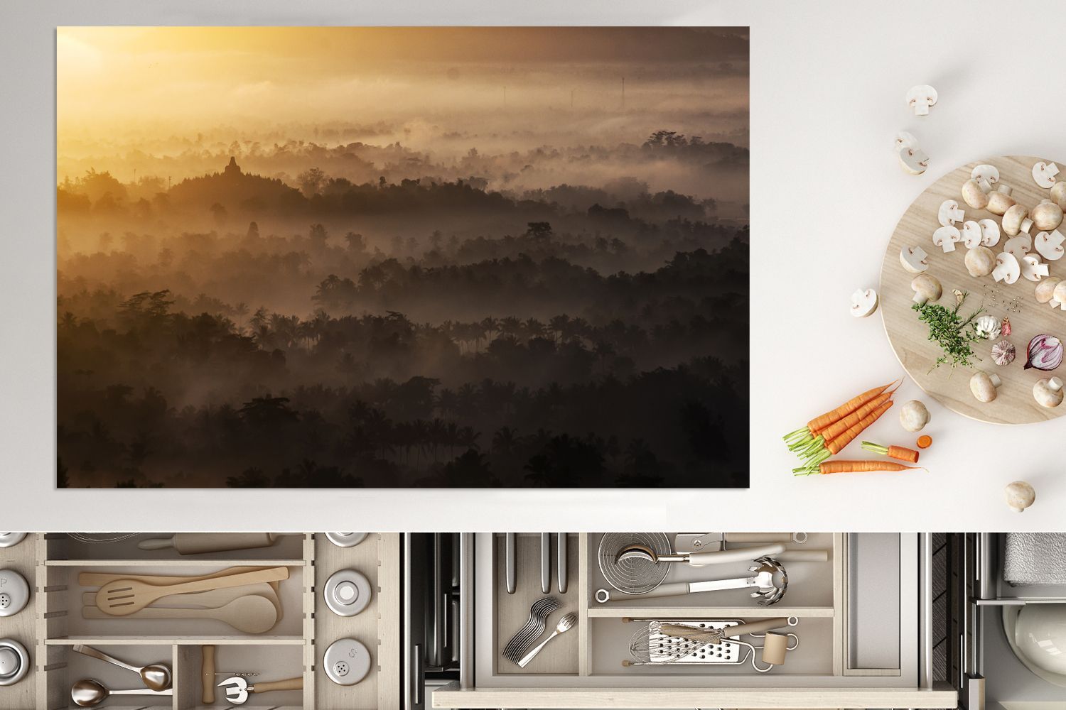 Herdabdeckplatte - 78x52 cm - Nebel über Java