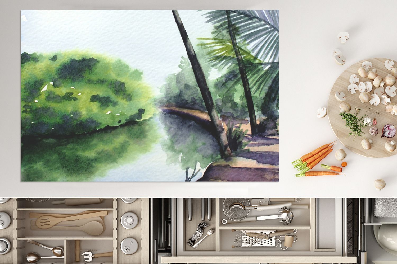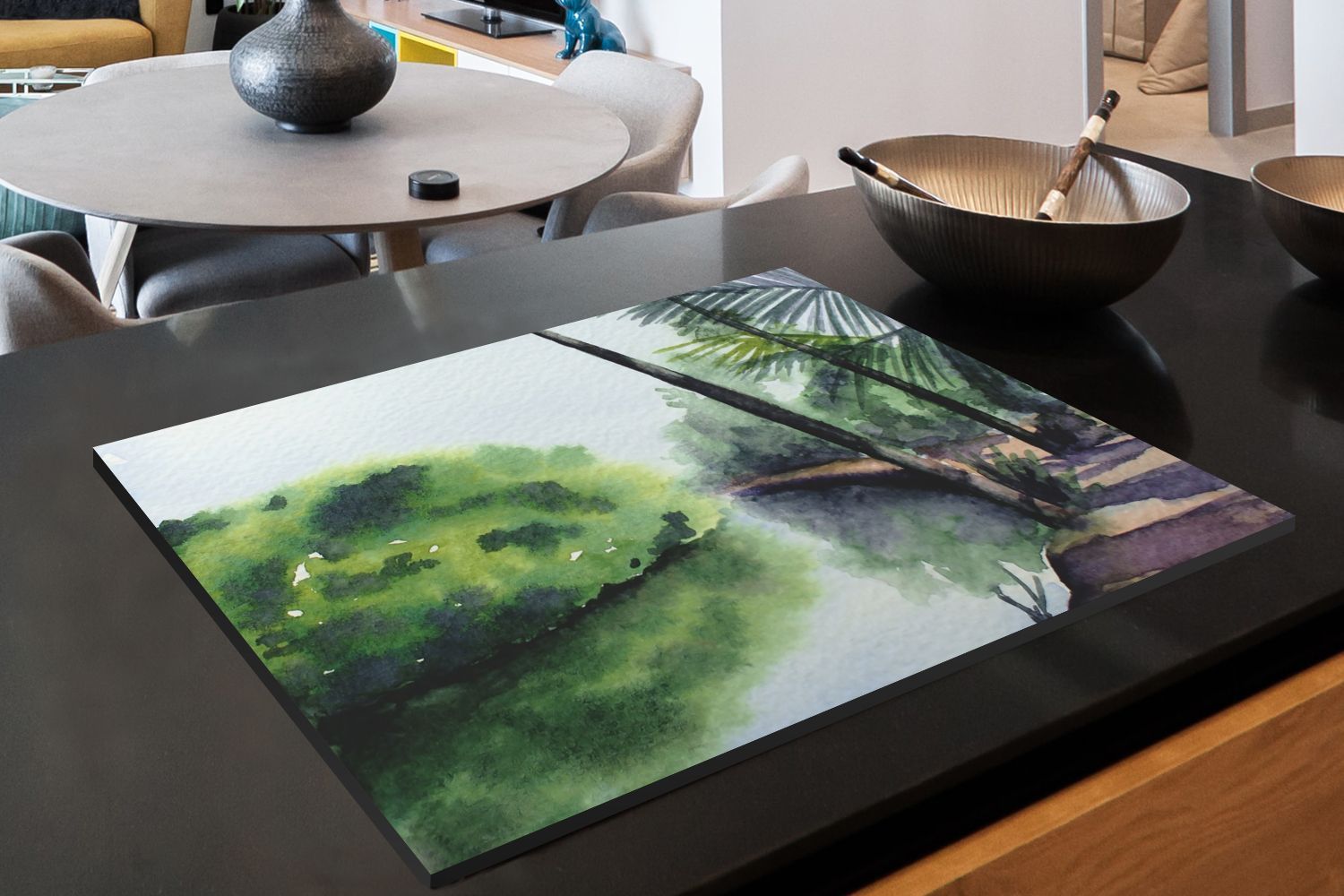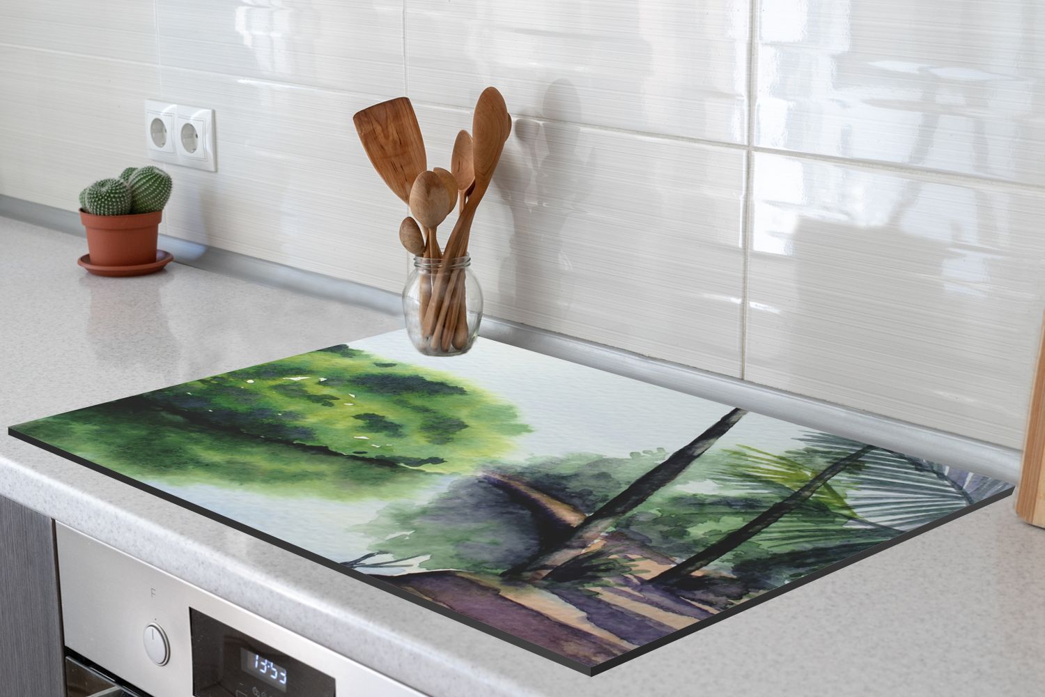 Herdabdeckplatte - 78x52 cm - Palme - Landschaft - Aquarell