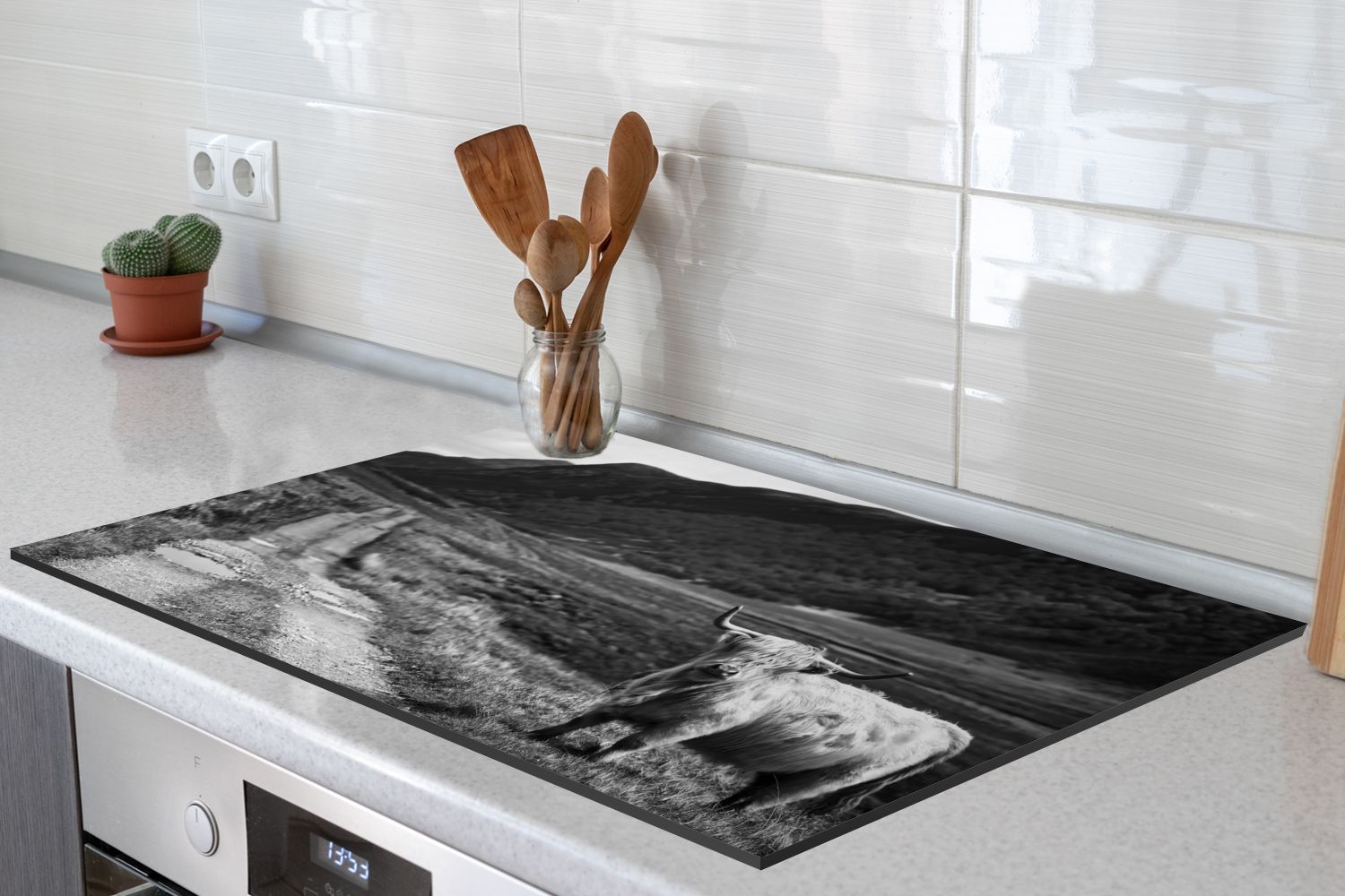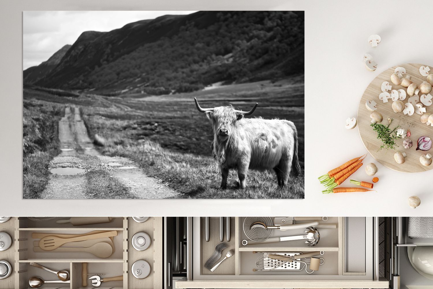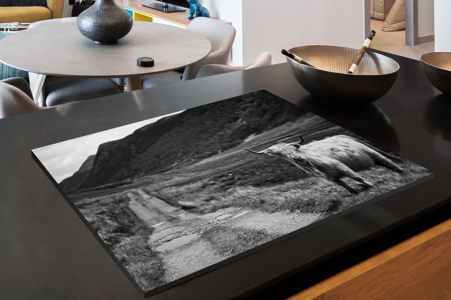 Herdabdeckplatte - 78x52 cm - Schottische Landschaft mit schottischem Highlander - sc