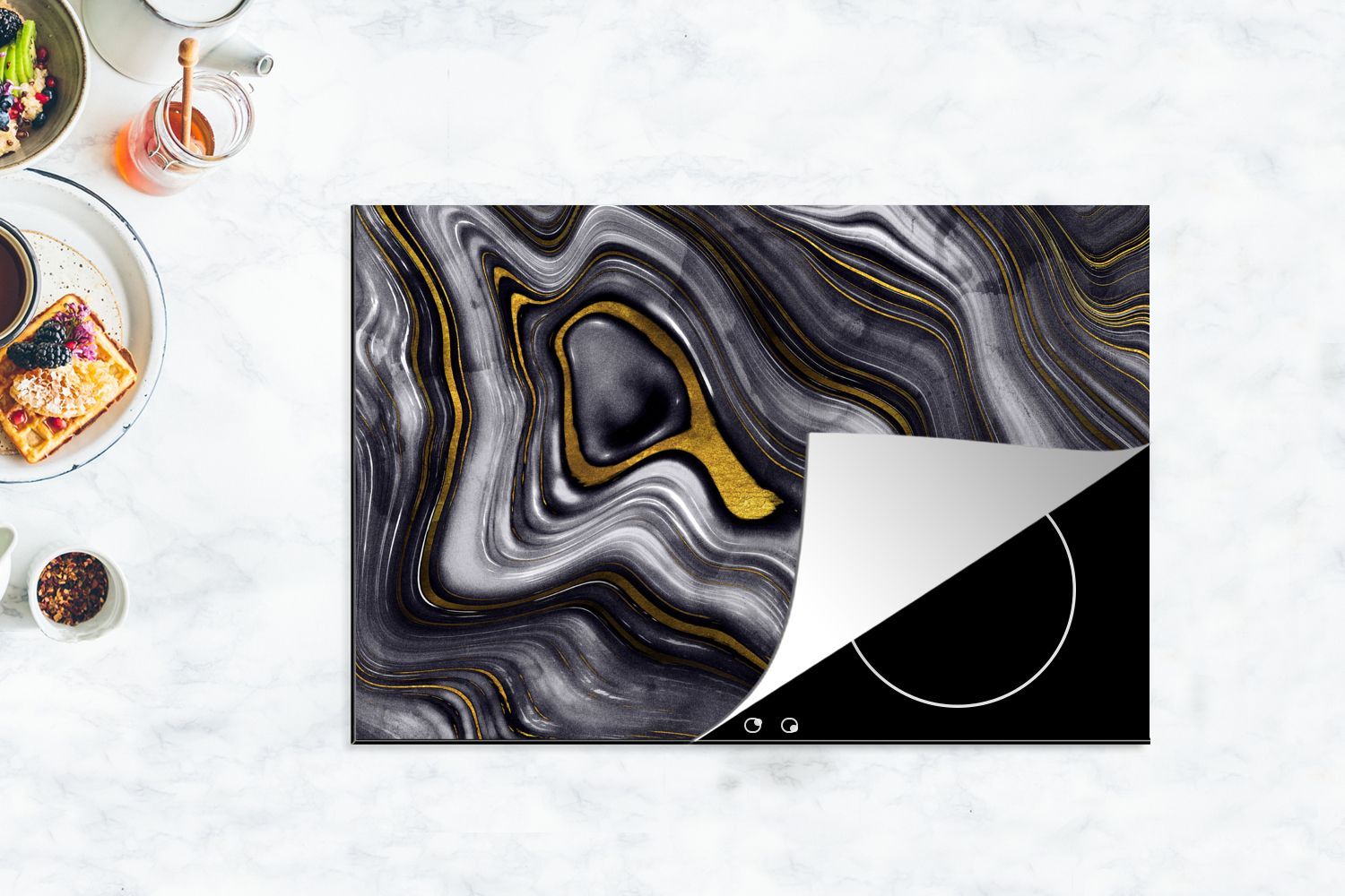 • Herdabdeckplatte 78x52 cm Marmor - Goldachat