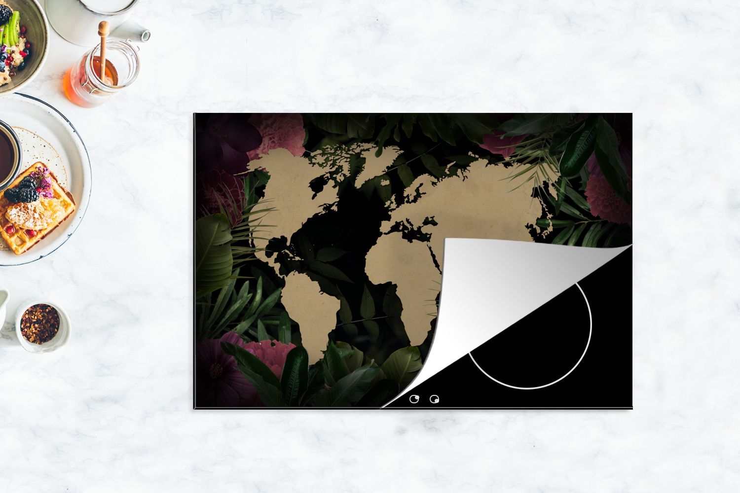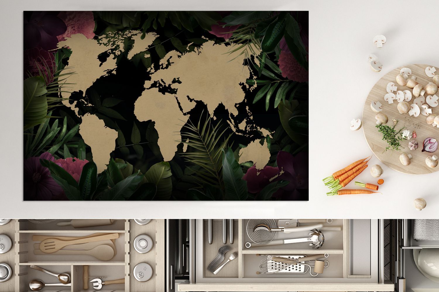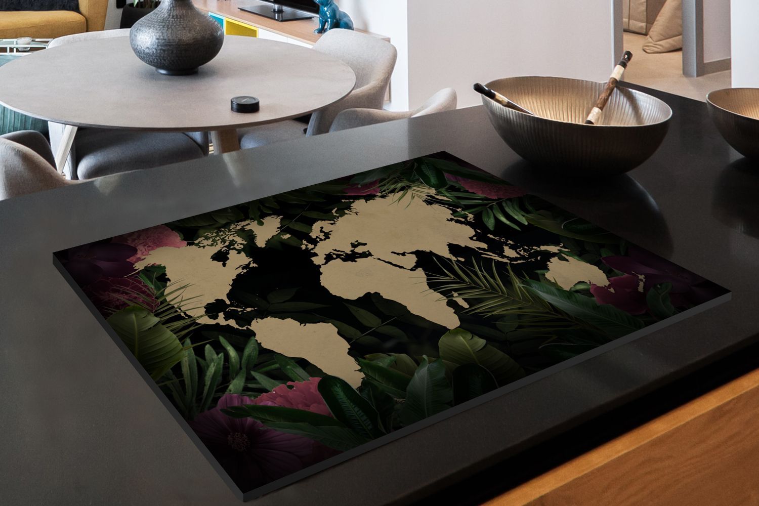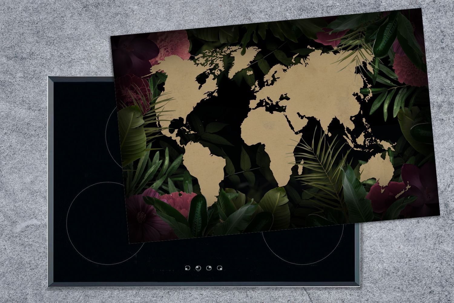 Herdabdeckplatte - 78x52 cm - Weltkarte - Blätter - Dschungel