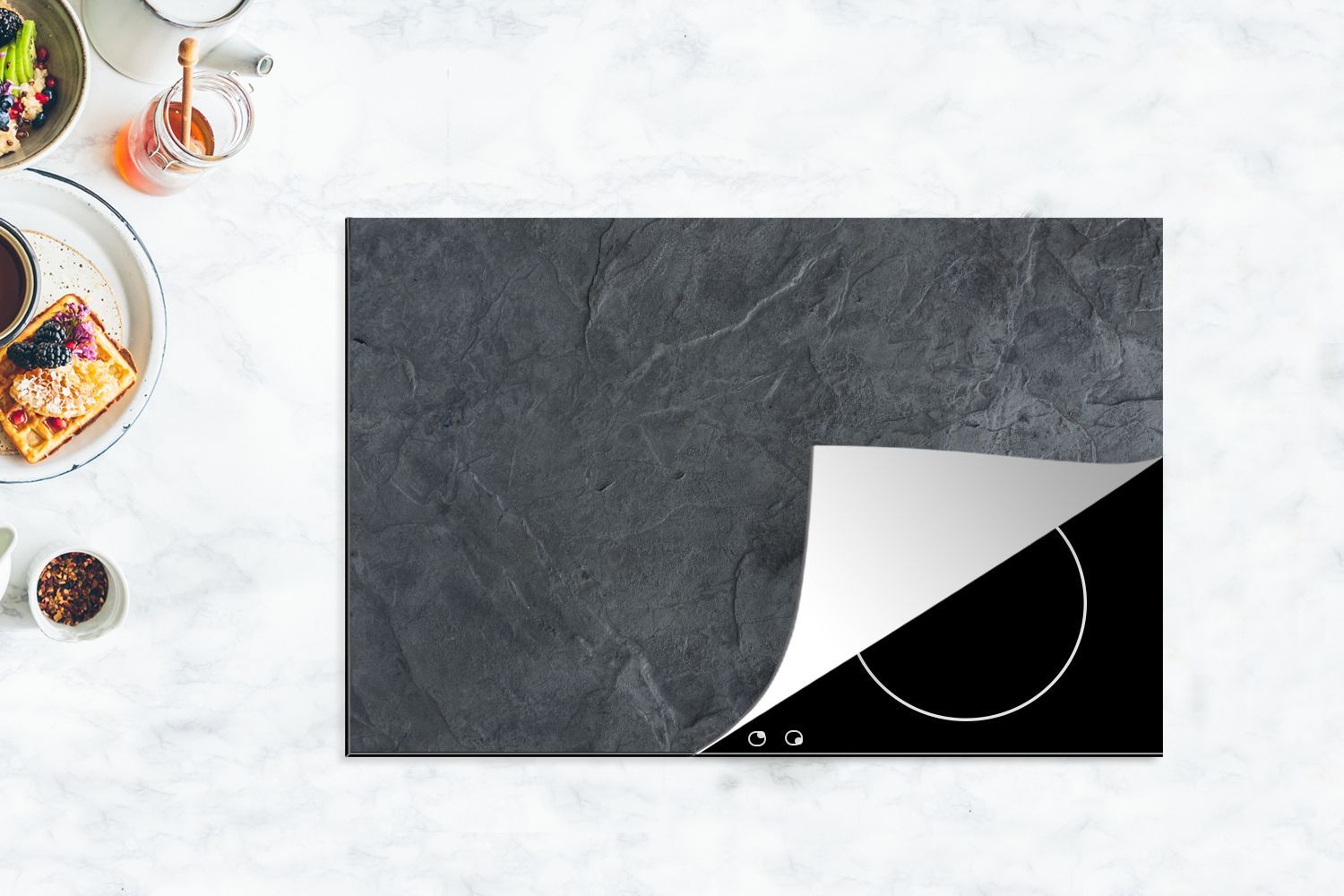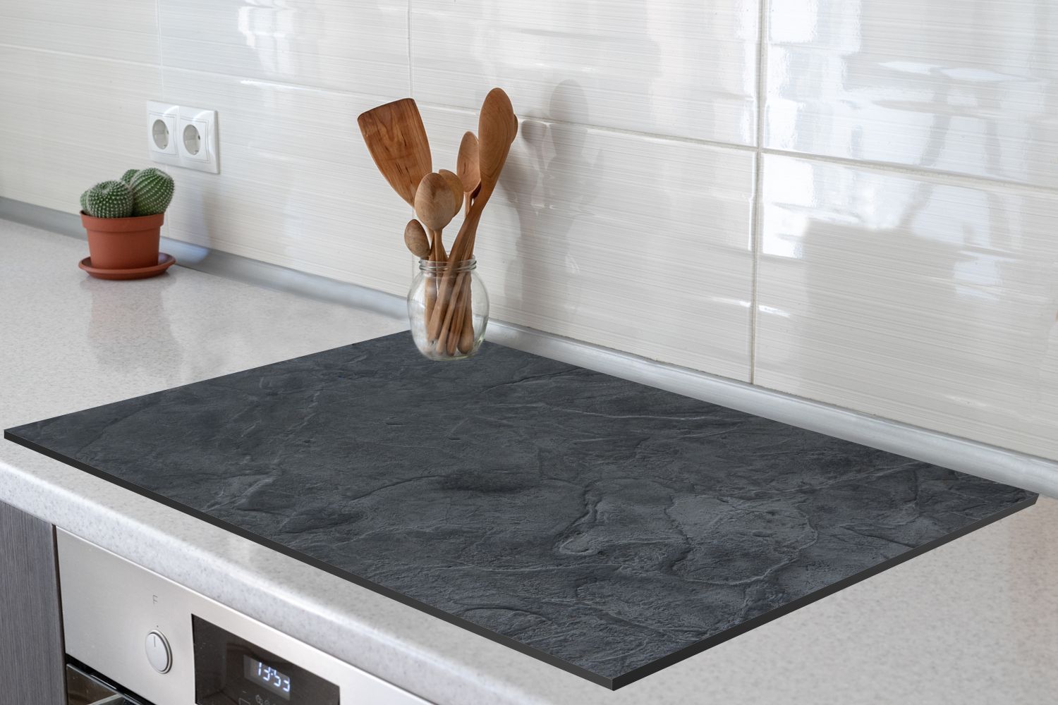 Herdabdeckplatte 80x52 cm Grau - Beton - Schiefer - Textur