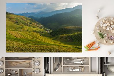 • Herdabdeckplatte - 80x52 cm - Reisfelder in Indonesien