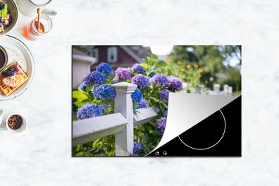 • Herdabdeckplatte - 80x52 cm - Lattenzaun mit Hortensien