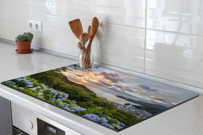• Herdabdeckplatte - 80x52 cm - Hortensienblüten im Sonnenuntergang