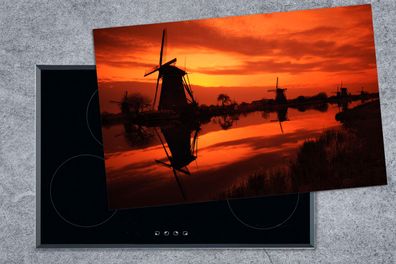 • Herdabdeckplatte - 80x52 cm - Windmühlen bei Sonnenuntergang