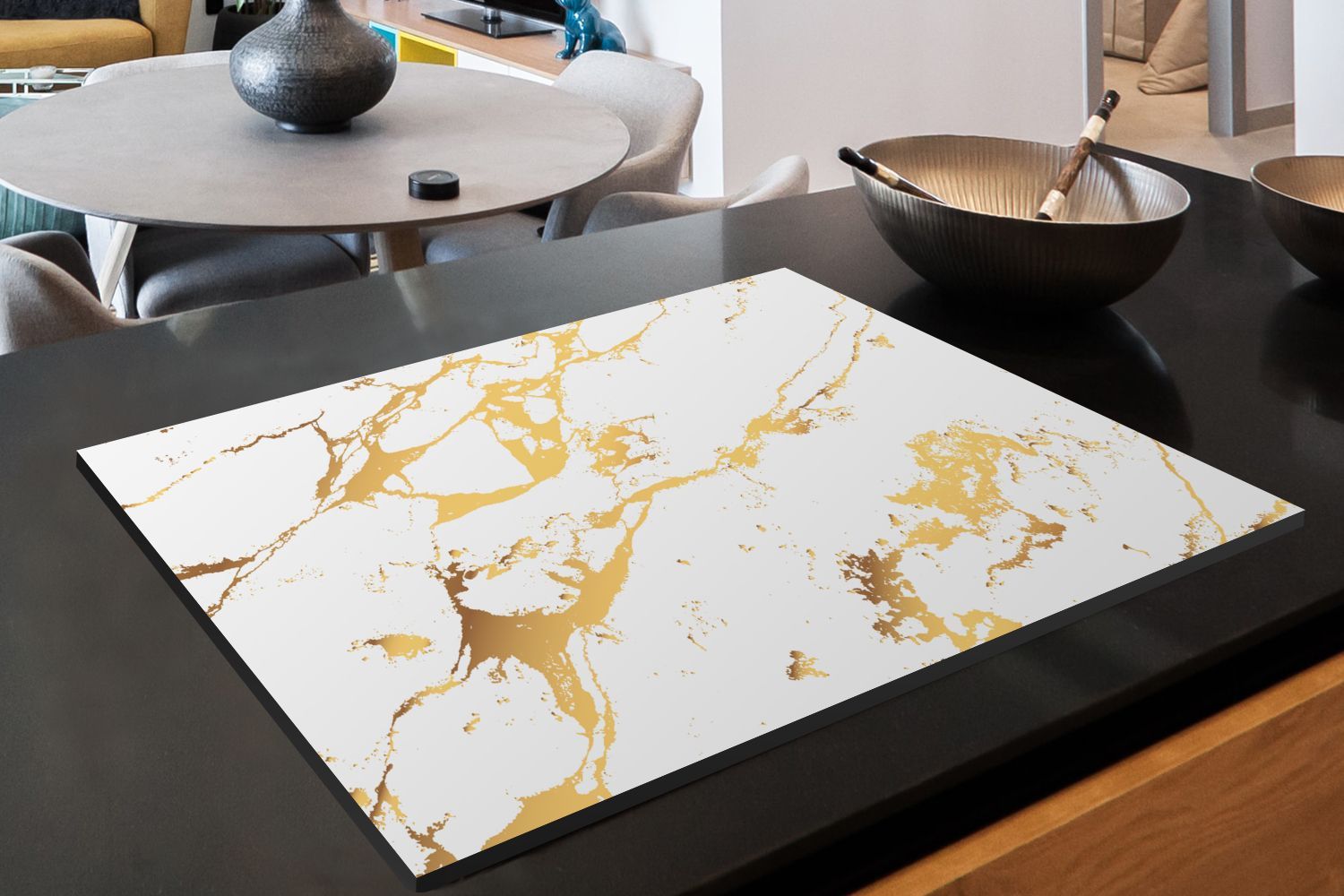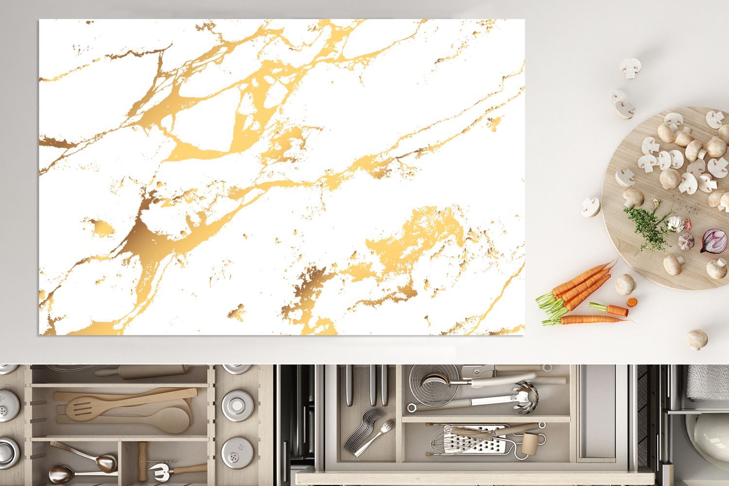 Herdabdeckplatte - 80x52 cm - Marmor - Weiß - Gold - Luxus