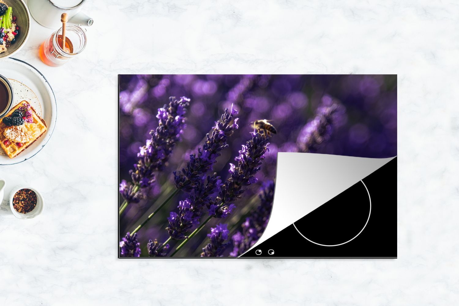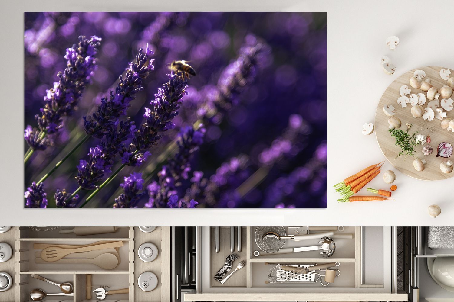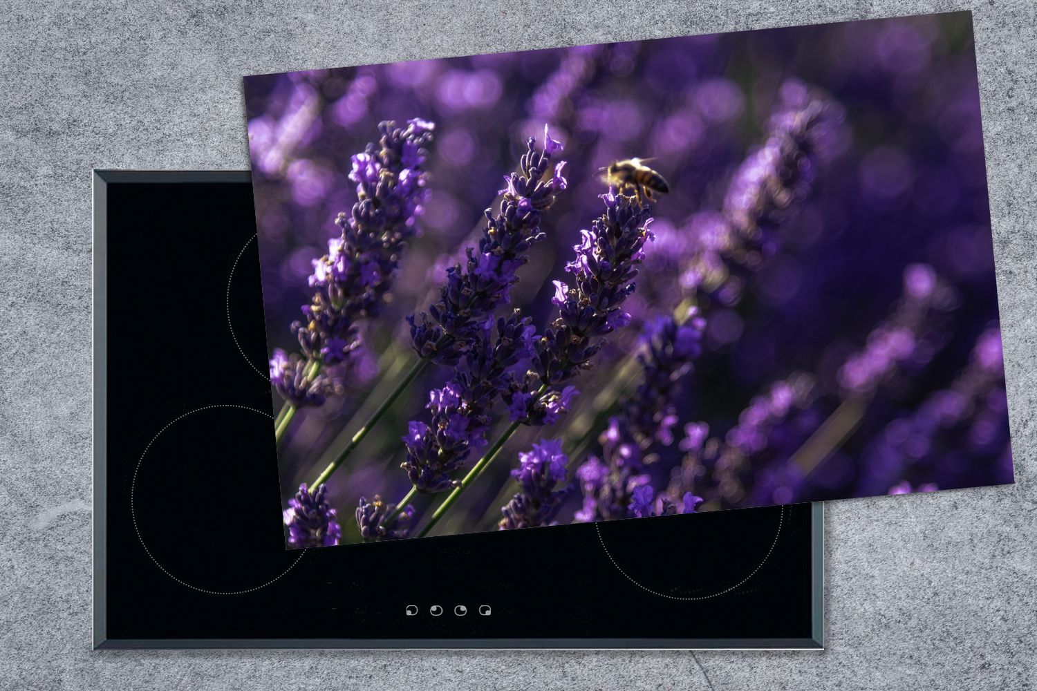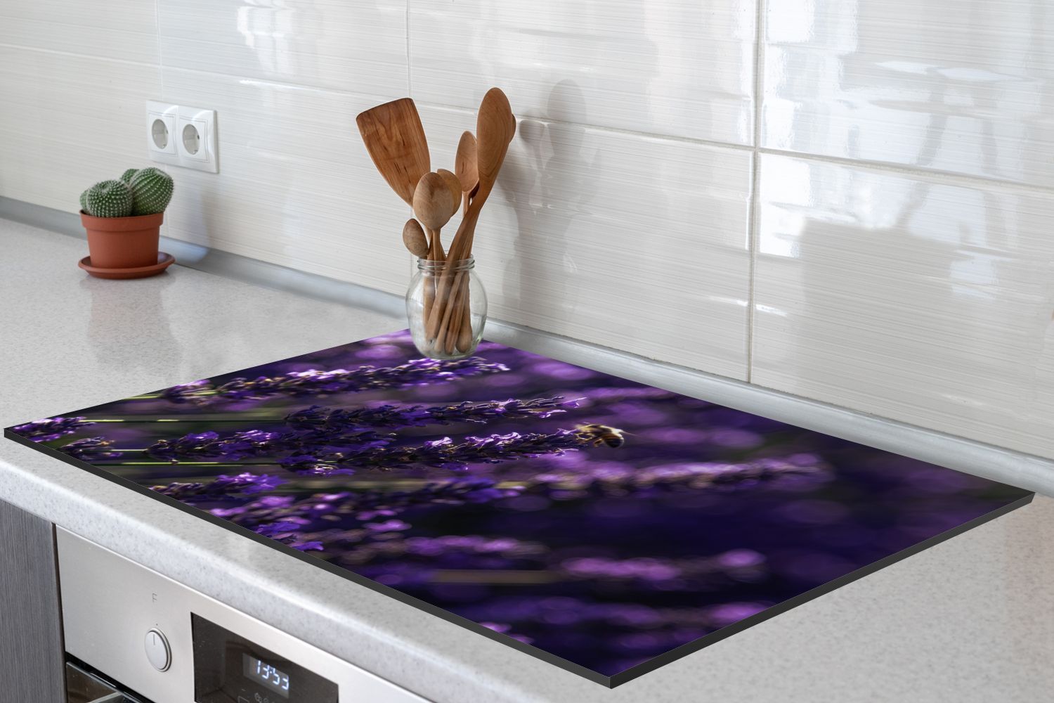Herdabdeckplatte - 80x52 cm - Nahaufnahme von Lavendel mit Biene