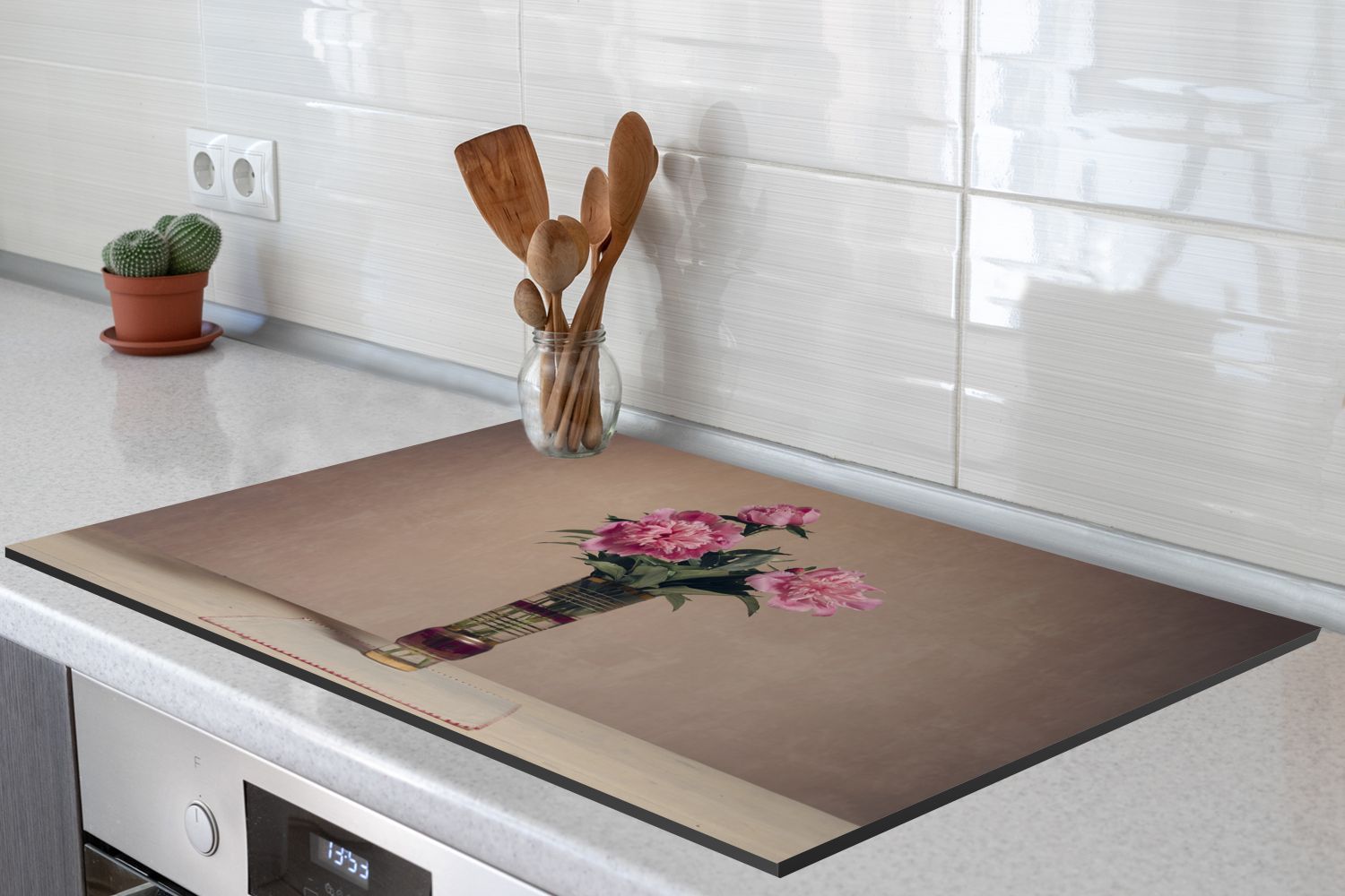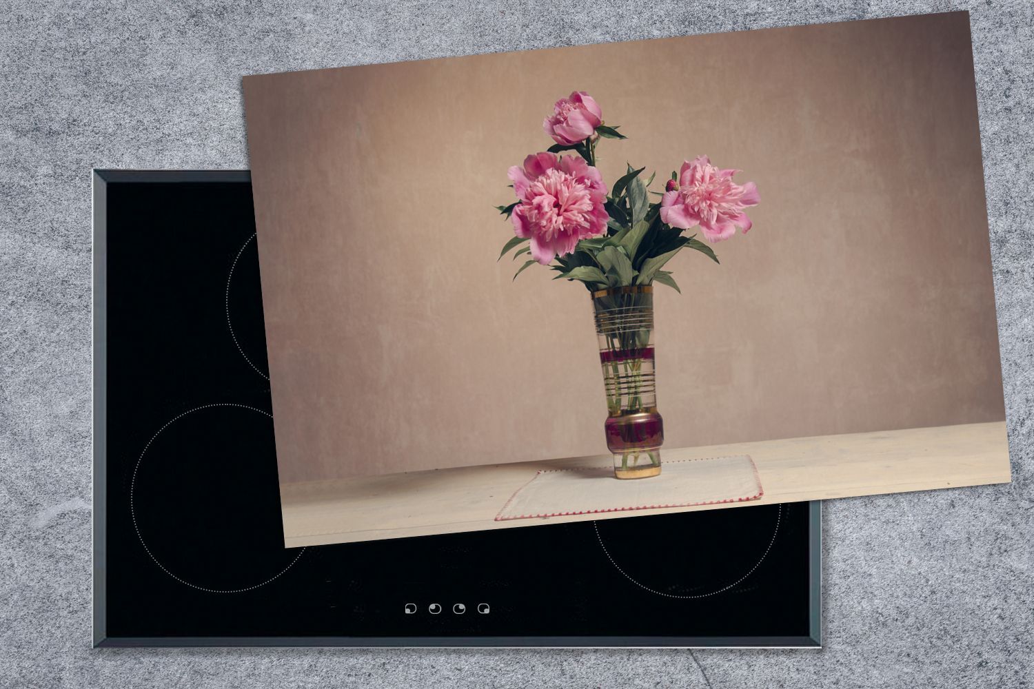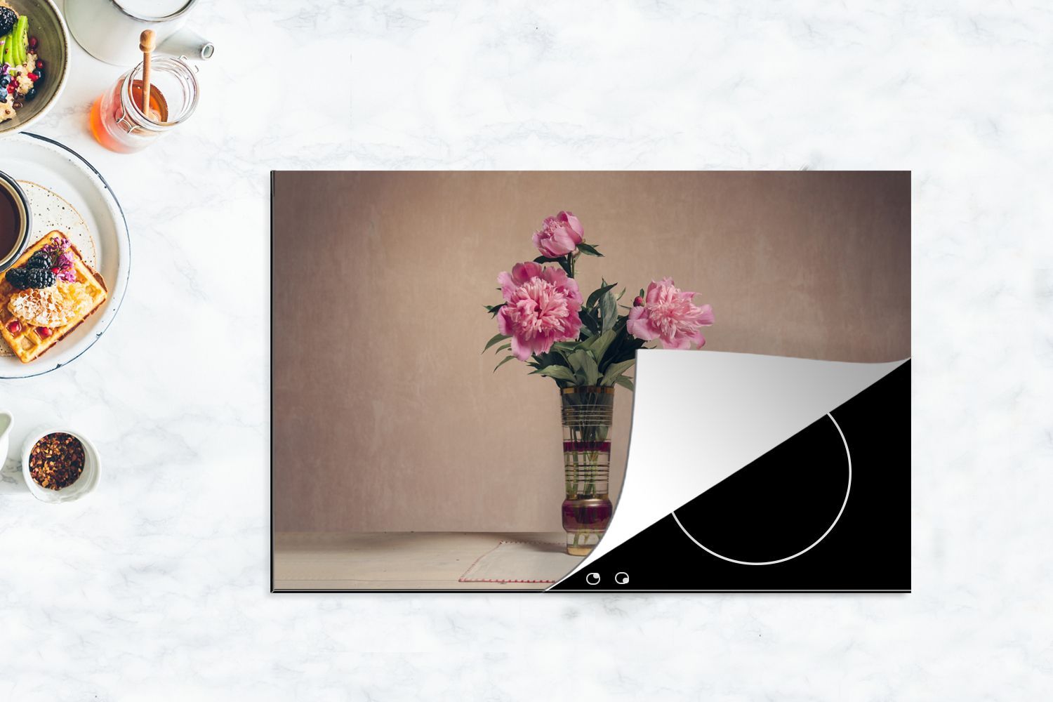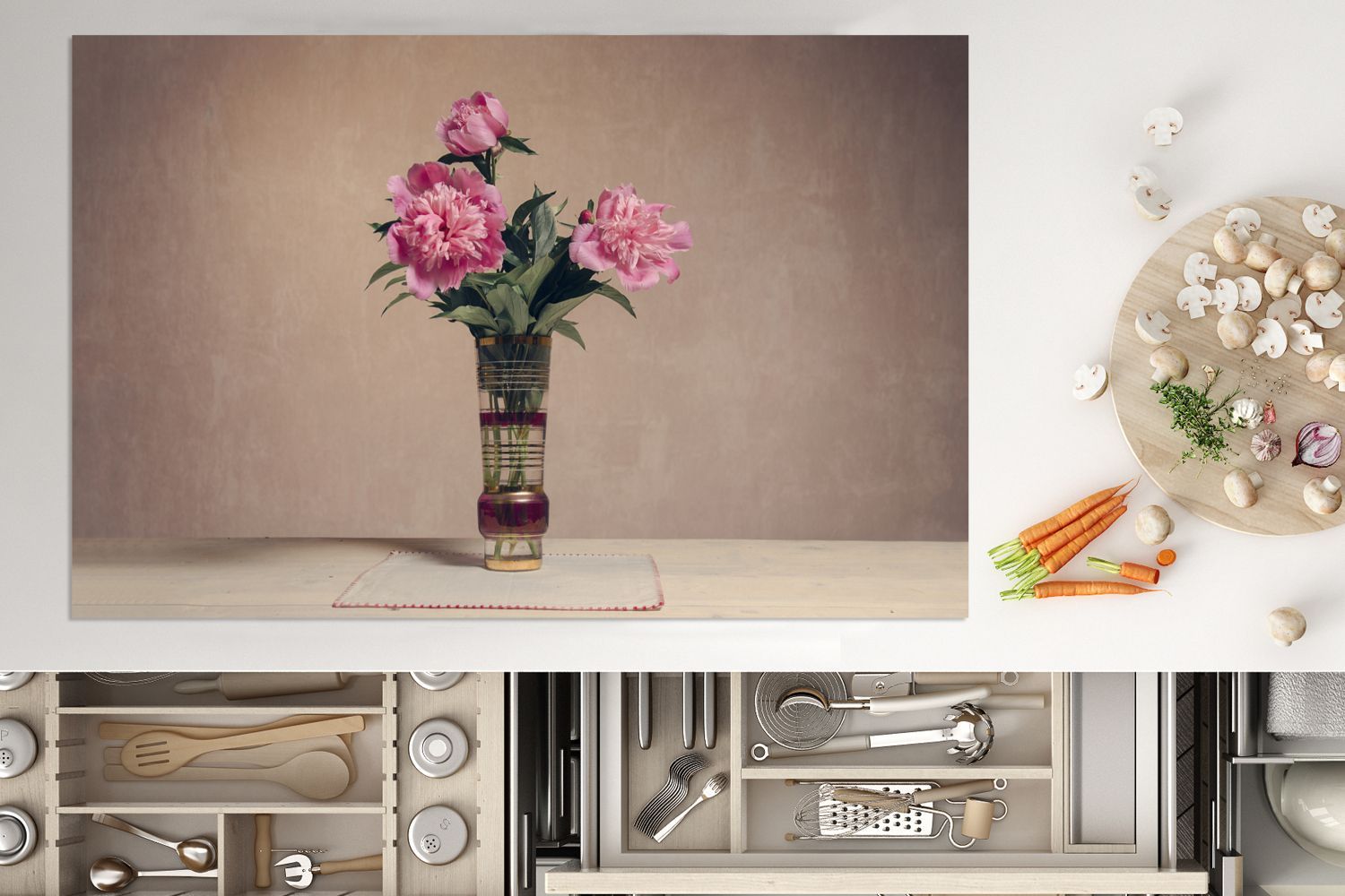 Herdabdeckplatte - 80x52 cm - Retro - Pfingstrosen - Stilleben