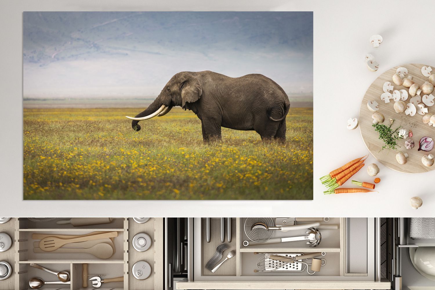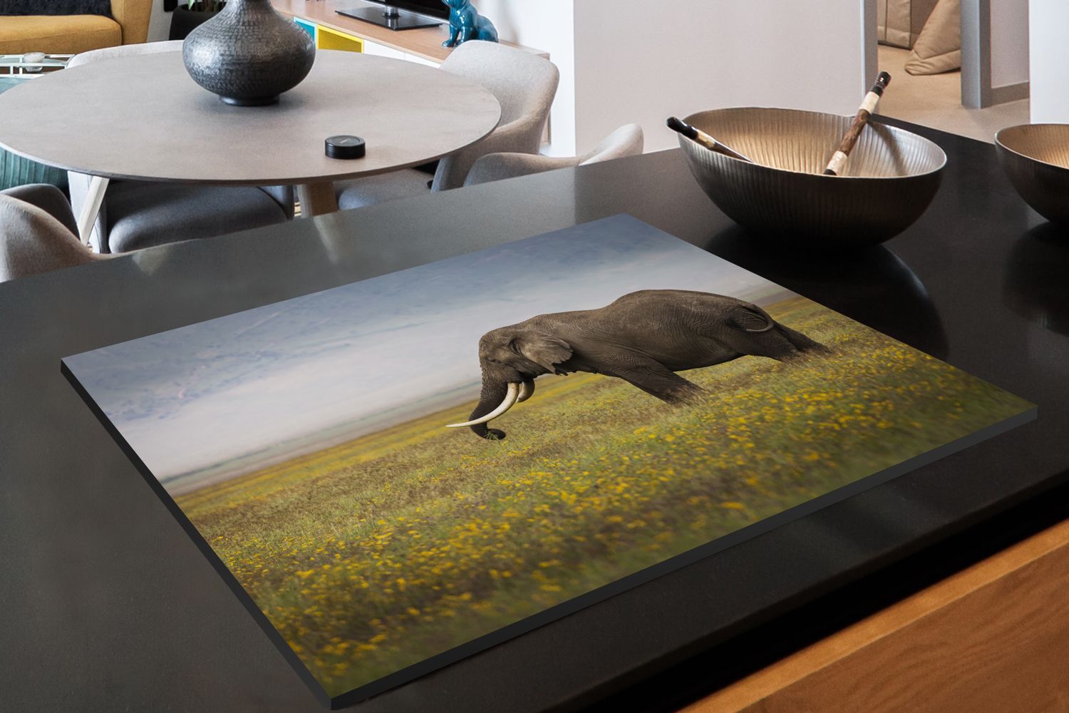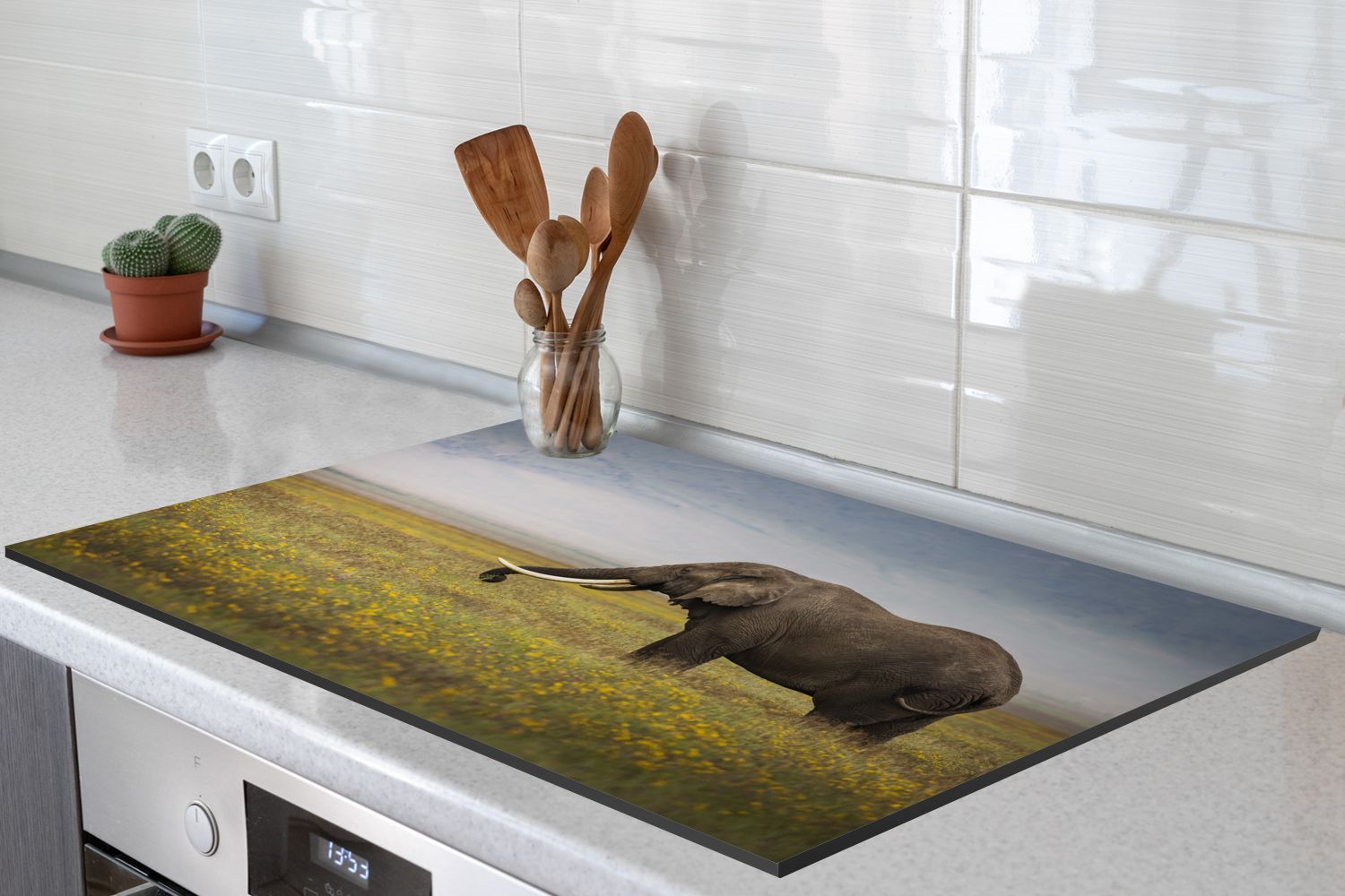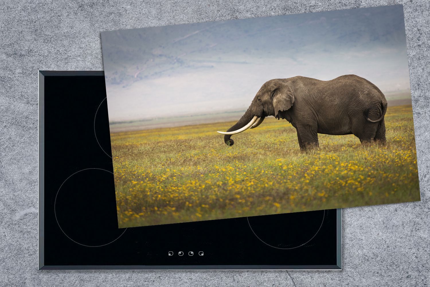 Herdabdeckplatte - 80x52 cm - Weidender Elefant in der Natur Afrikas