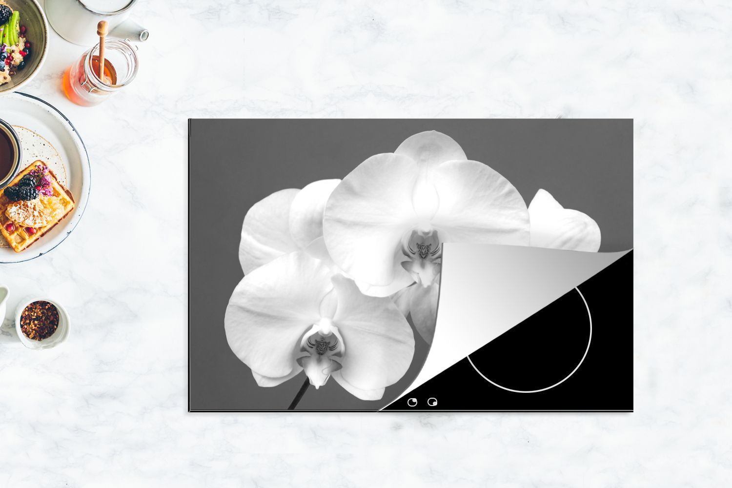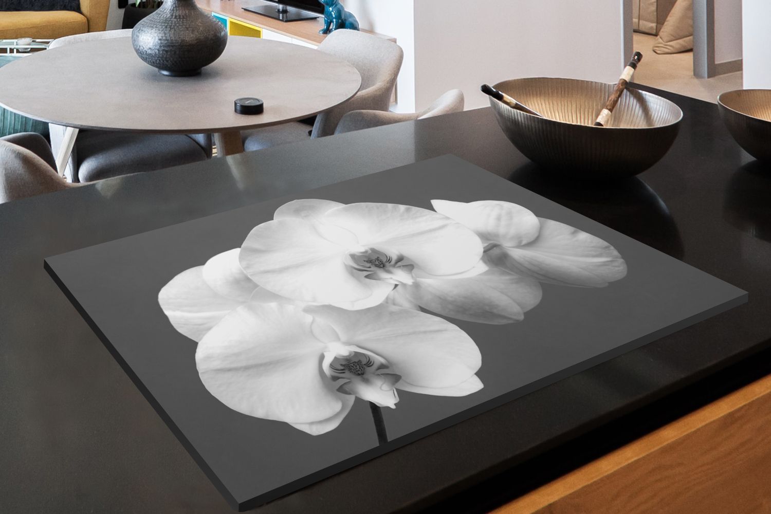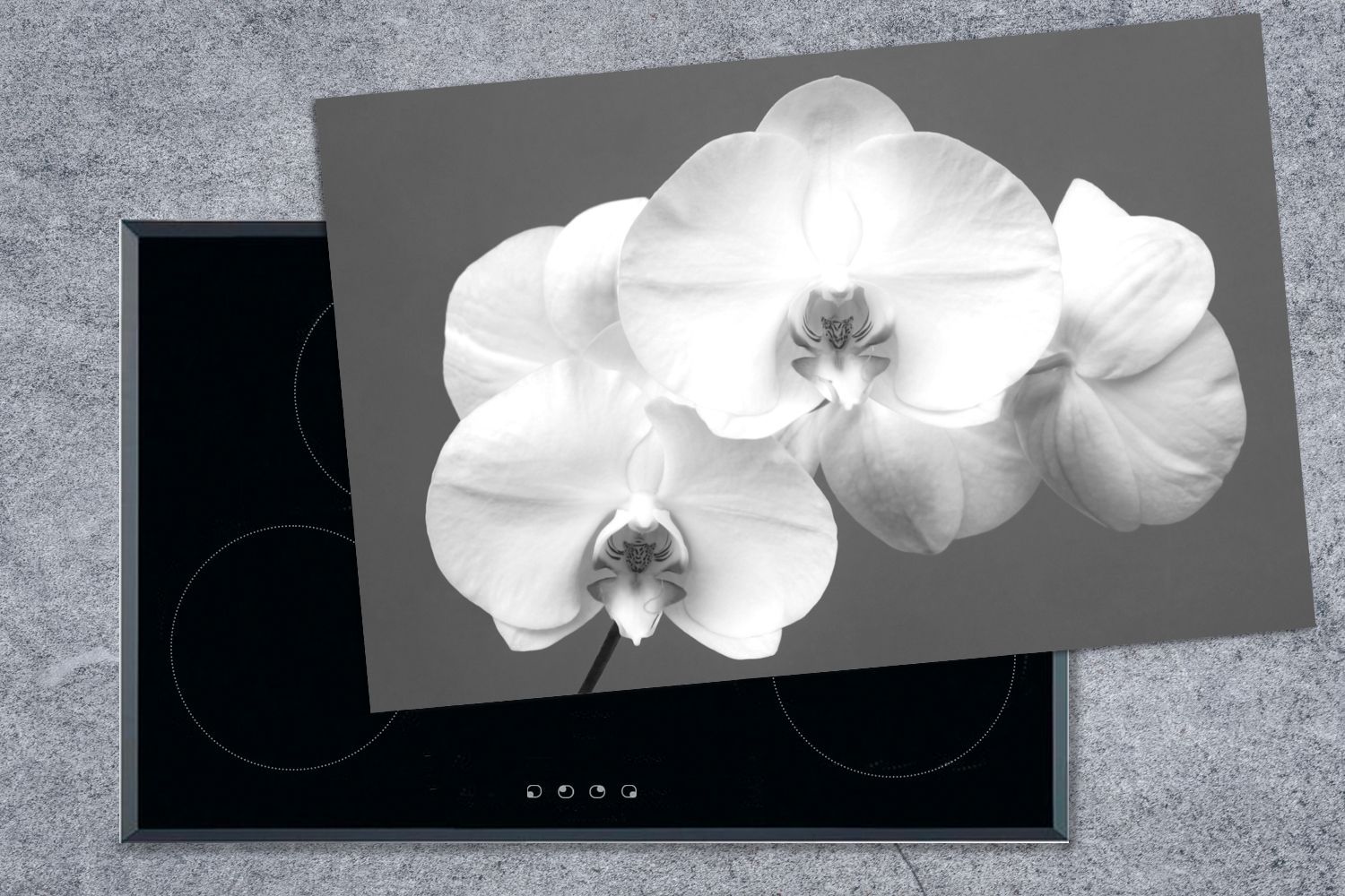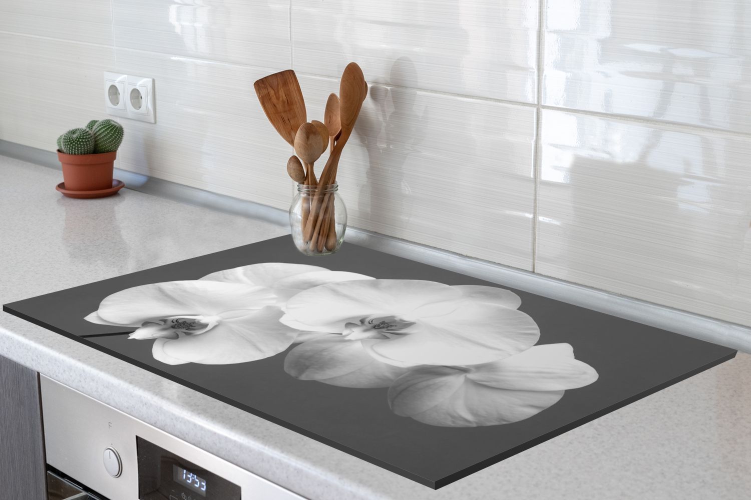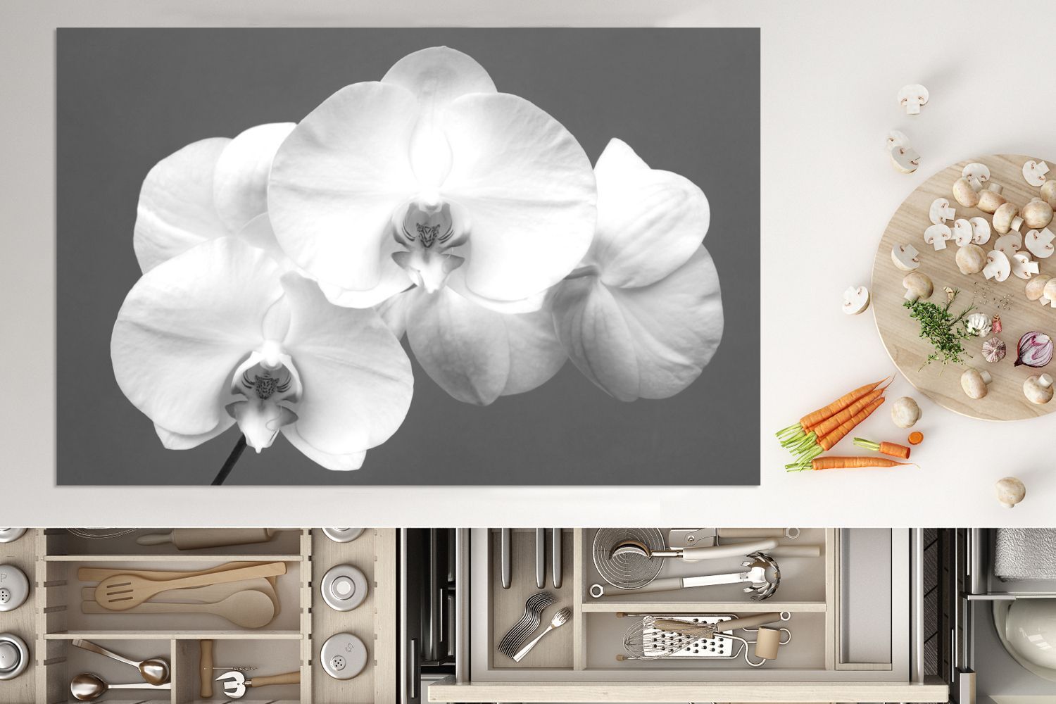 Herdabdeckplatte - 80x52 cm - Weiße Orchidee - schwarz und weiß