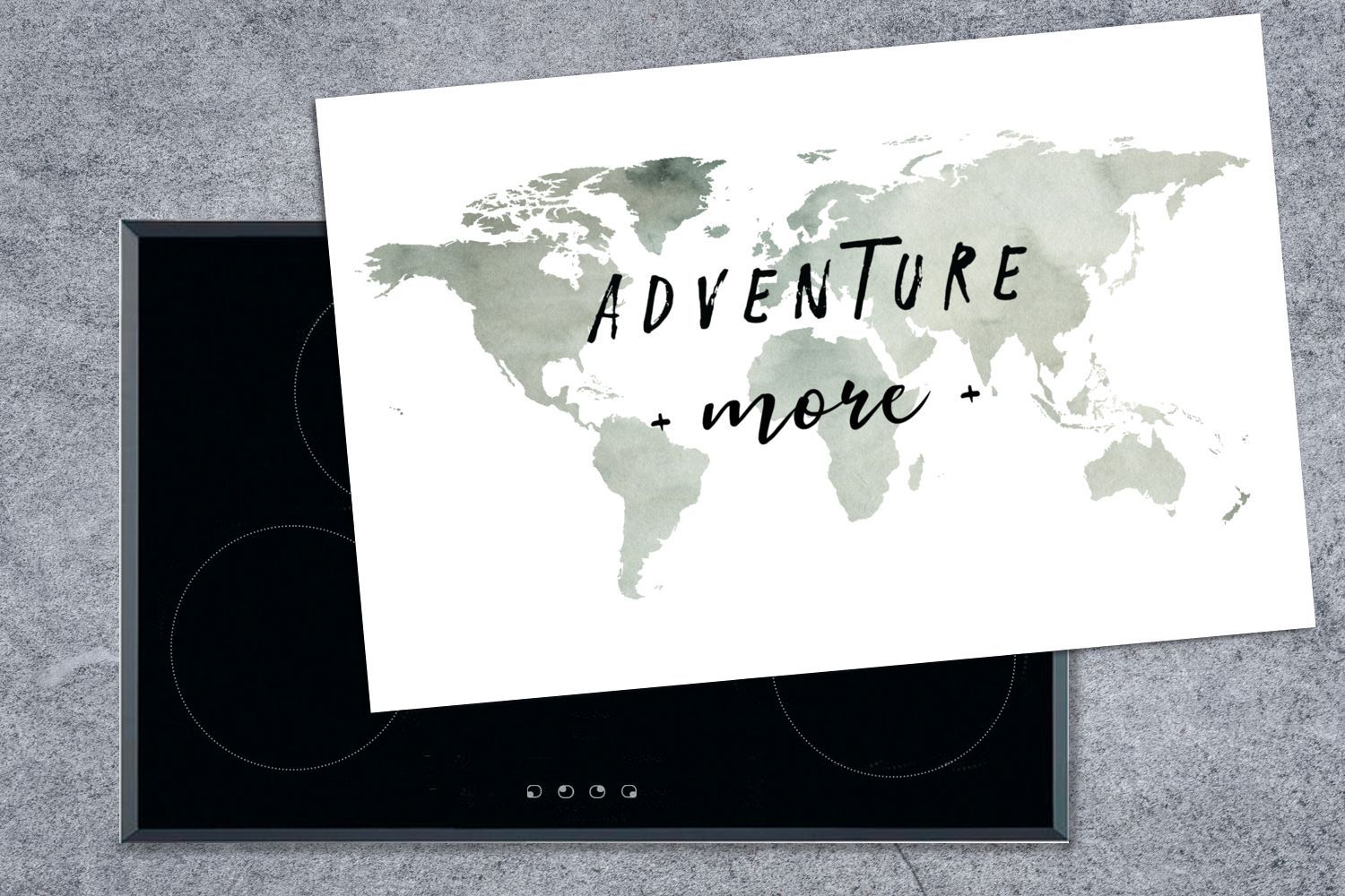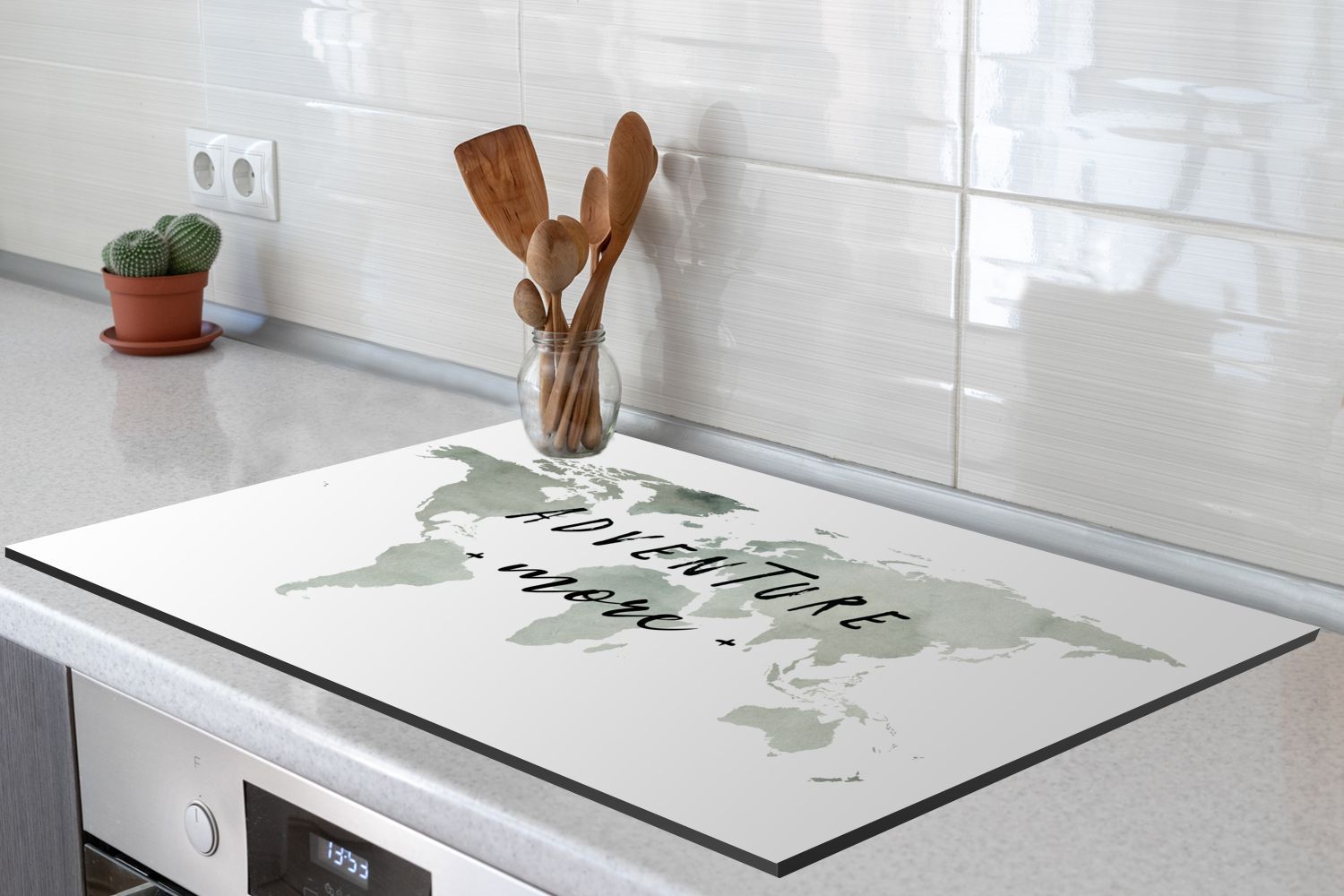 Herdabdeckplatte - 80x52 cm - Weltkarte - Abenteuer mehr - Aquarell