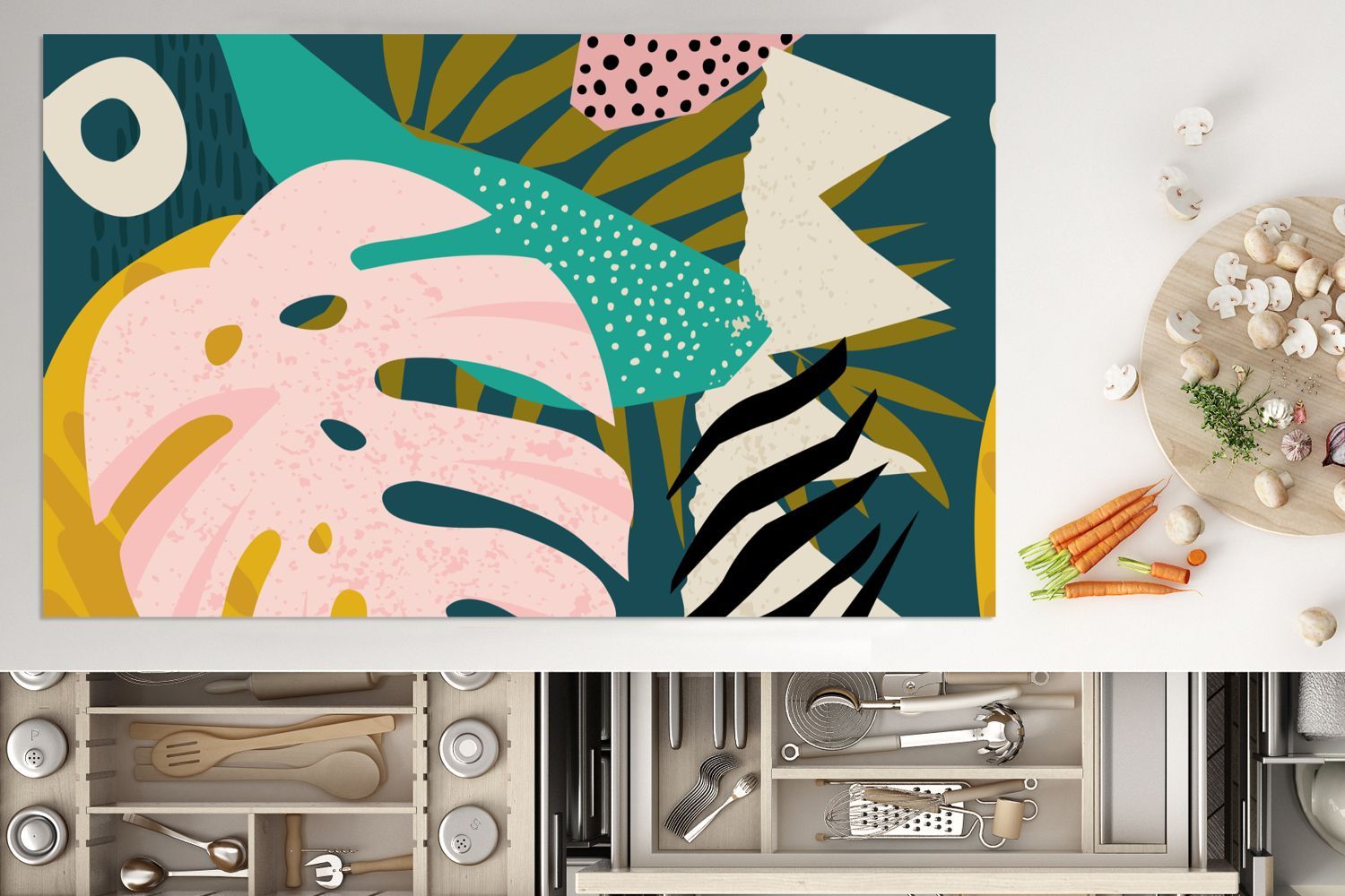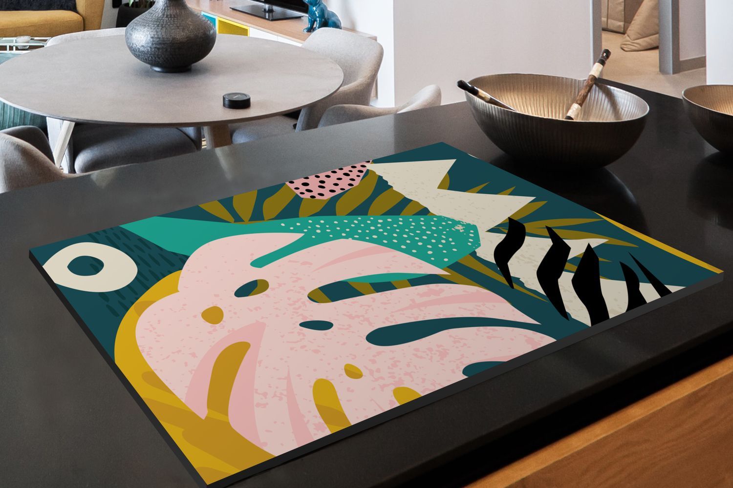 Herdabdeckplatte - 85x52 cm - Blätter - Farben - Muster
